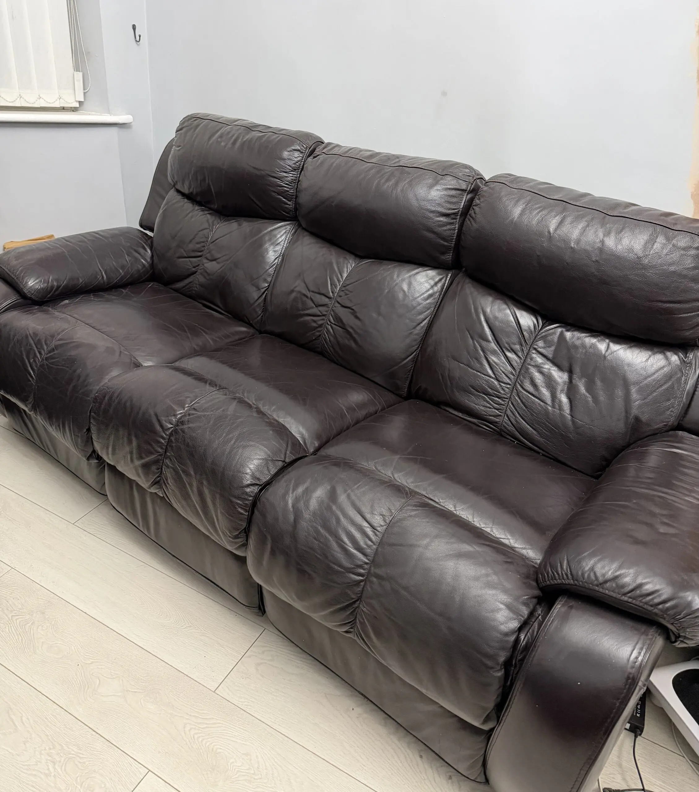 Dark brown leather sofa for sale, very sturdy and comfortable.