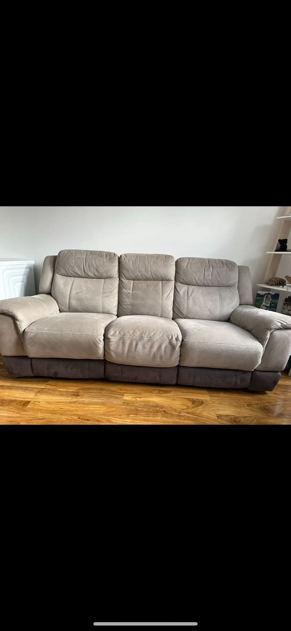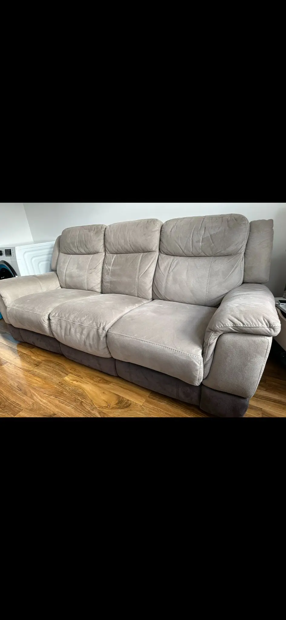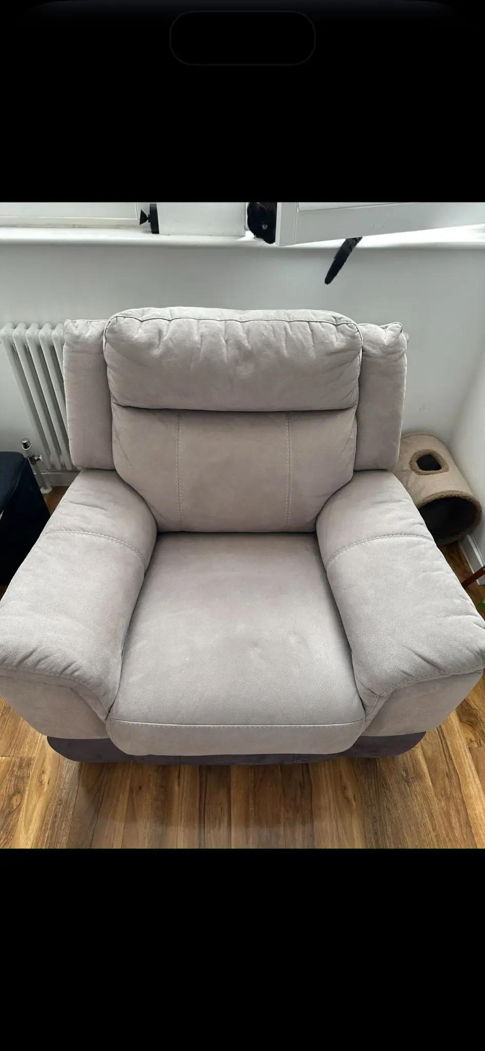 DFS Ryder sofa set – Includes 3-seater sofa plus matching power recliner chair (note: cable currently broken).