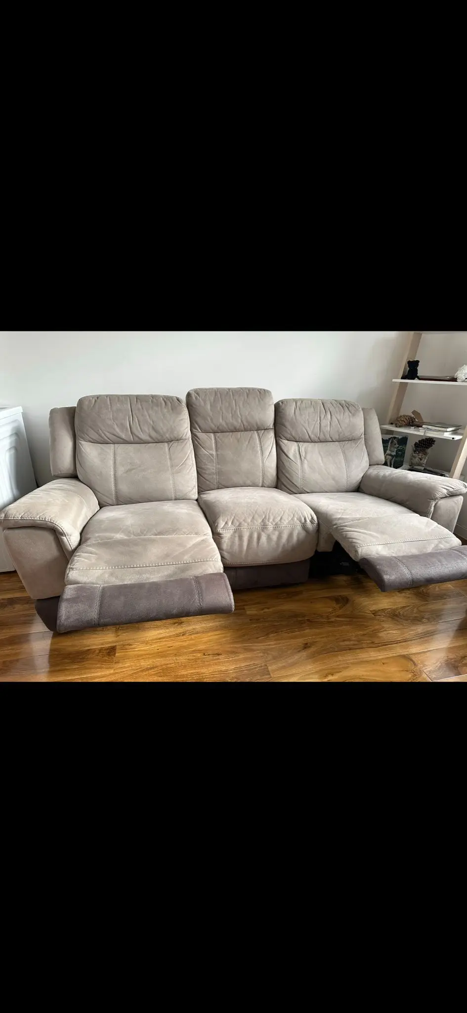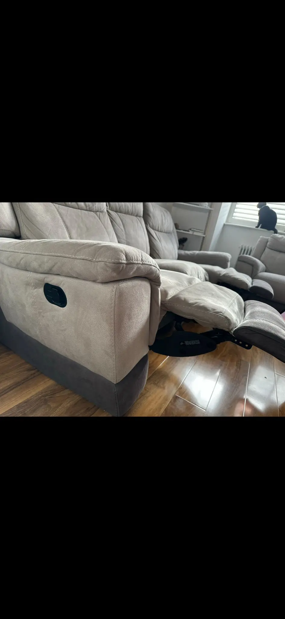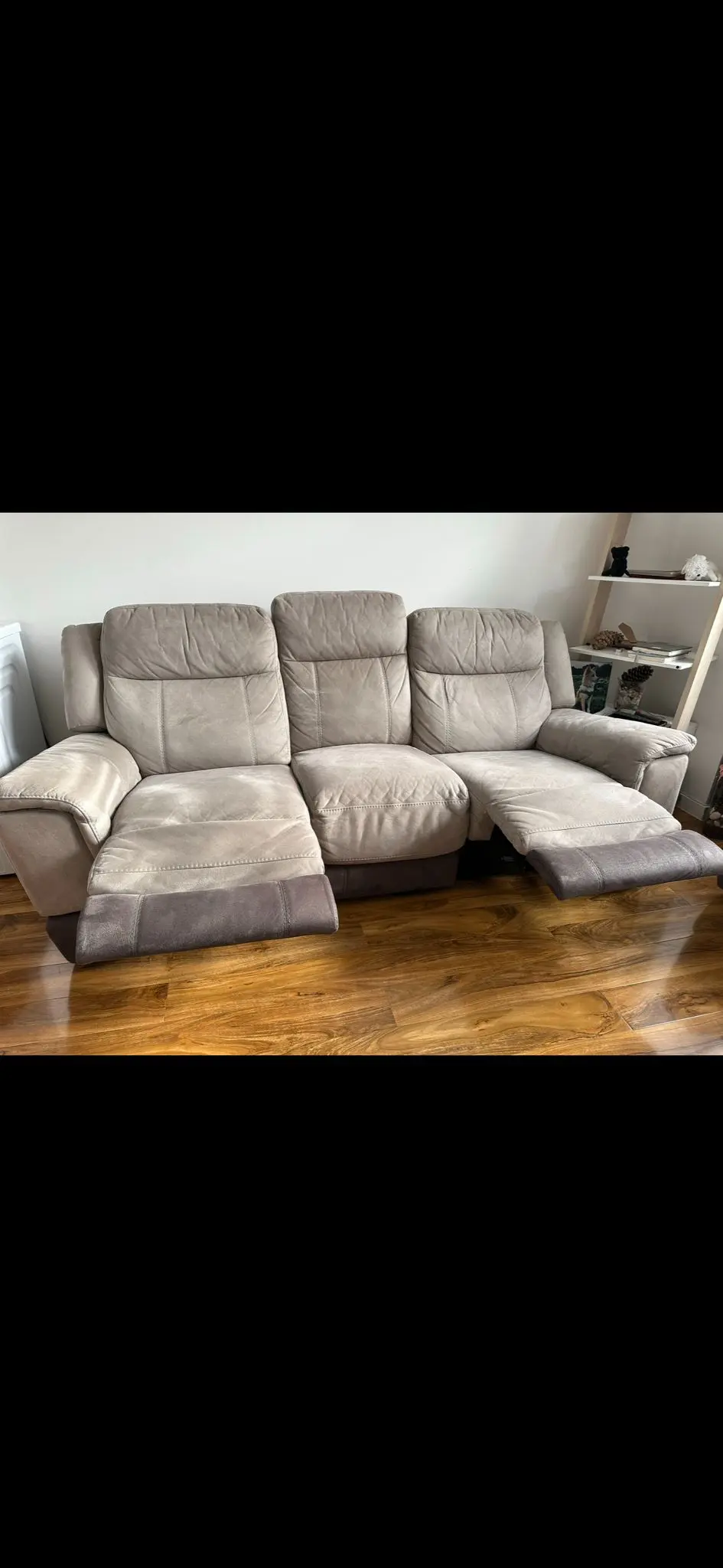 DFS Ryder sofa set – Includes 3-seater sofa plus matching power recliner chair (note: cable currently broken).