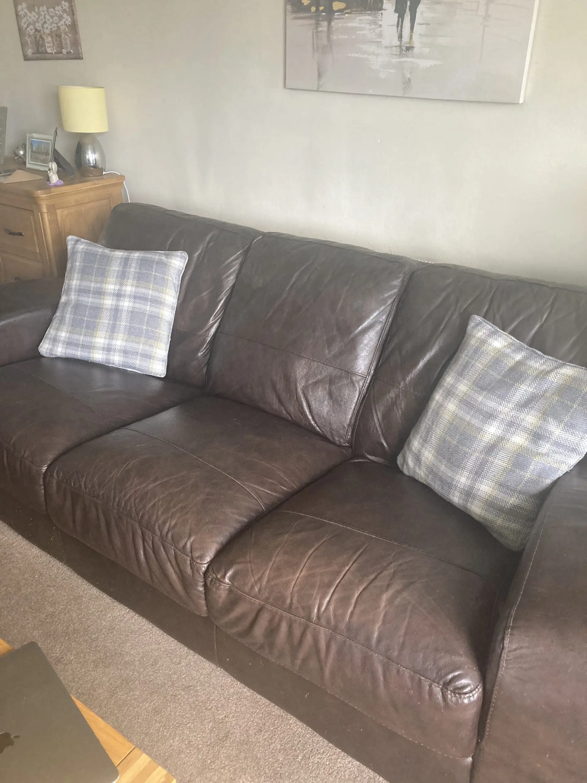 Lovely three seater plus two seater soft leather sofas in chocolate brown from DFS