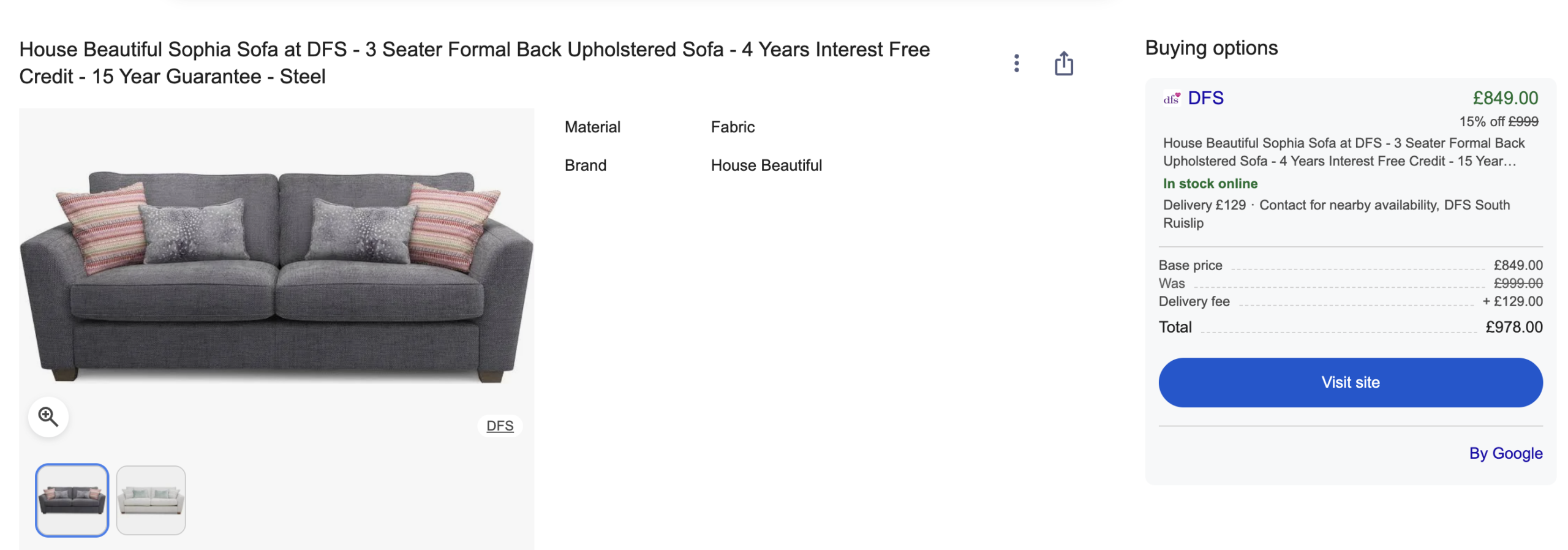 You can find all the details on DFS website as well. Currently they are selling for £849 each + £129 shipping. Grab yourself a bargain!!