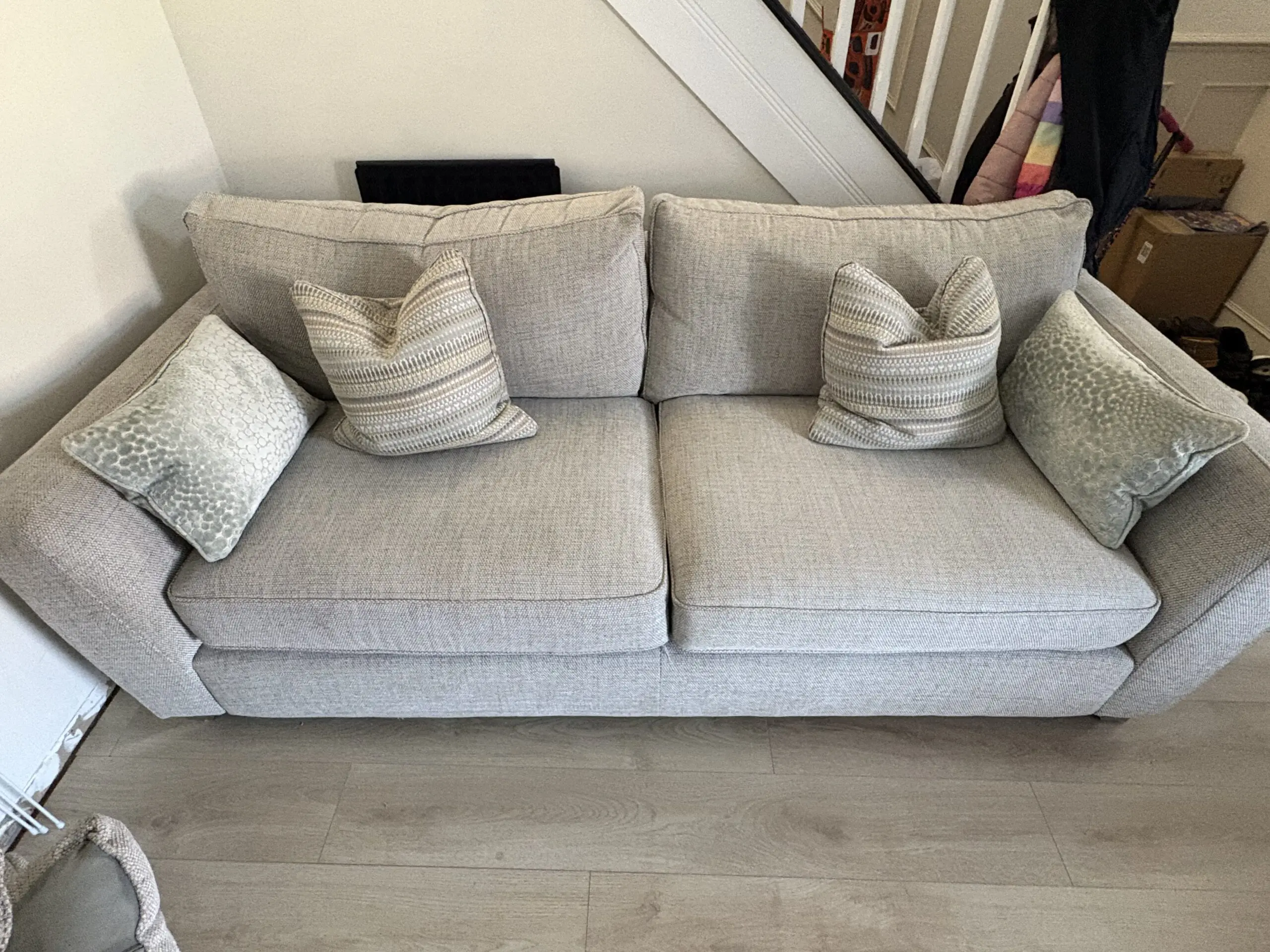 Still sold in DFS for £1000 only 2 years old good condition pet and smoke free home . The only stain is on the frame underneath the cushions so not visible at all. It’s not even a stain it’s a watermark from delivery