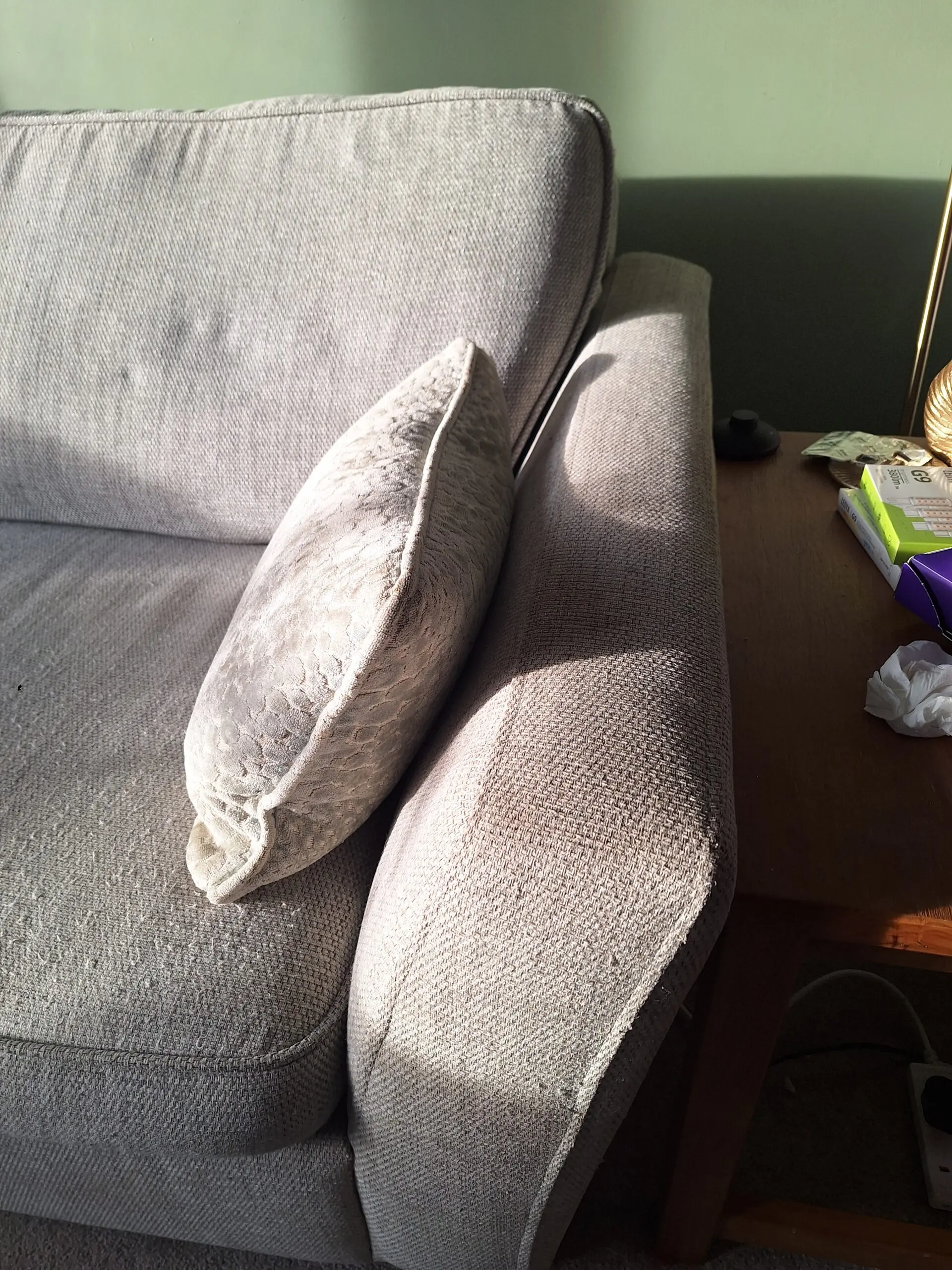 3 seater Sophia sofa in Pearl combination. In good condition however some minor fraying on the left hand arm and base of sofa however you can buy replacement arms for £80 which is why price of sofa is reduced to account for this.