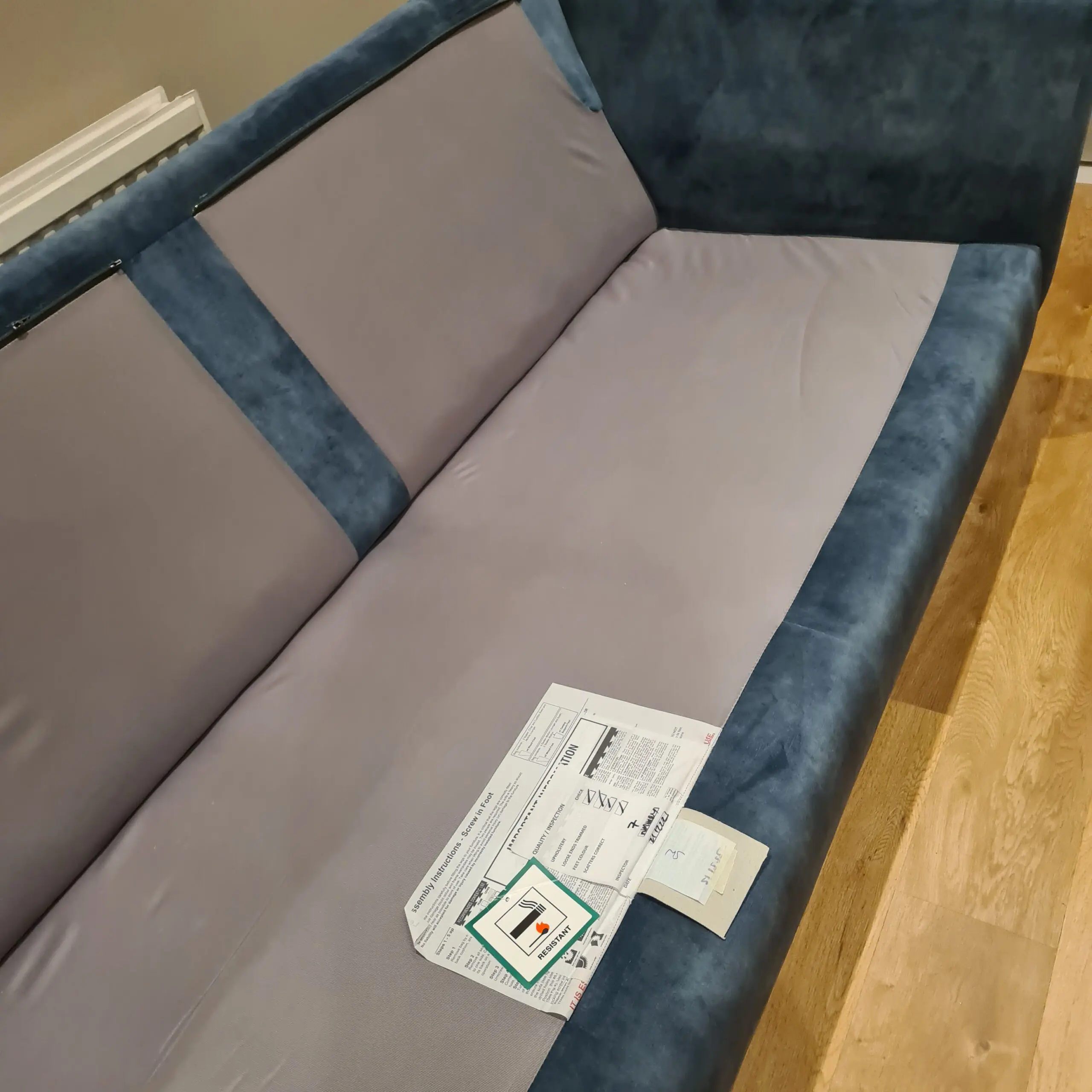 Very good condition, 3 years old this month. The colour is Ocean blue, material is velvet.
