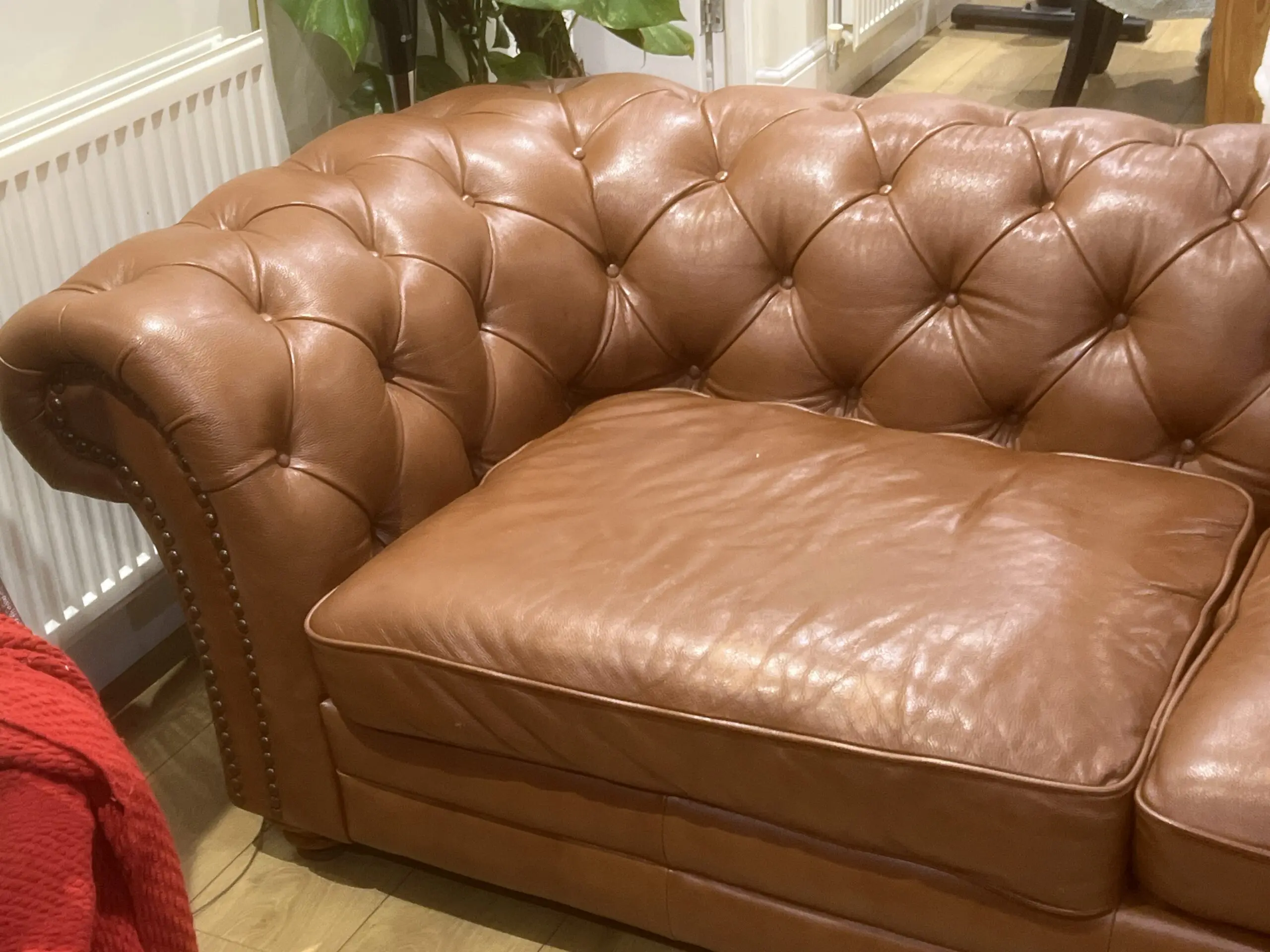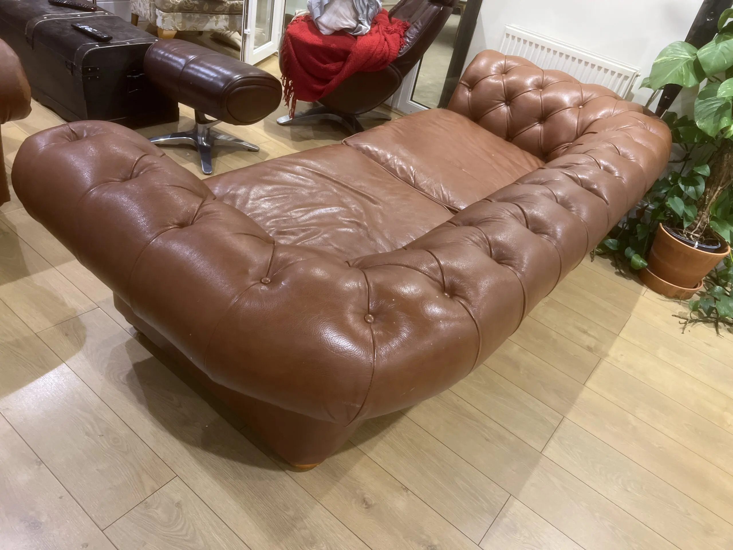 DFS Tan Leather 3 seater Chesterfield
