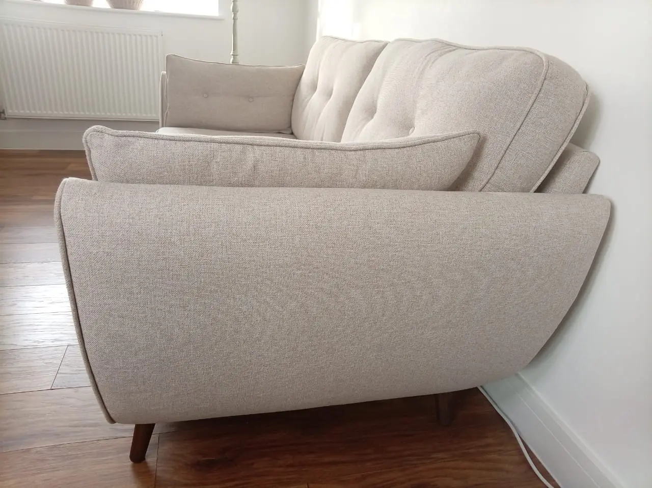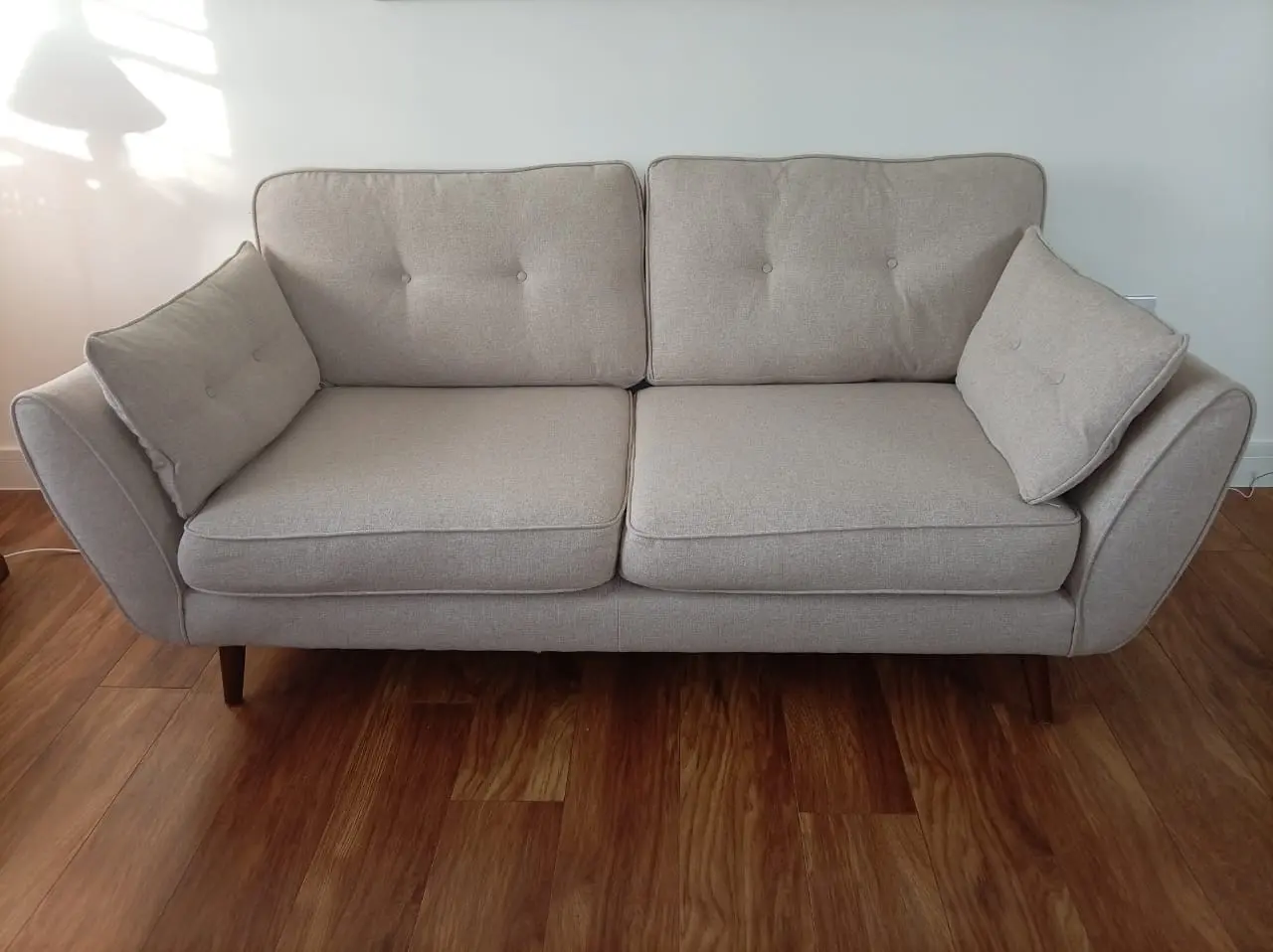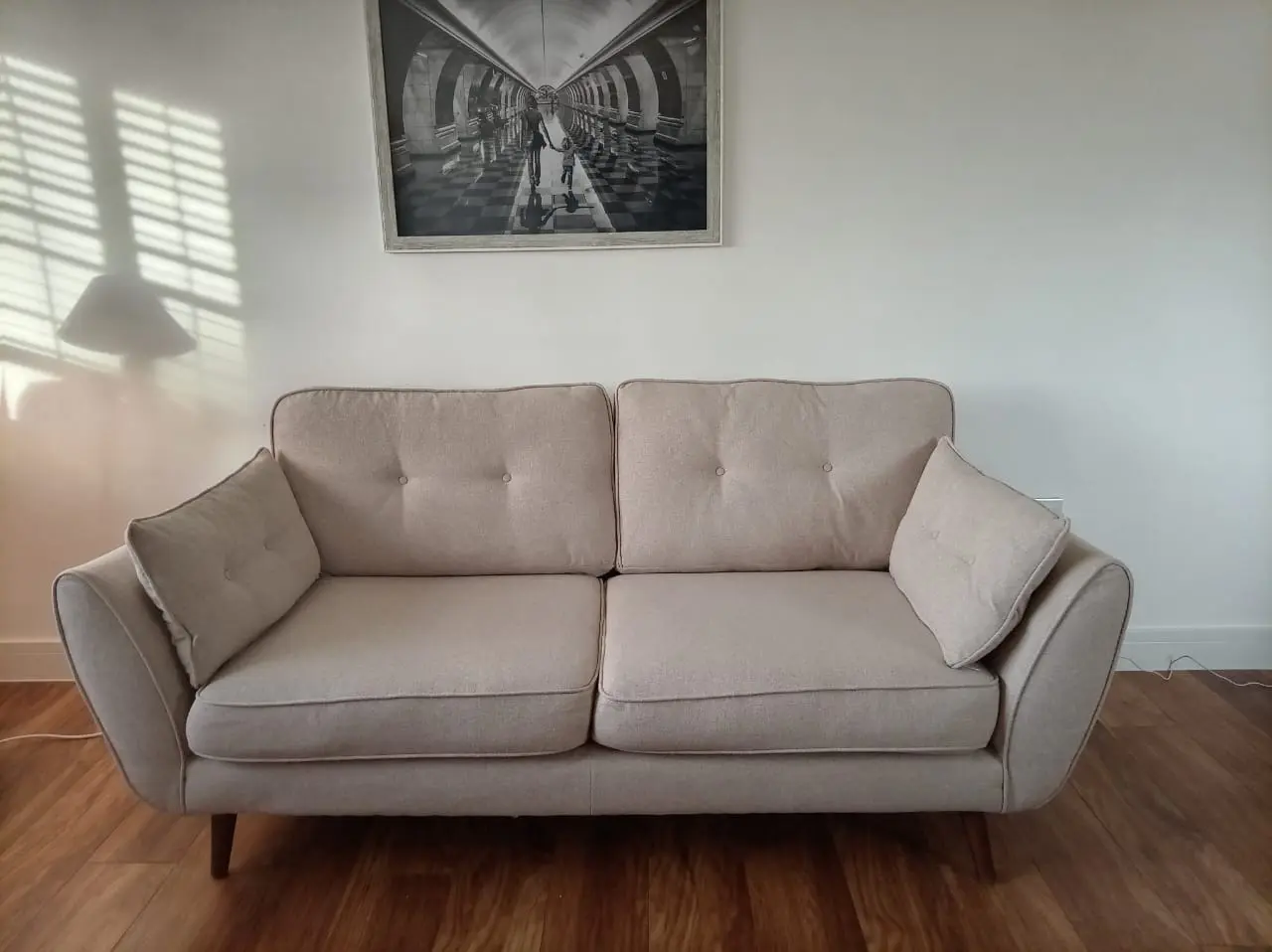 Sofa was bought in August 2023 . As stated it was bought from DFS Zinc 3 Seater Cream. It is in excellent condition and comes with two cushions .We have always had a cover over it to sit on