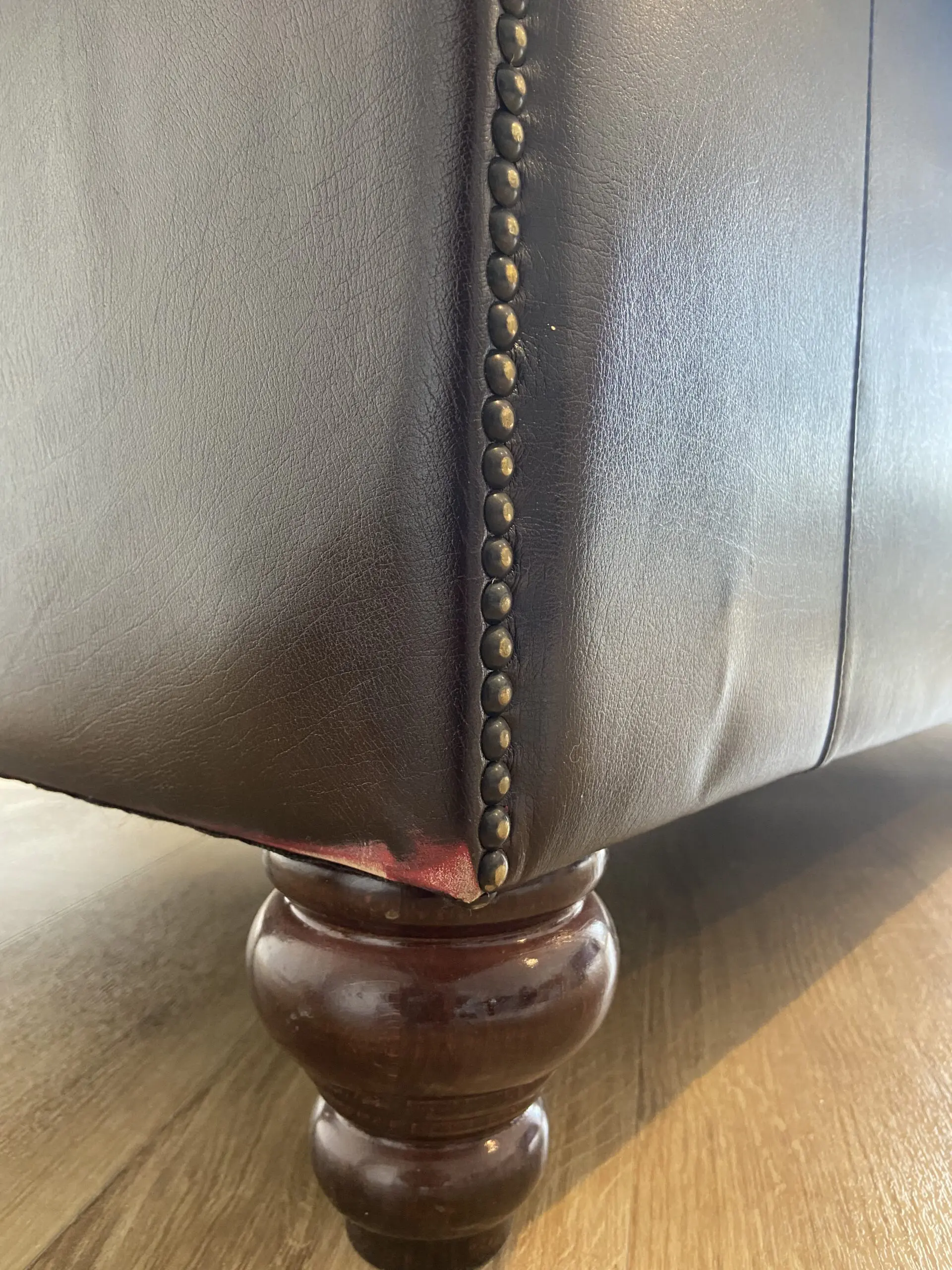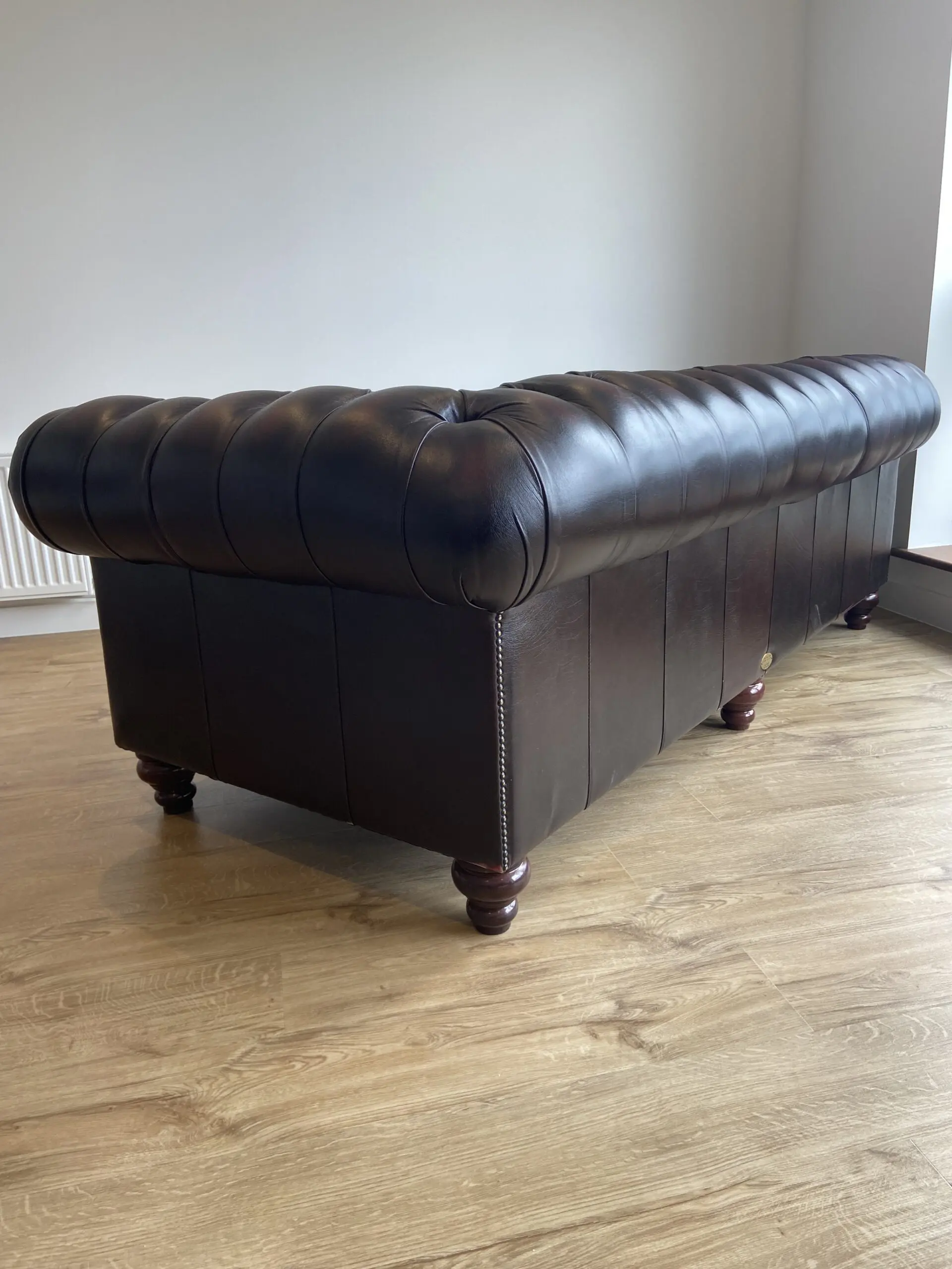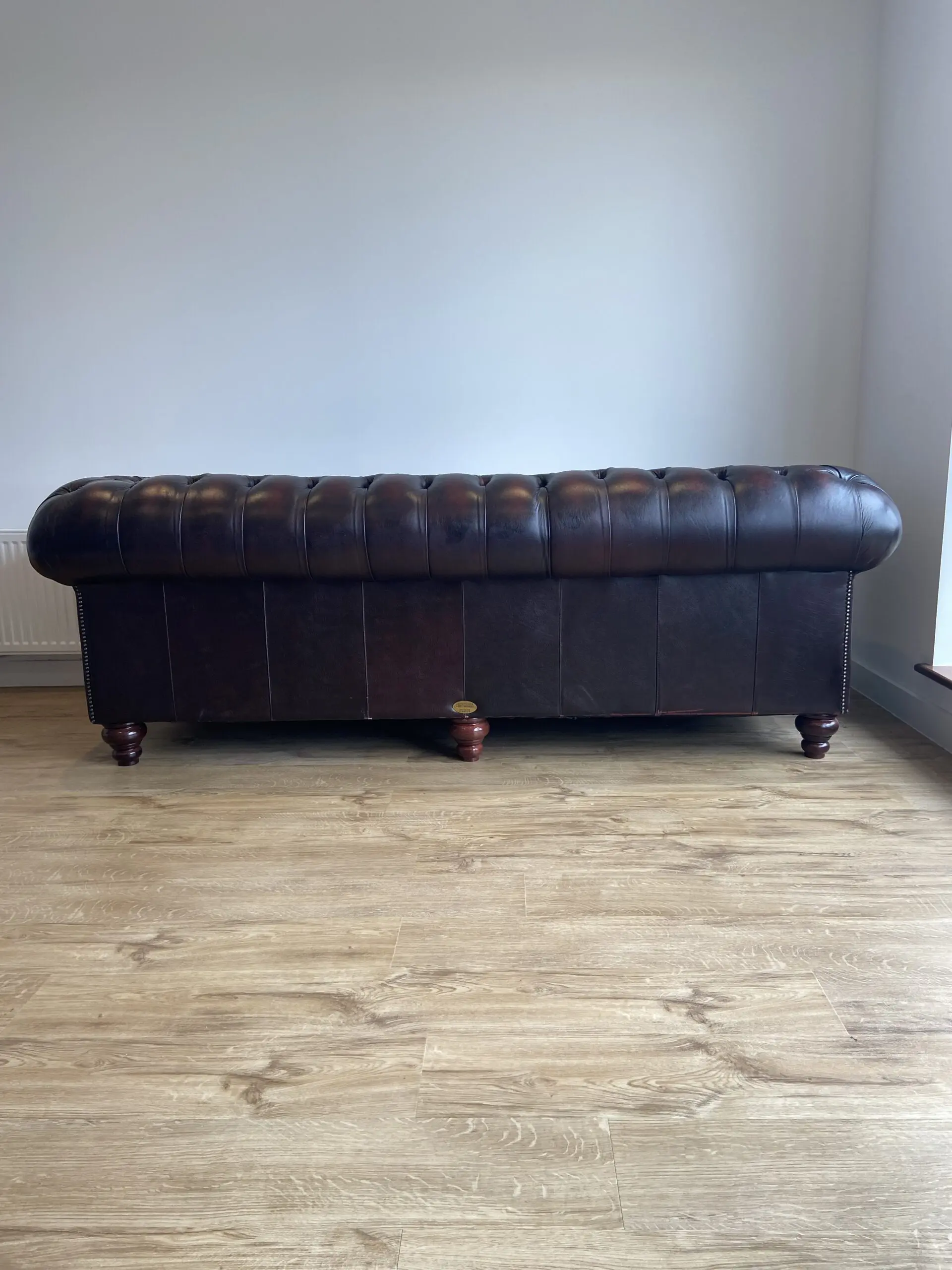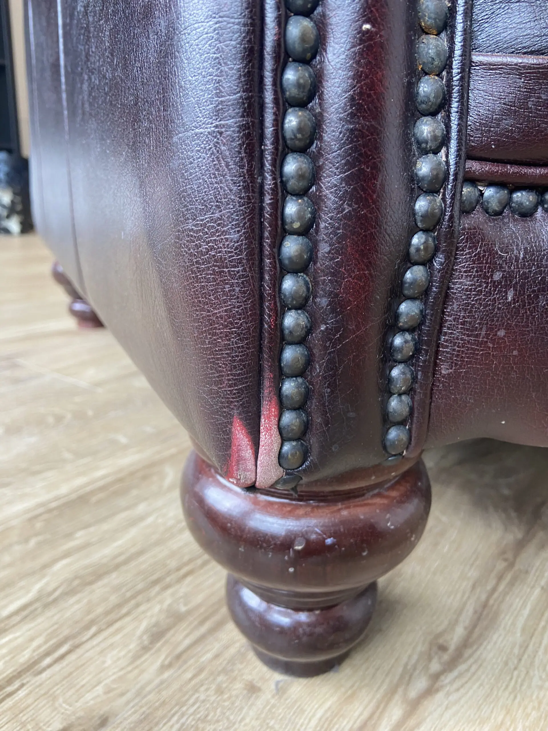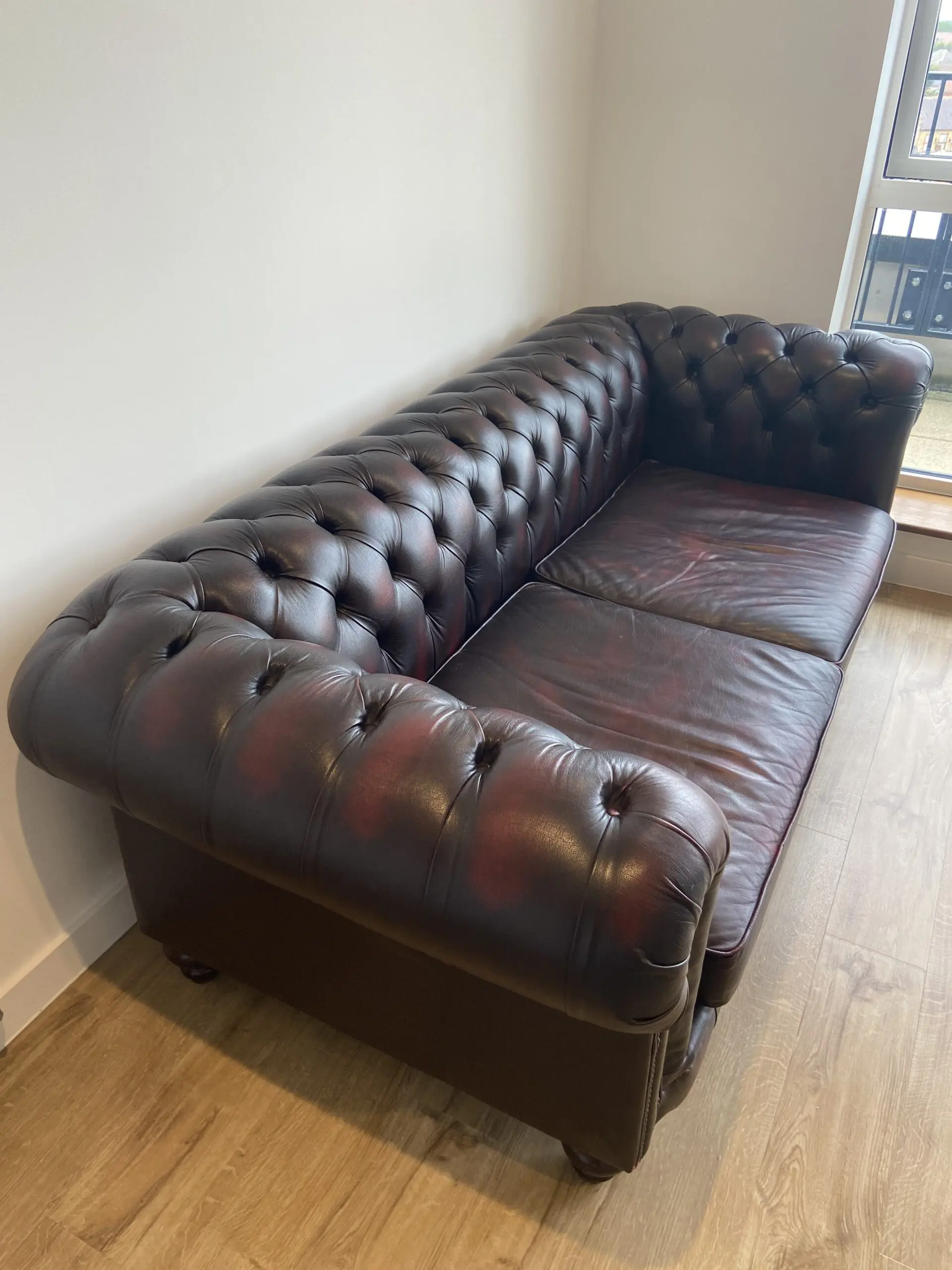 This Hampton handmade Chesterfield was bought from Distinctive Chesterfield. It’s a three seater, vintage leather ox blood in colour.