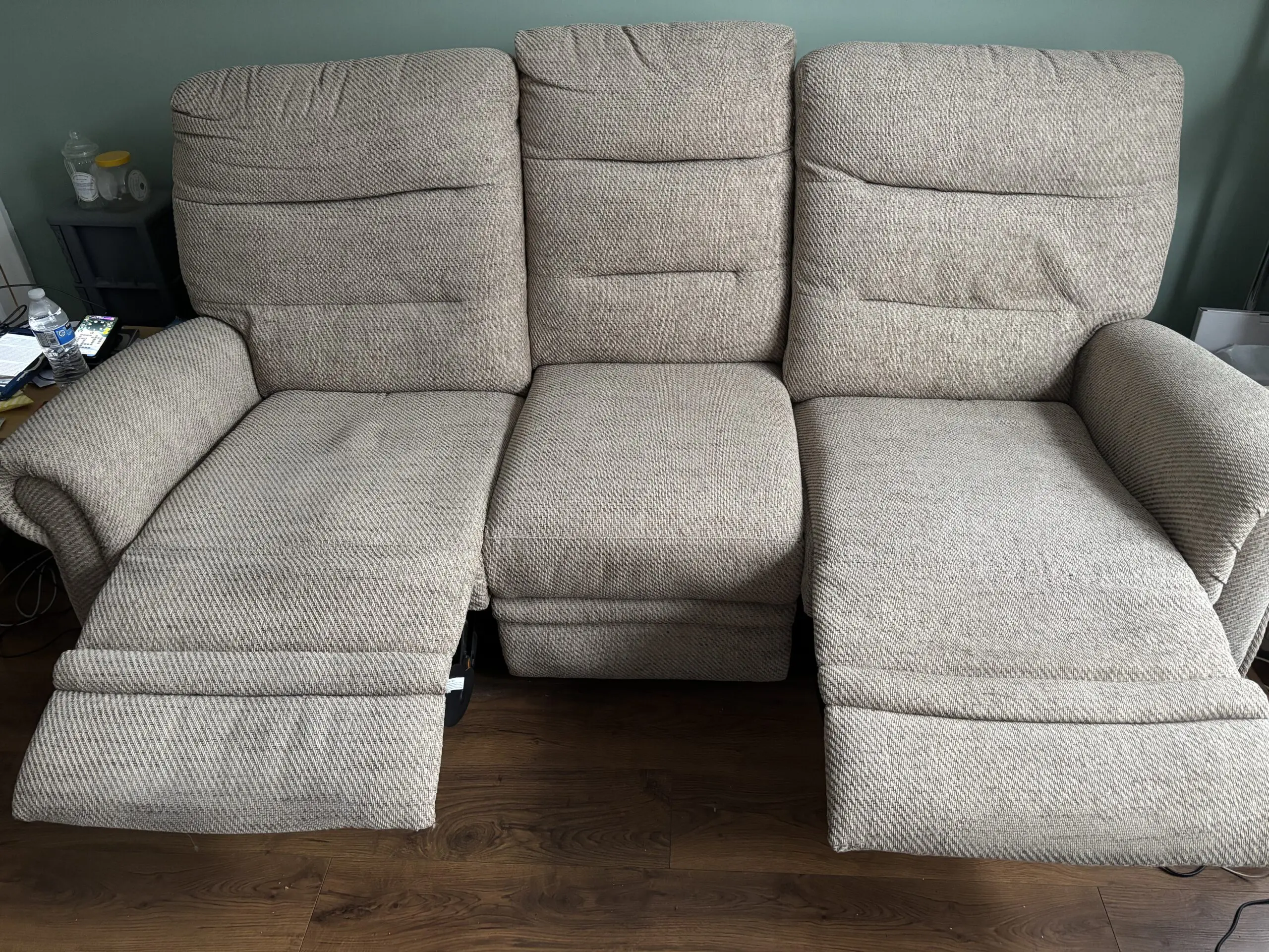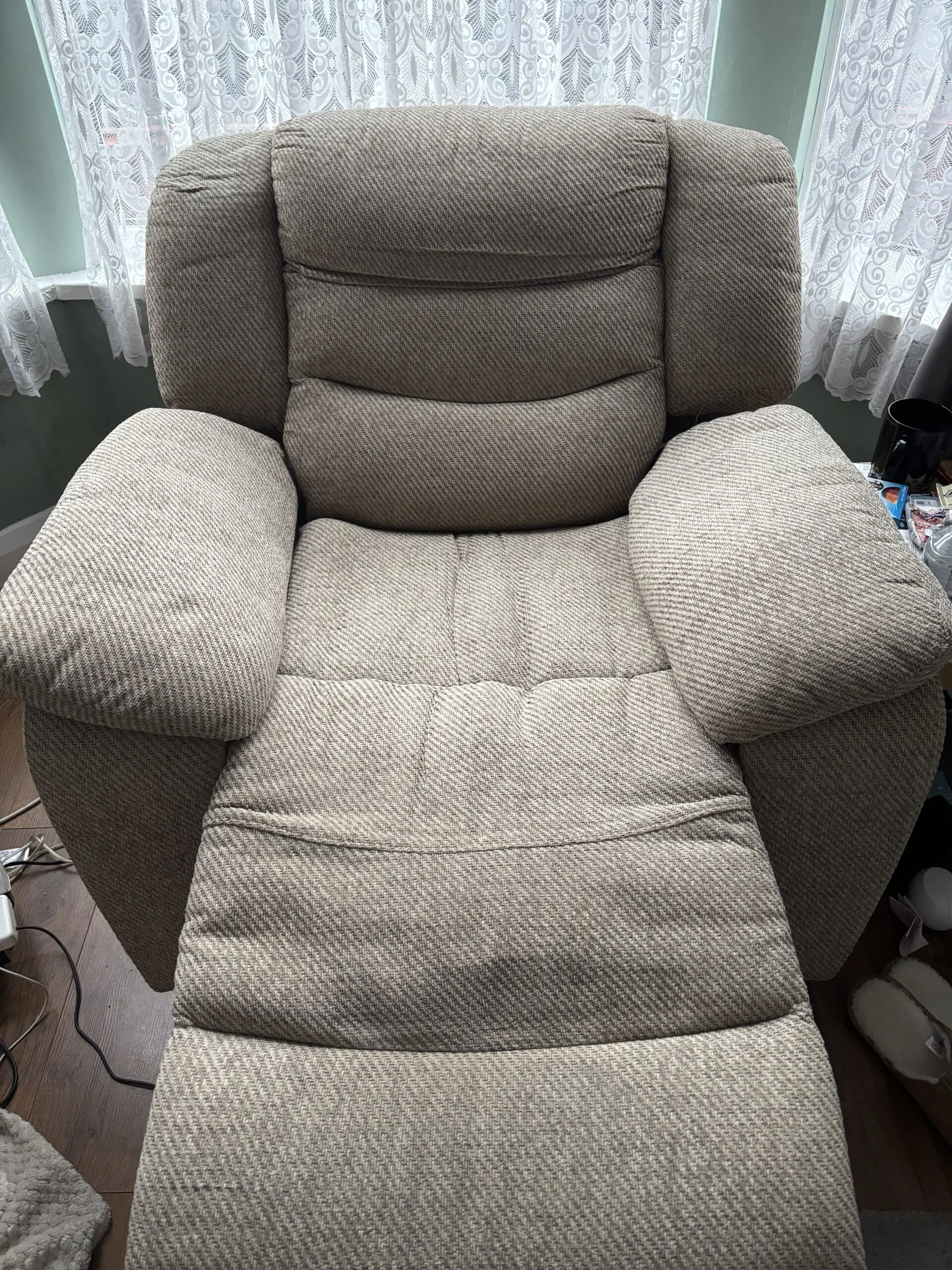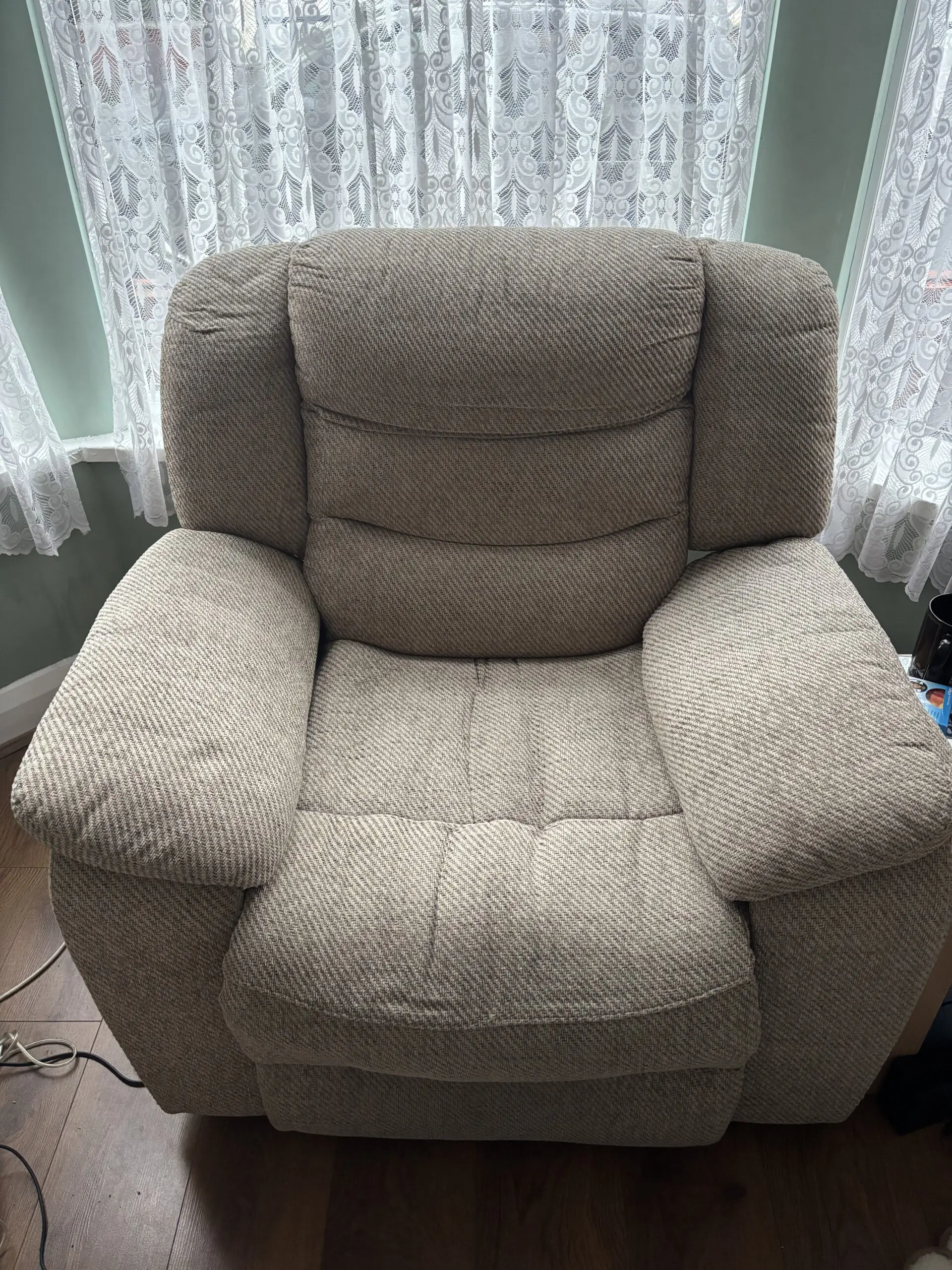 Great condition 3 seater and chair both electric recliners. Always had throws on so no stains marks etc. from pet and smoke free home. Comes with two fabric cleaning kits.