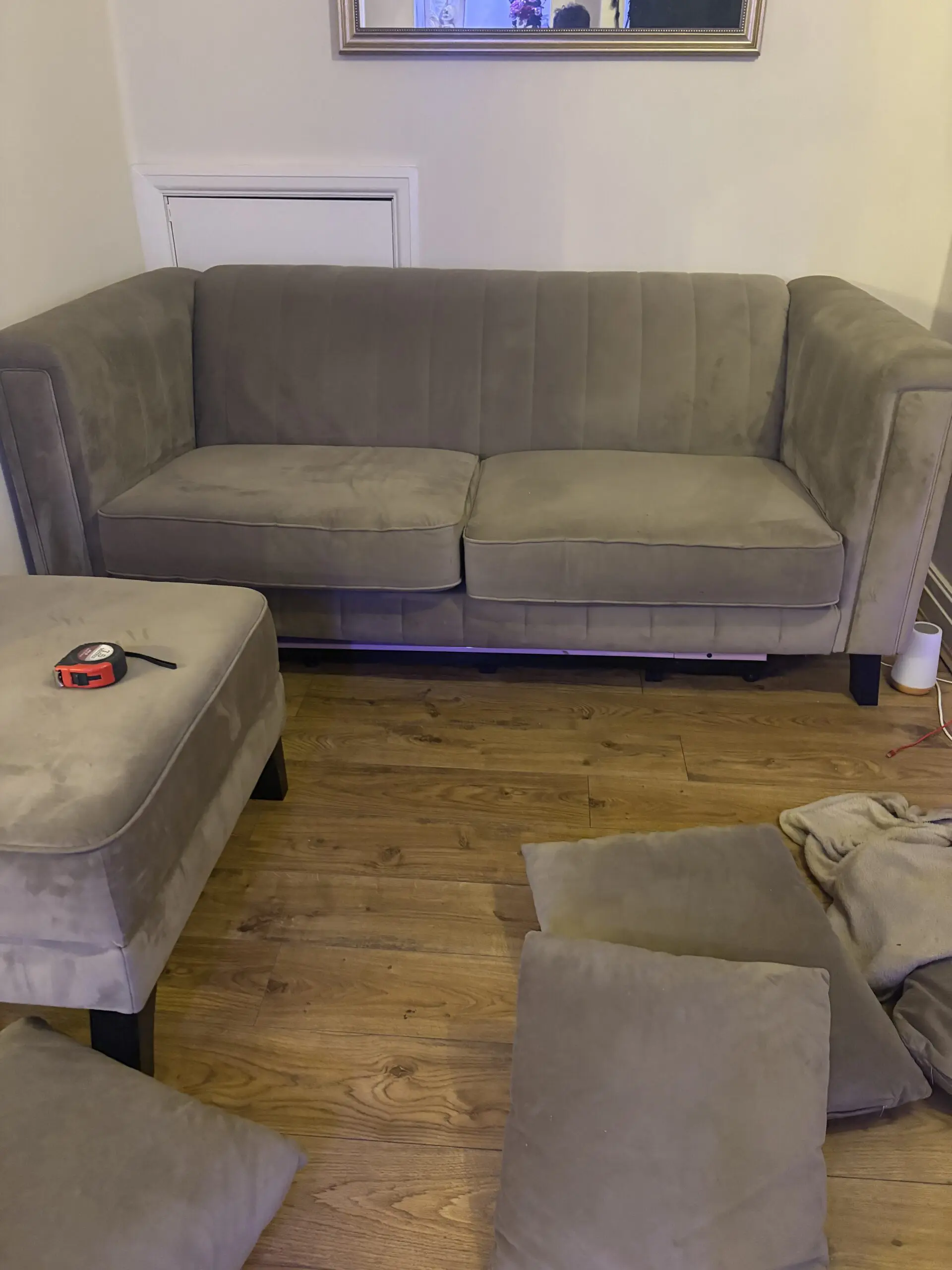 Excellent condition. 18/20 months old comes as a 3 seater 2 seater and footstool plus cushions