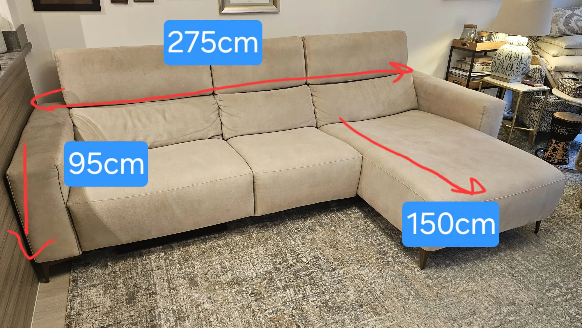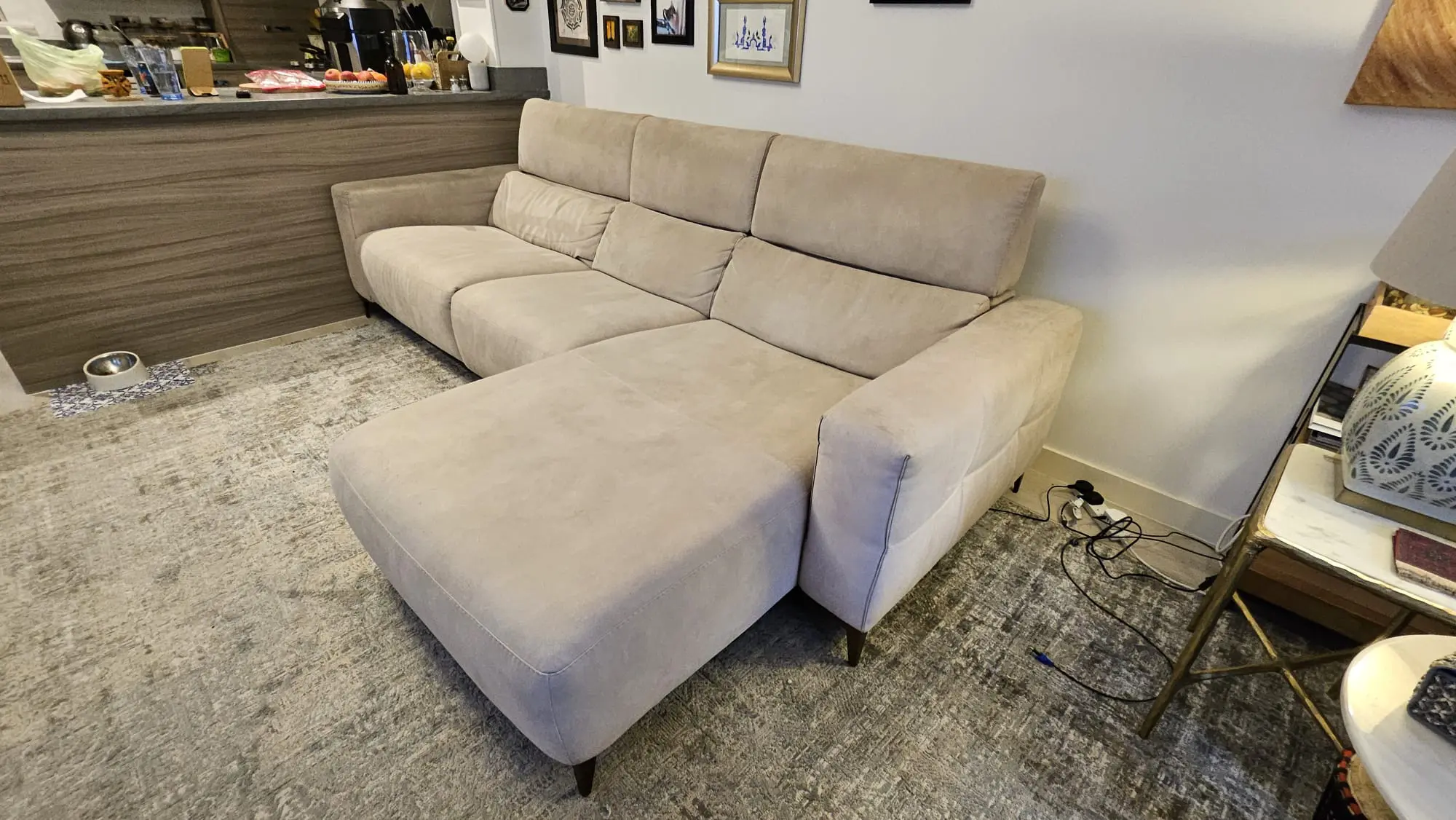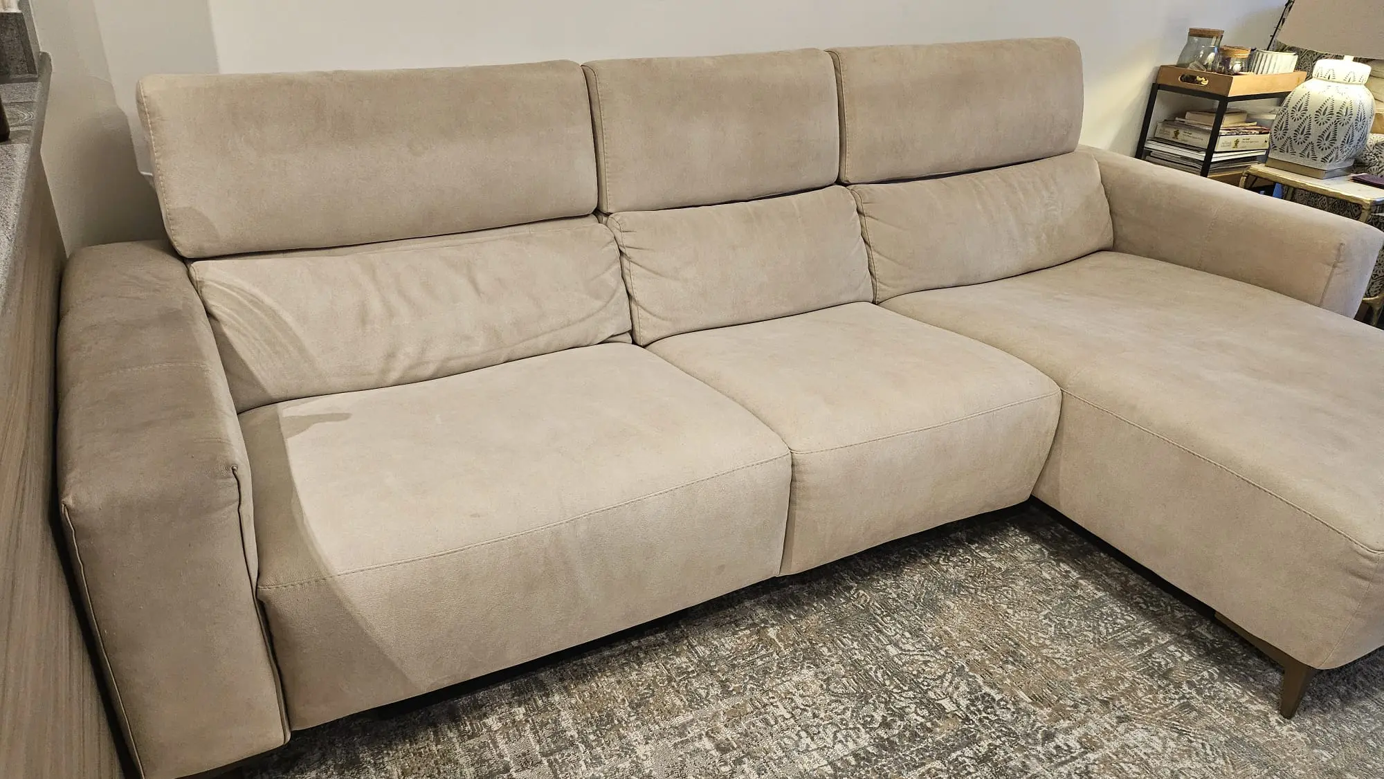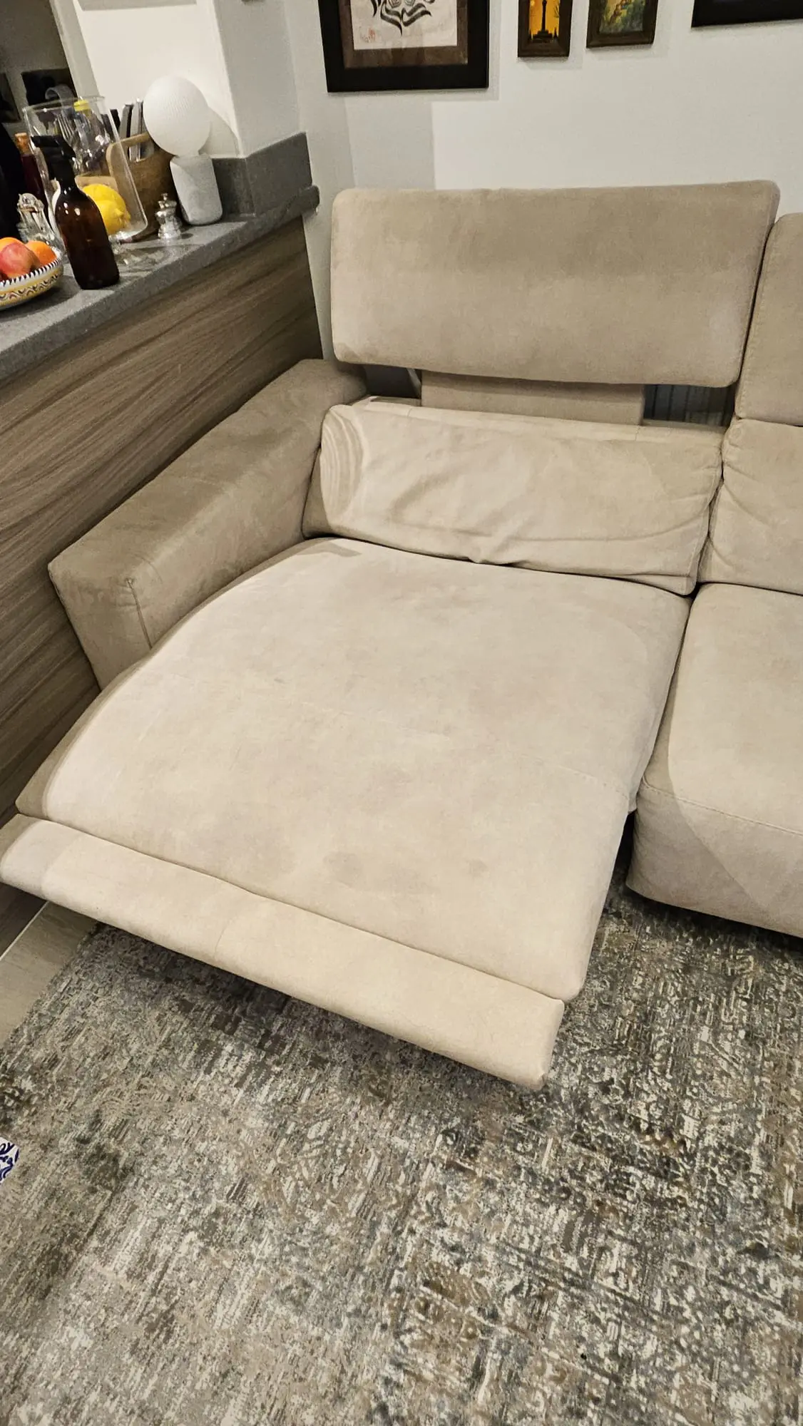 In excellent but used condition, not a single stain. 3 chair sofa with chaise and electric recliner in