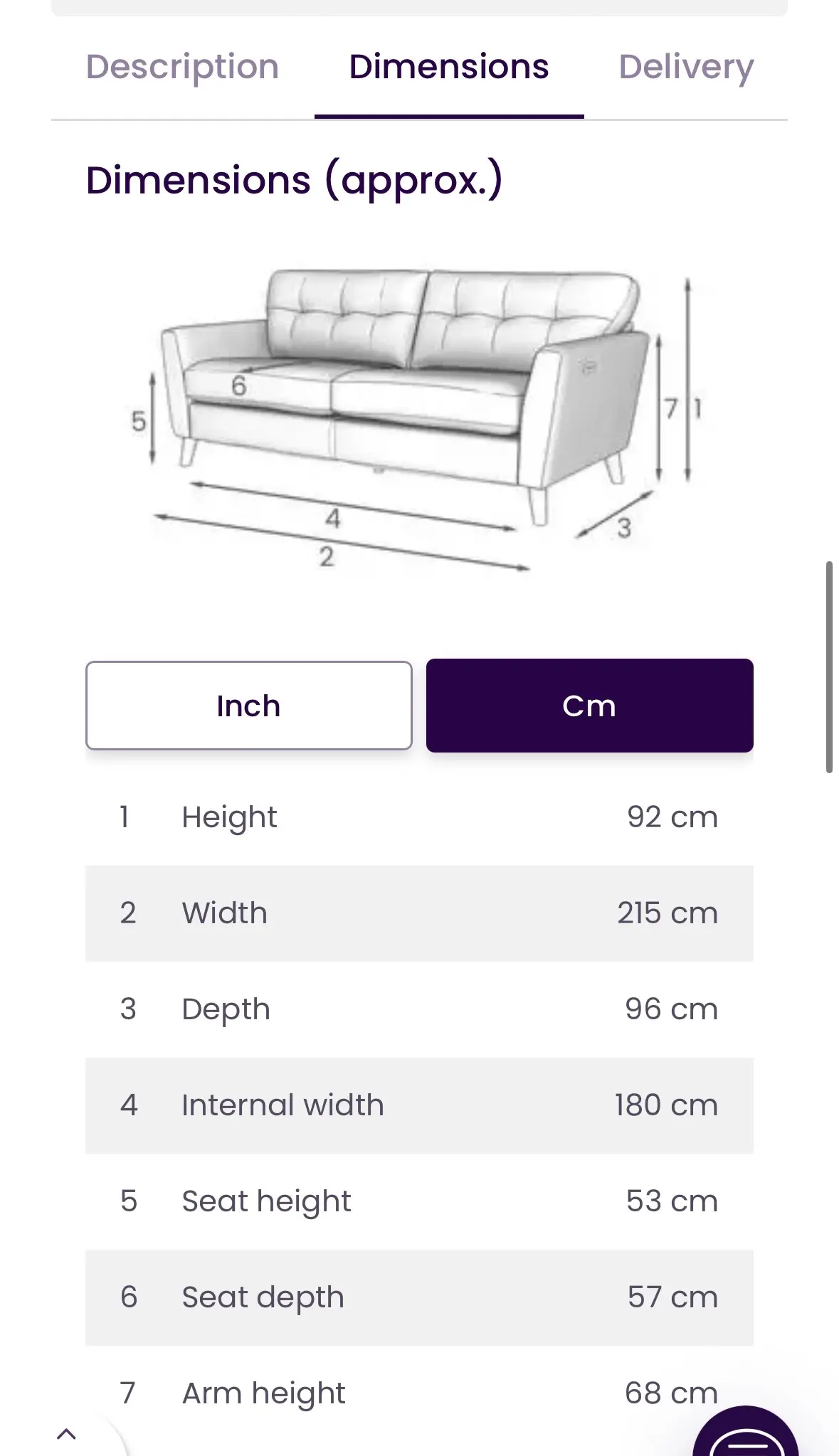 6. Seat depth: 57 cm