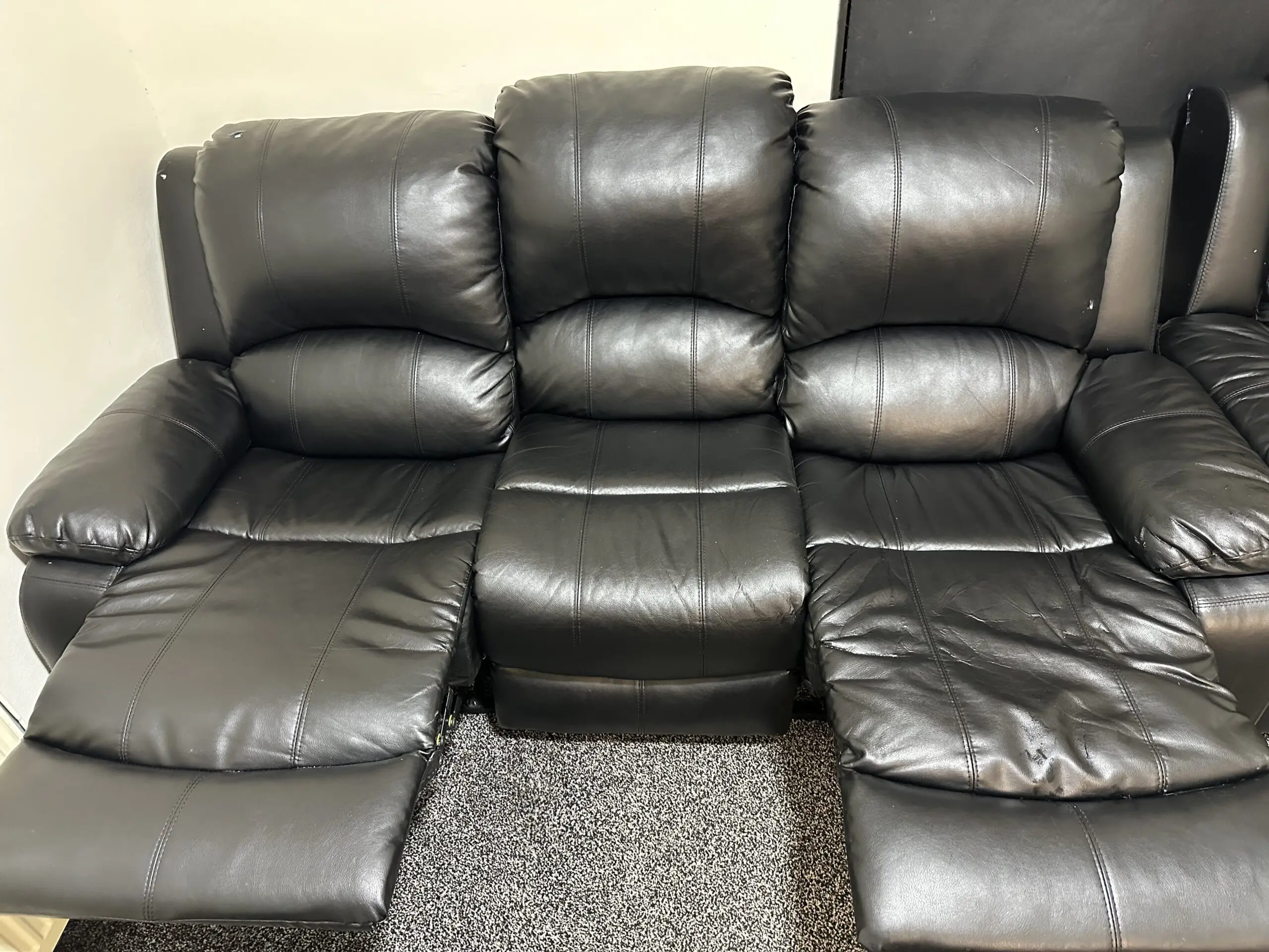 This spacious 3-seater reclining sofa offers exceptional comfort with its generously padded cushions and supportive armrests. The contemporary design features attractive contrast stitching throughout, creating clean lines that suit modern living spaces. Each seat appears to have individual reclining functionality, perfect for relaxing after a long day. The neutral colour makes it versatile enough to complement various interior styles whilst providing comfortable seating for the whole family.