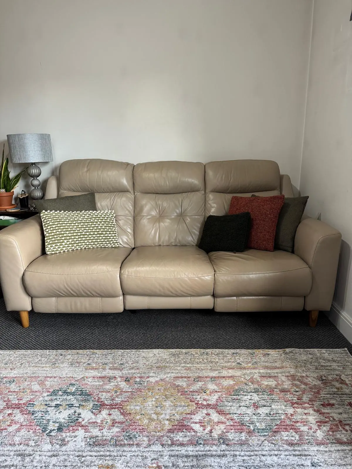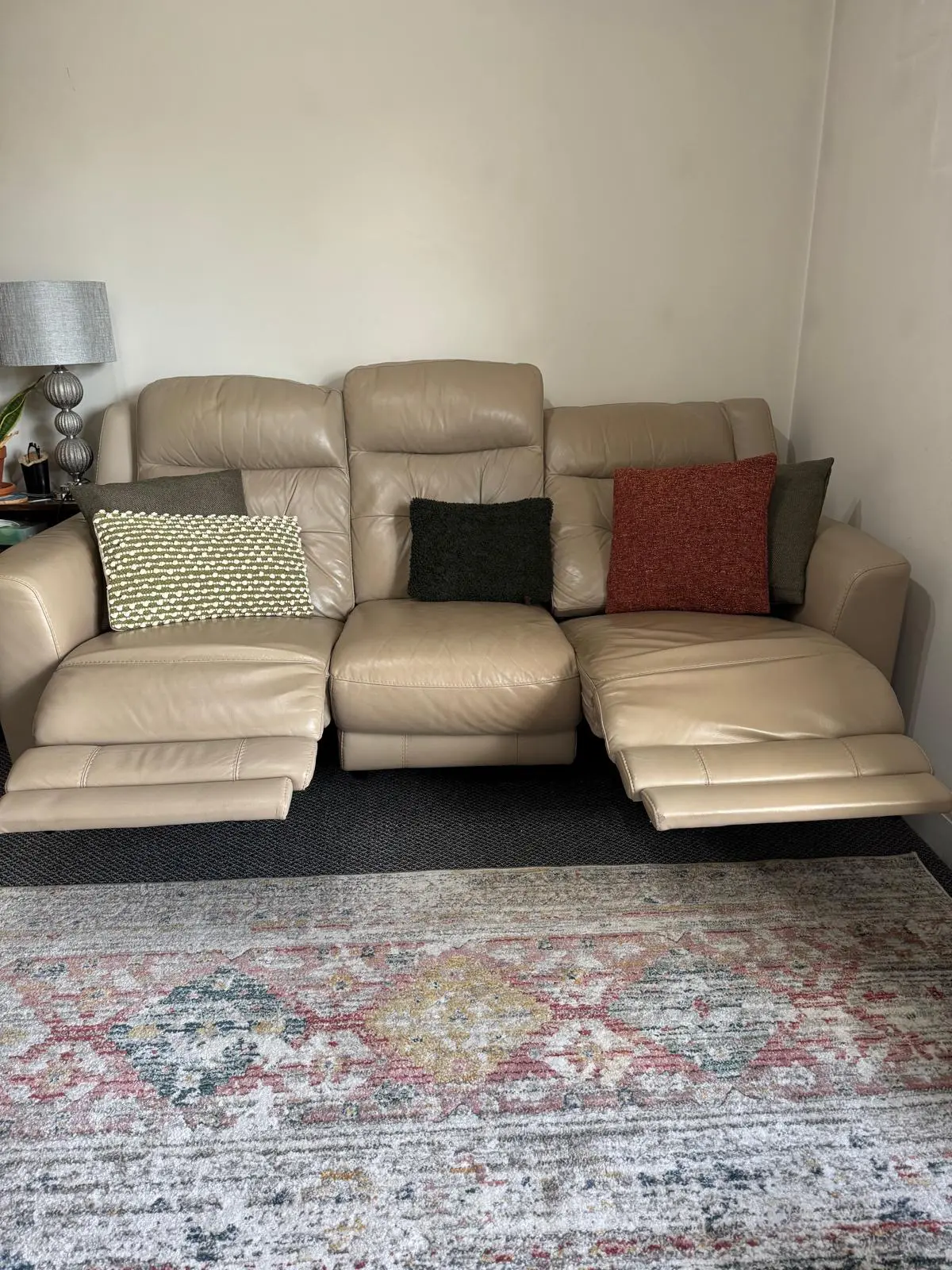 3 seater electric recliner leather sofa from Furniture Village with USB ports. Sturdy, solid and durable. No marks, scuffs or stains