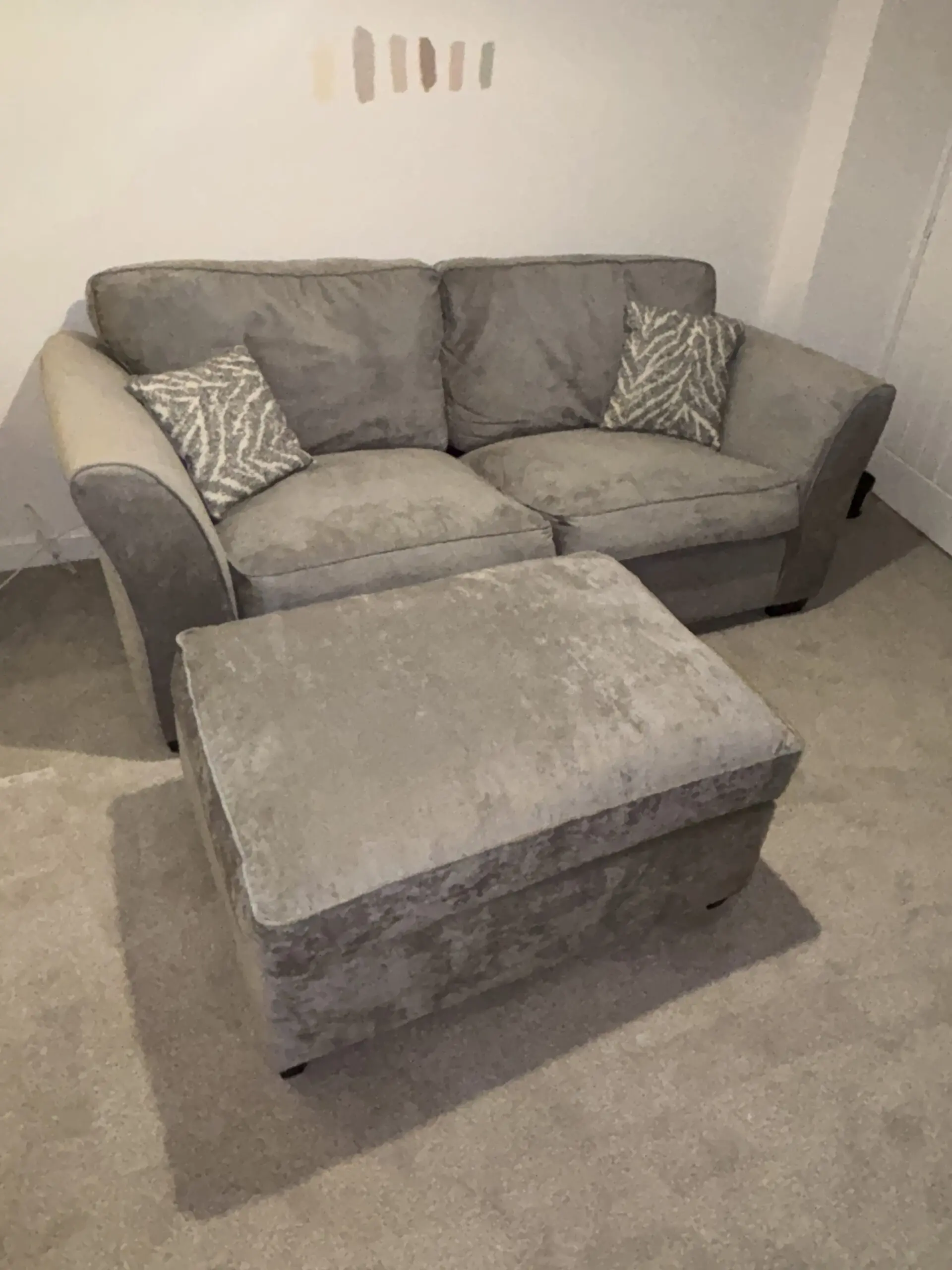Excellent condition, 8 months old 3 seater sofa & footstool. (Includes Cushions)