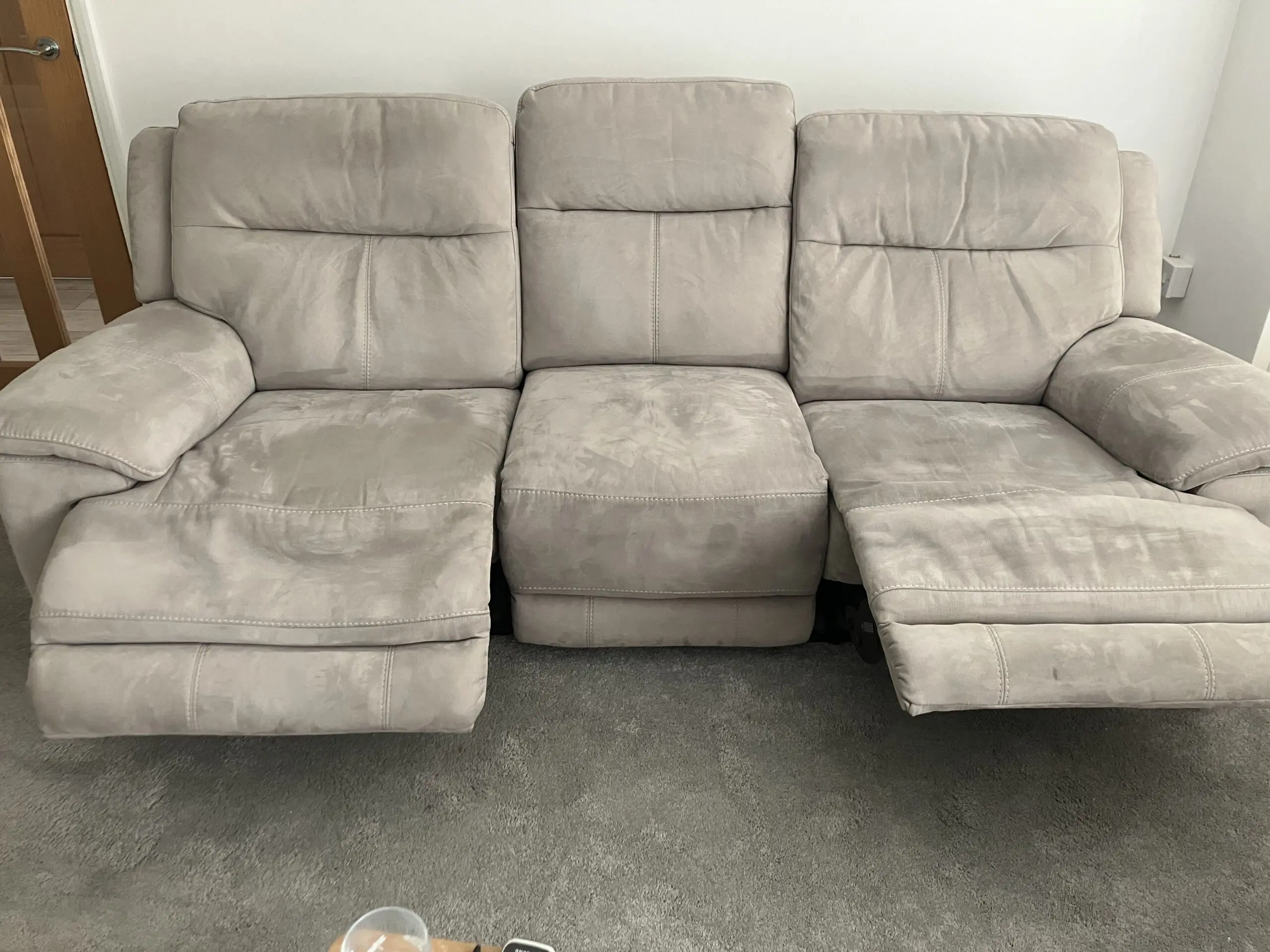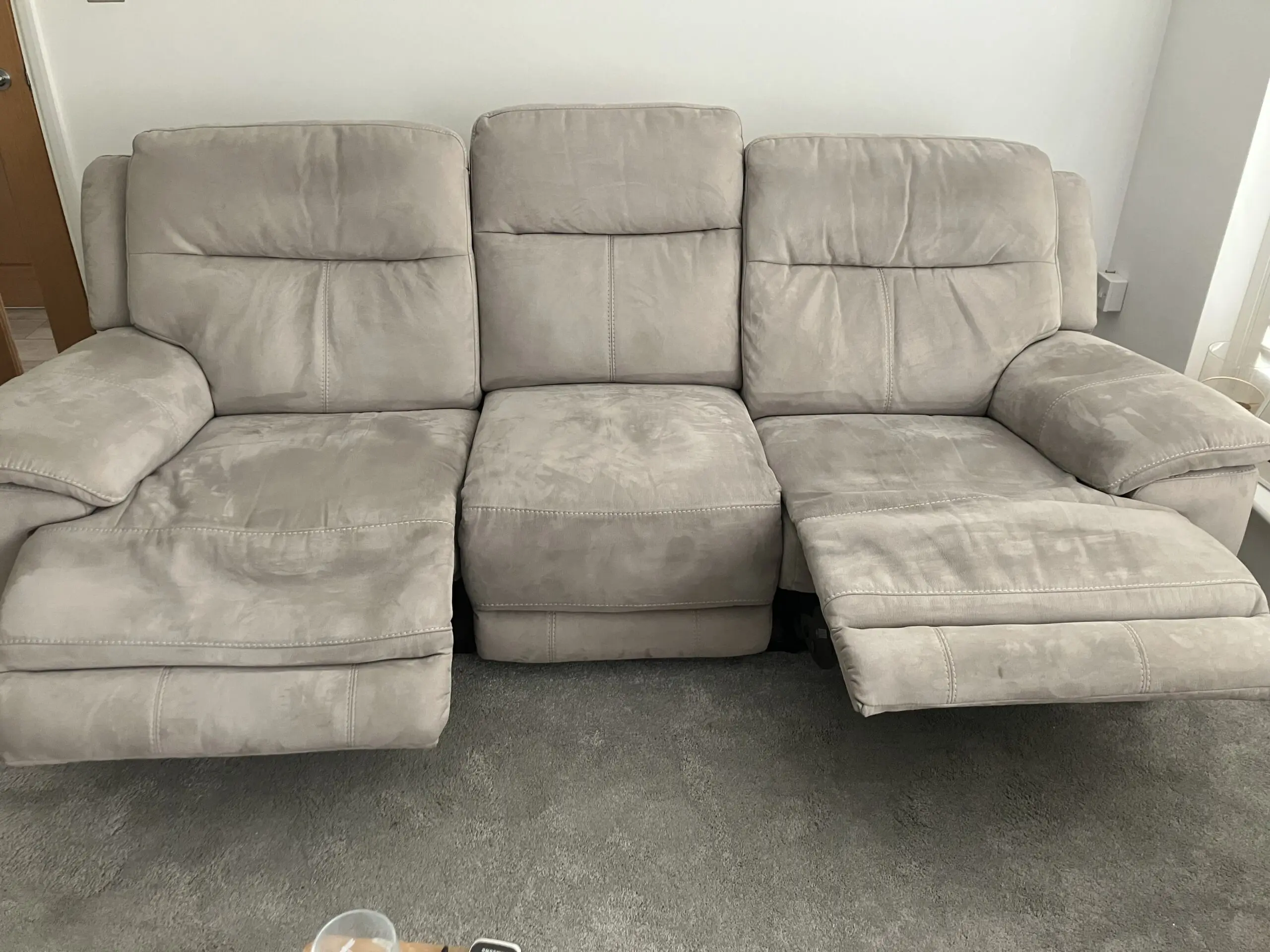 Grey 3 seater recliner sofa, good condition. Very comfortable and has two usb points. Comes apart for easier access.
