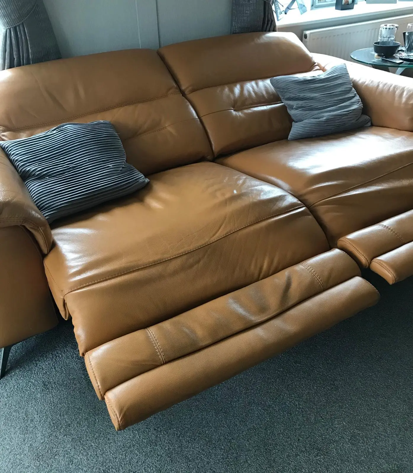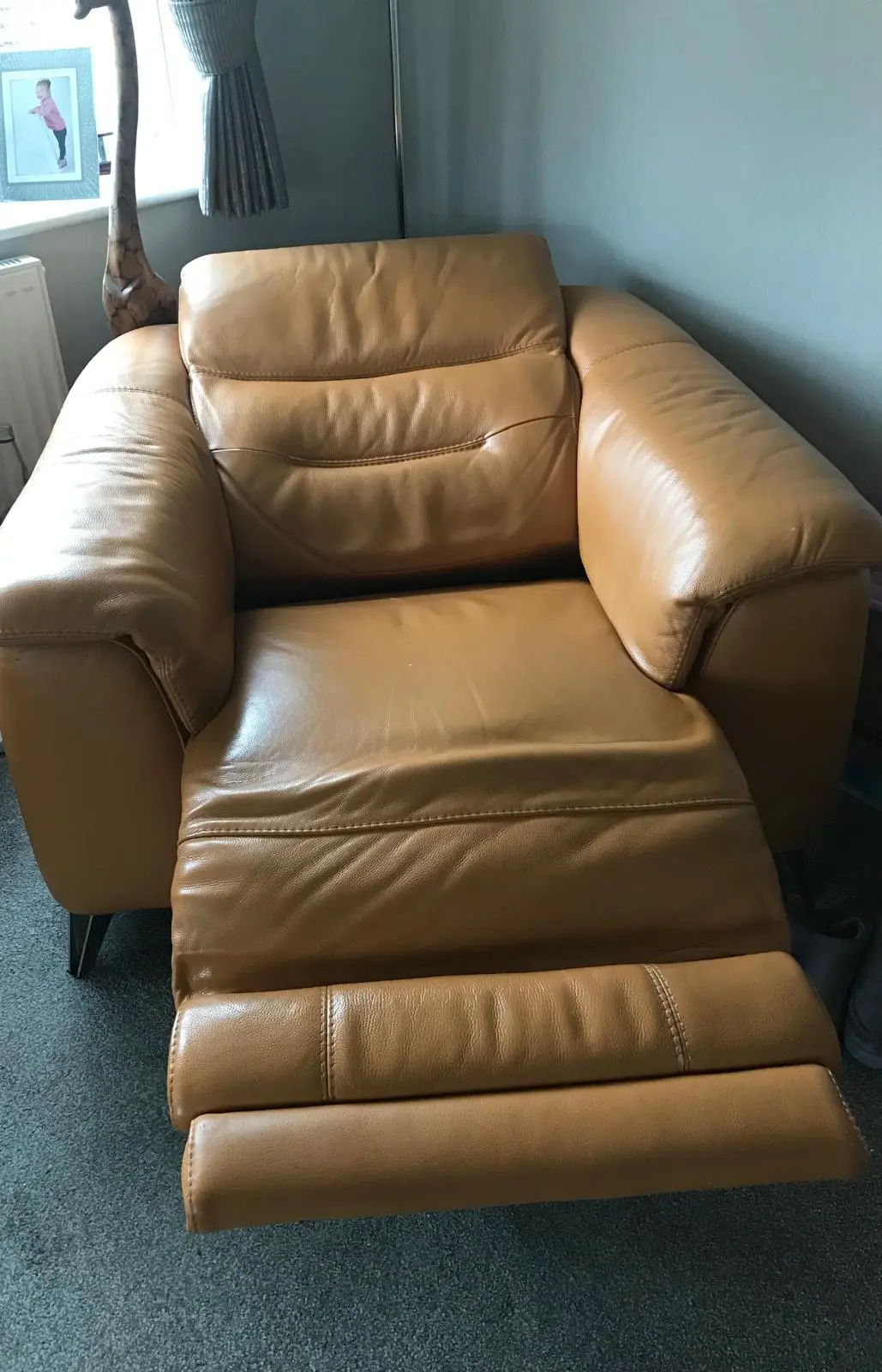 Furniture Village Leather Honey Yellow Sanza 3 seater power recliner