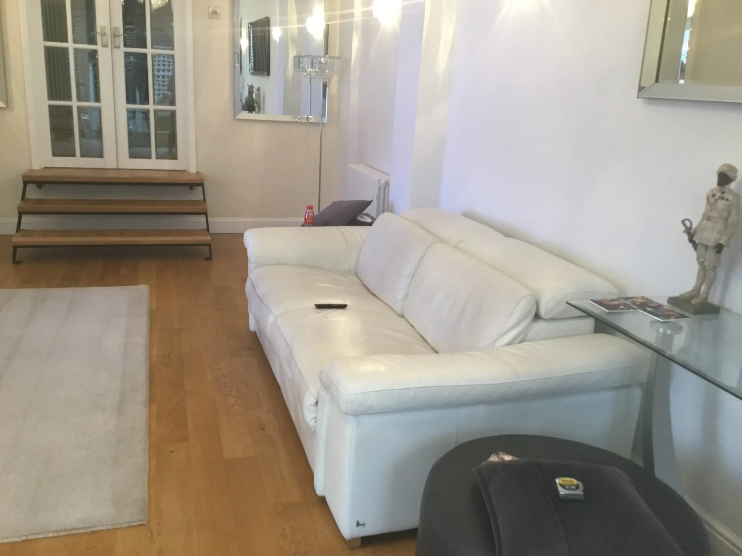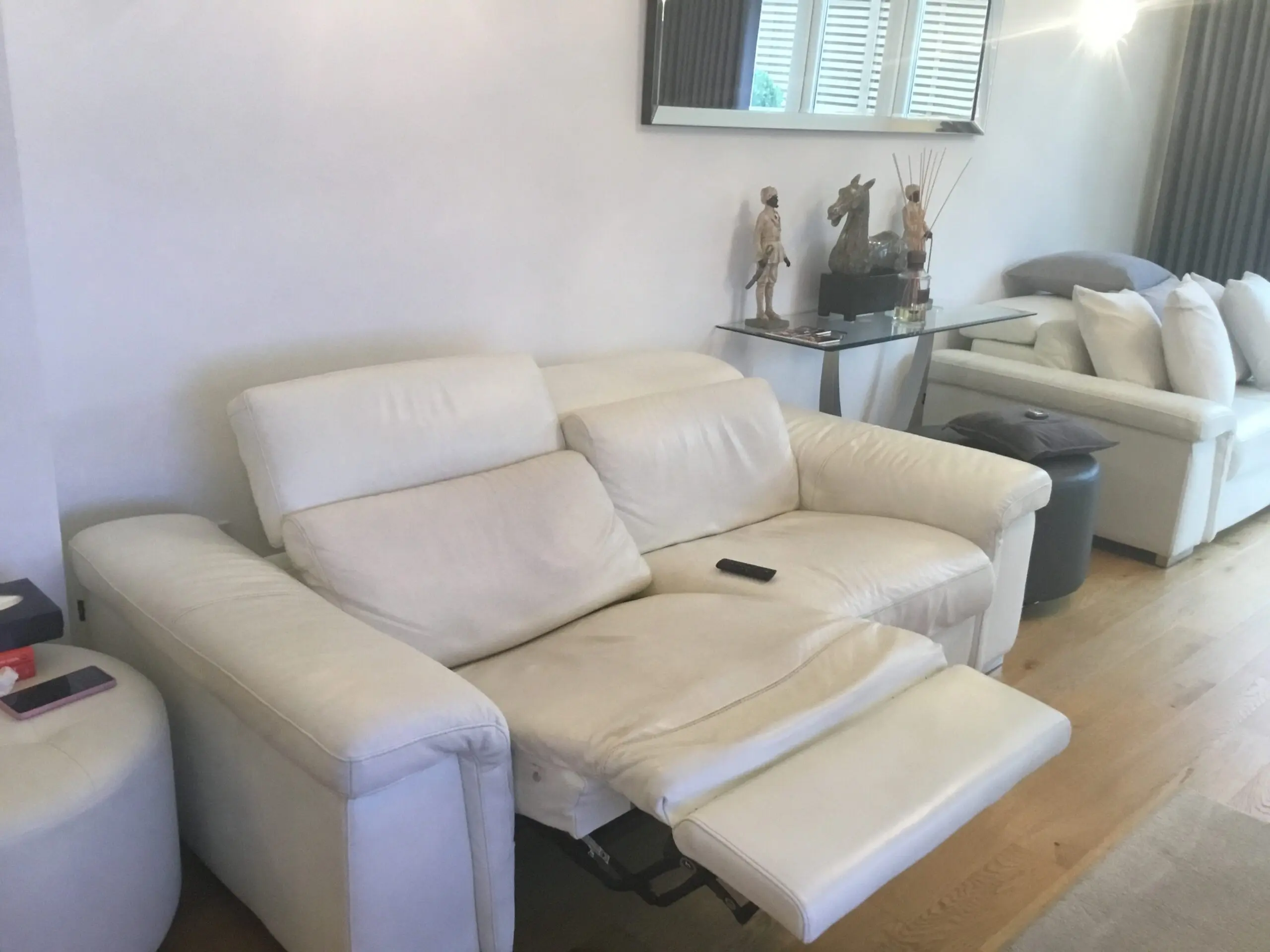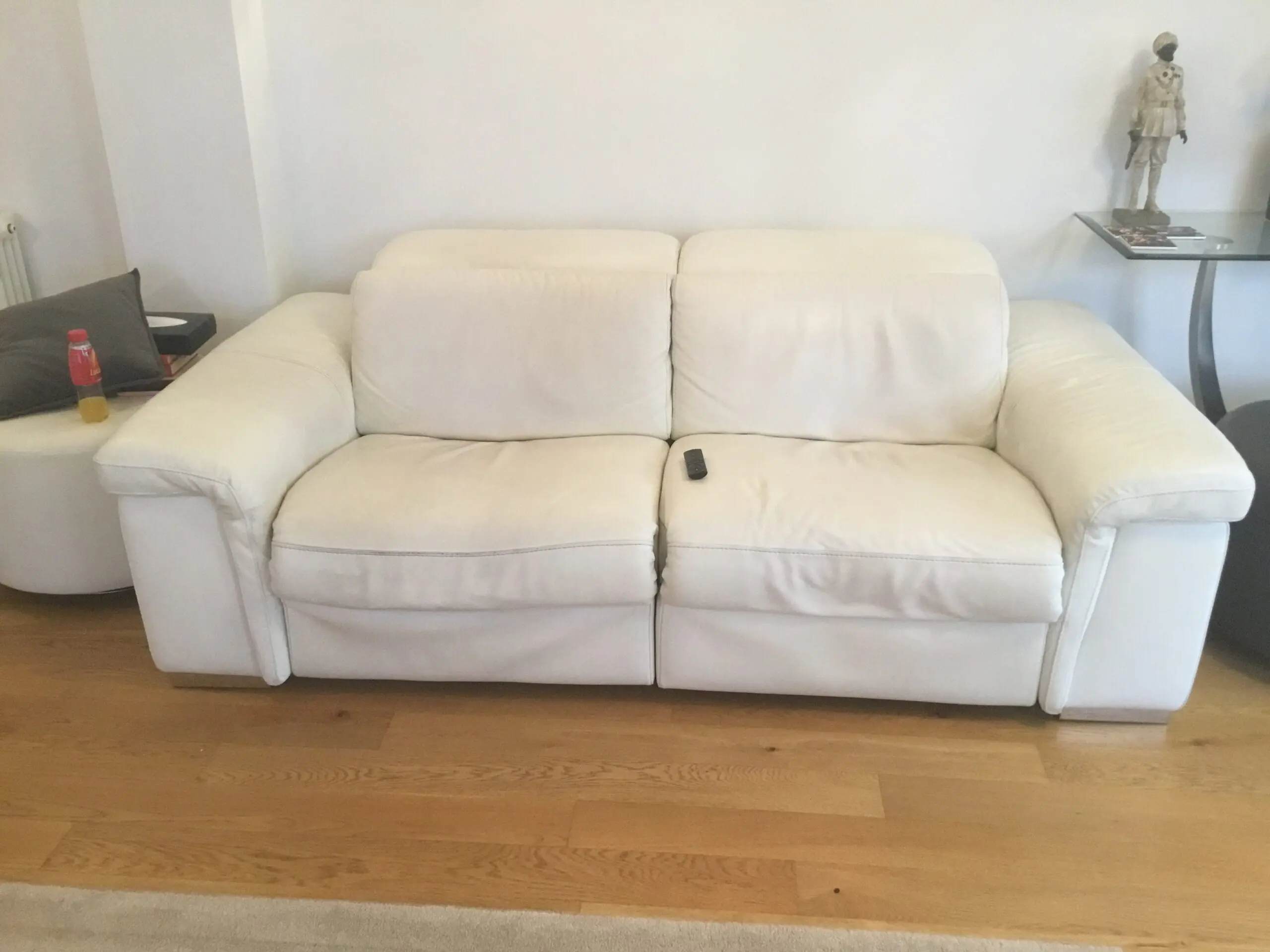 Furniture Village White Leather 3 seater Power Assisted headrest and recliner.