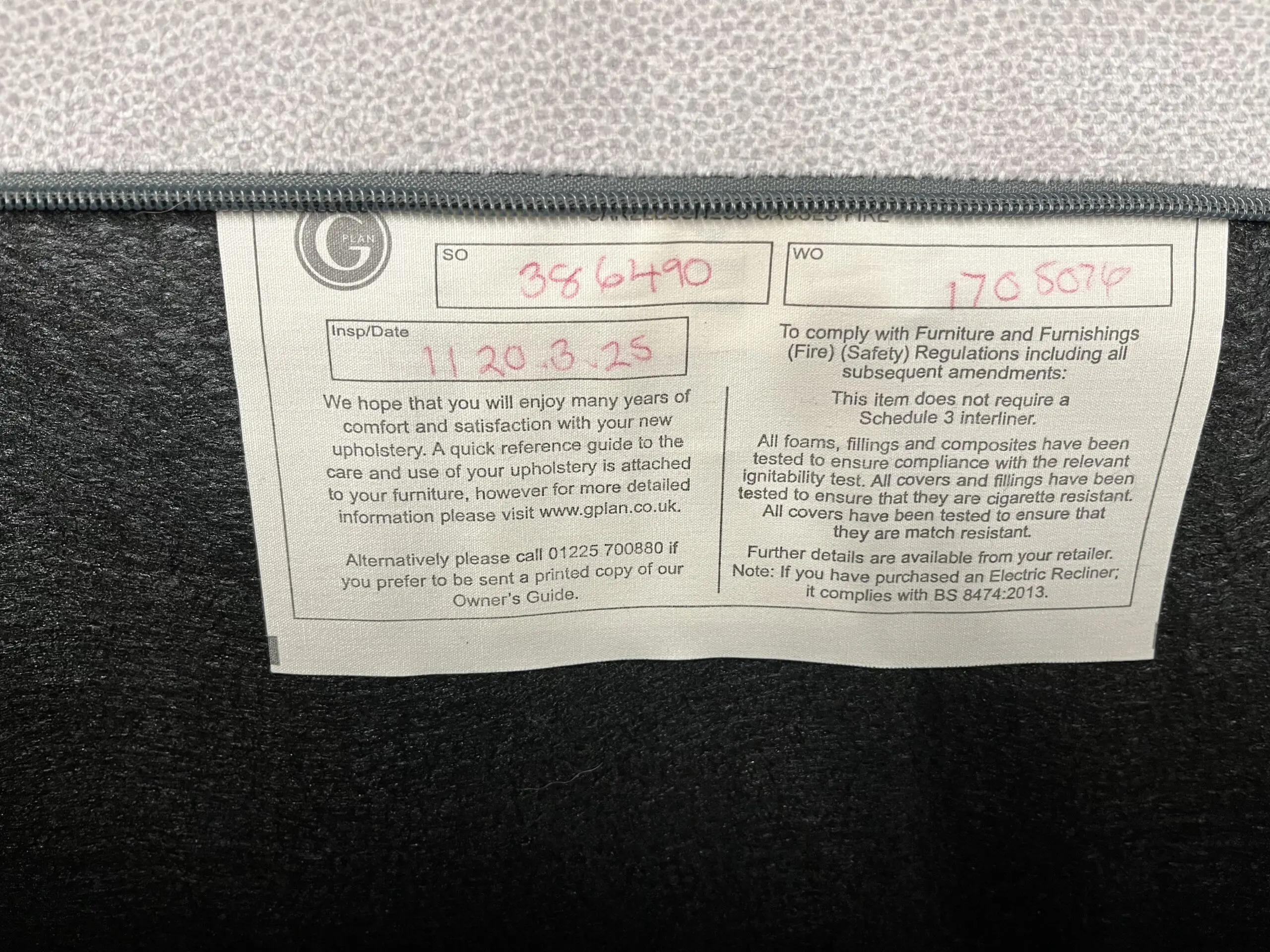 G-plan Kingsbury 3 seater curved electric recliner In excellent condition, manufactured in march 2025 so around 6months old, both ends have electric recliner with electrical adjustable head rests, cost around £3.5k new