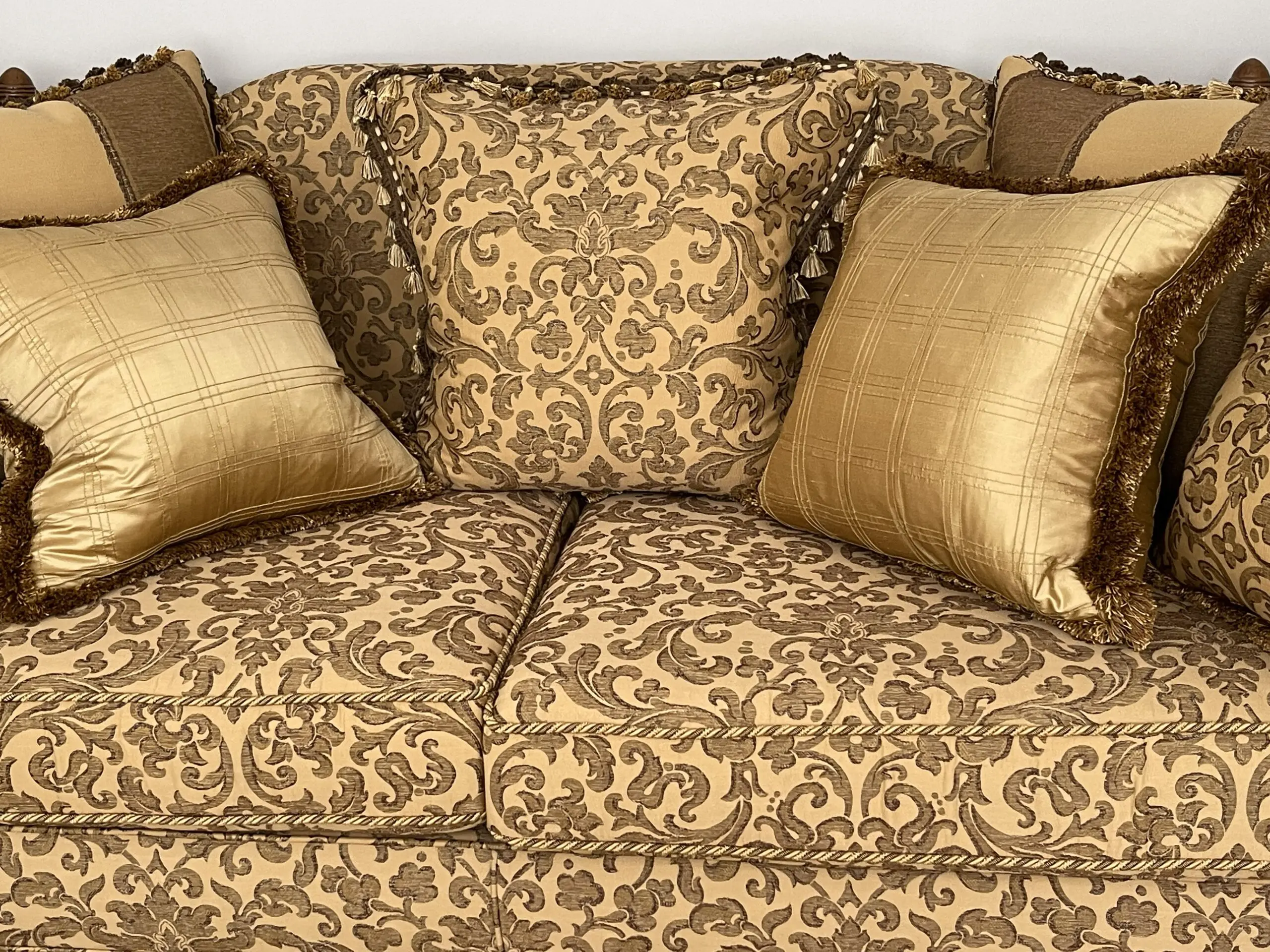 Classic design of sofa with a Damask Harlequin fabric finish in the style of James Knole. They may describe this as a 2.5 Seater.