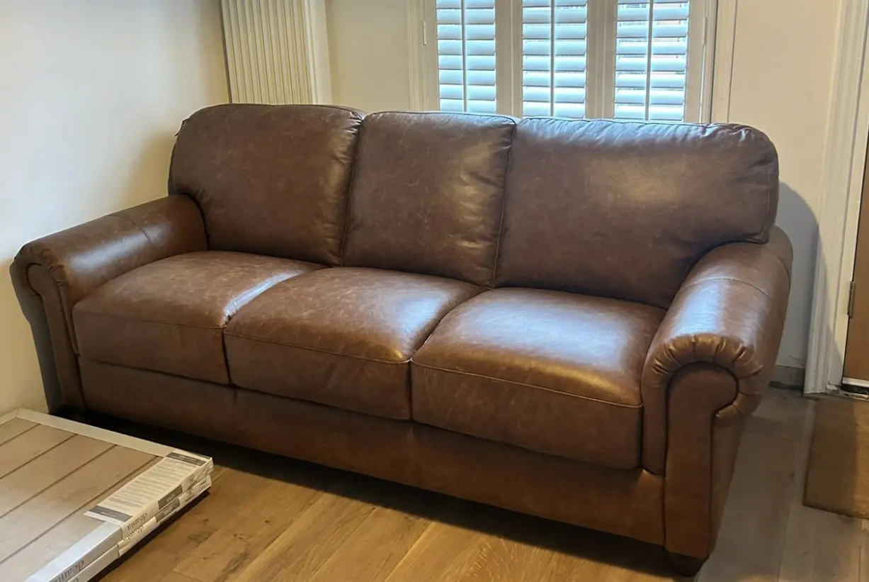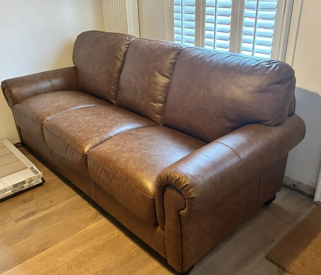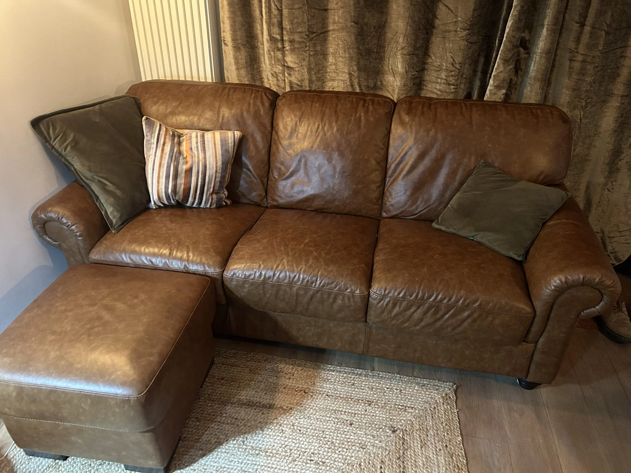 3 seater tan leather sofa. Just over one year old with light use. Smoke and pet free home, well looked after