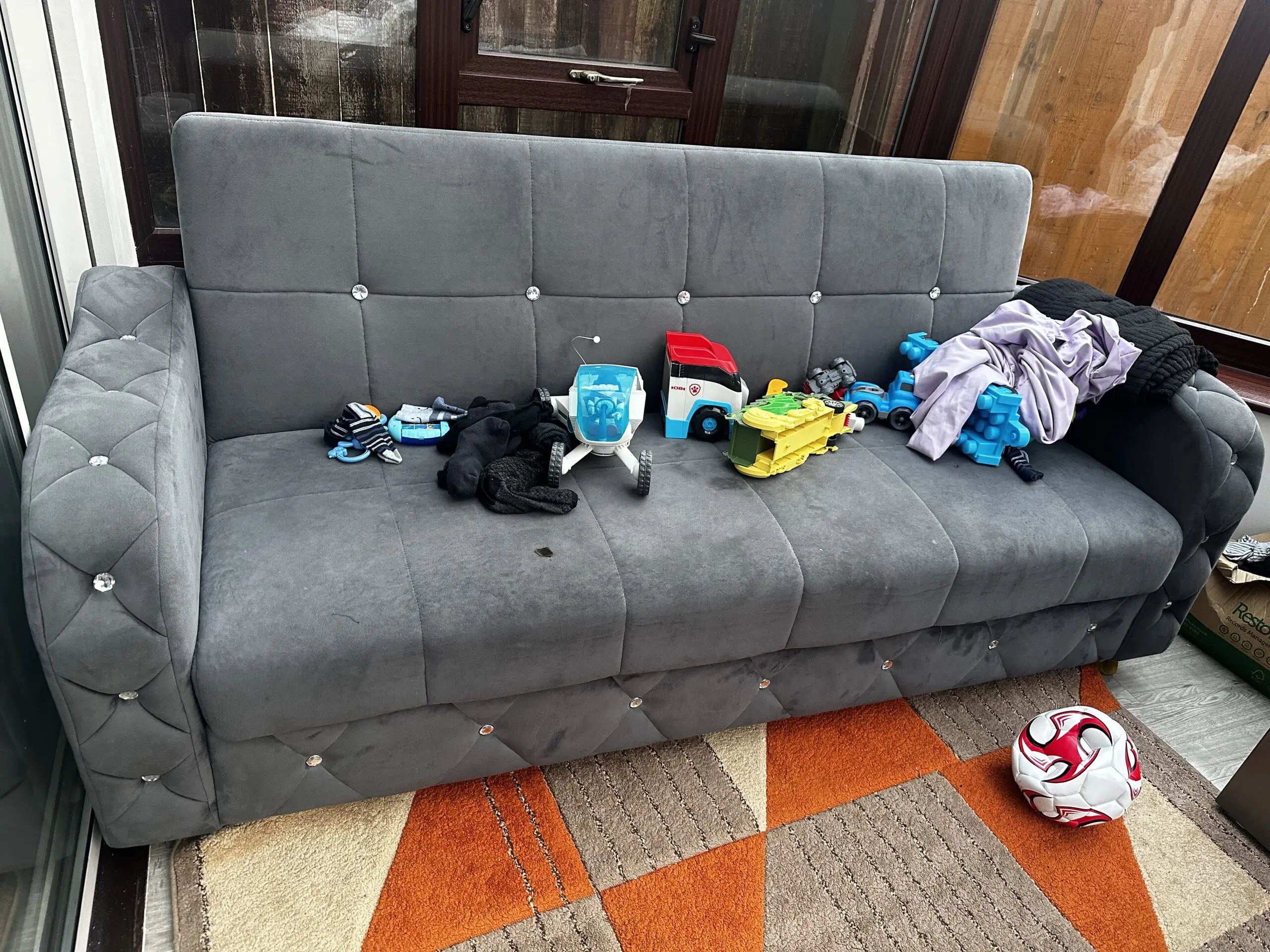 Grey 3 seater bed sofa, adjustable to bed. Very solid