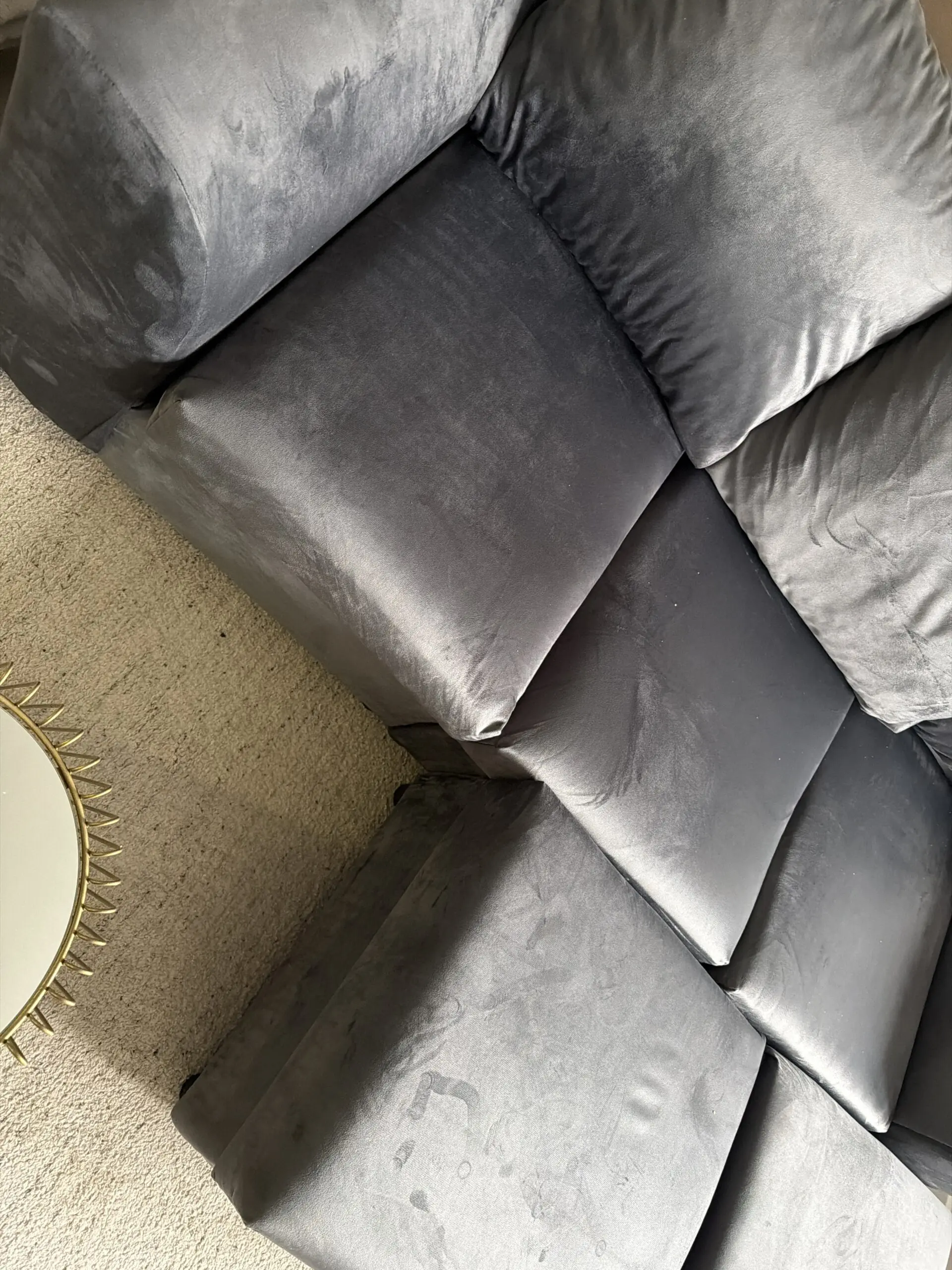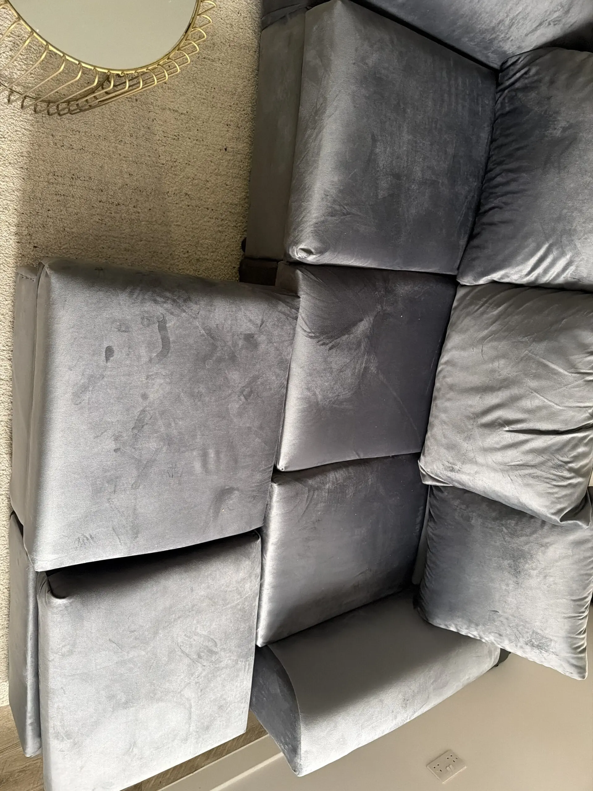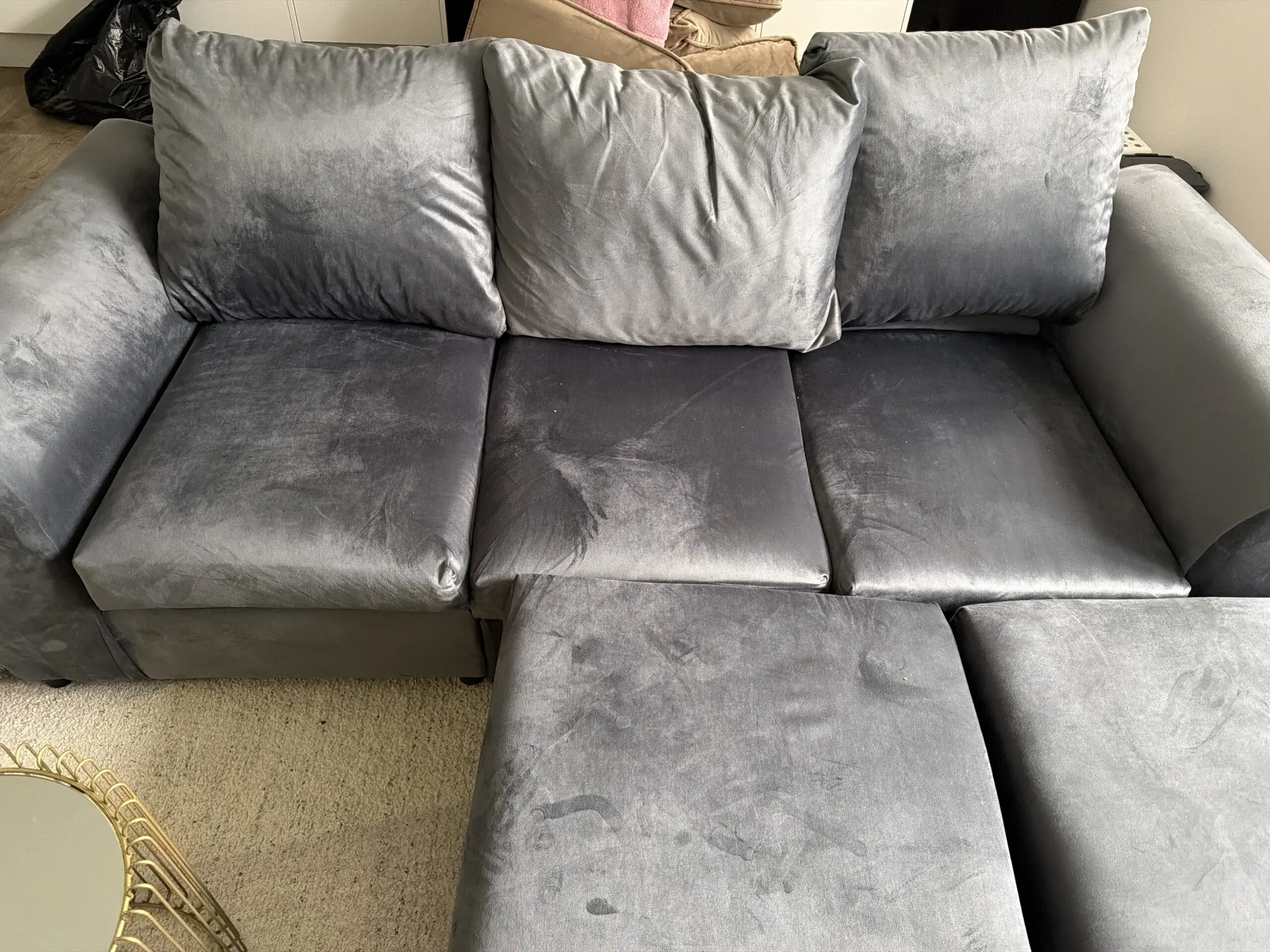 Grey corner sofa, brand new. Too small for my space. Comes with two pouffes