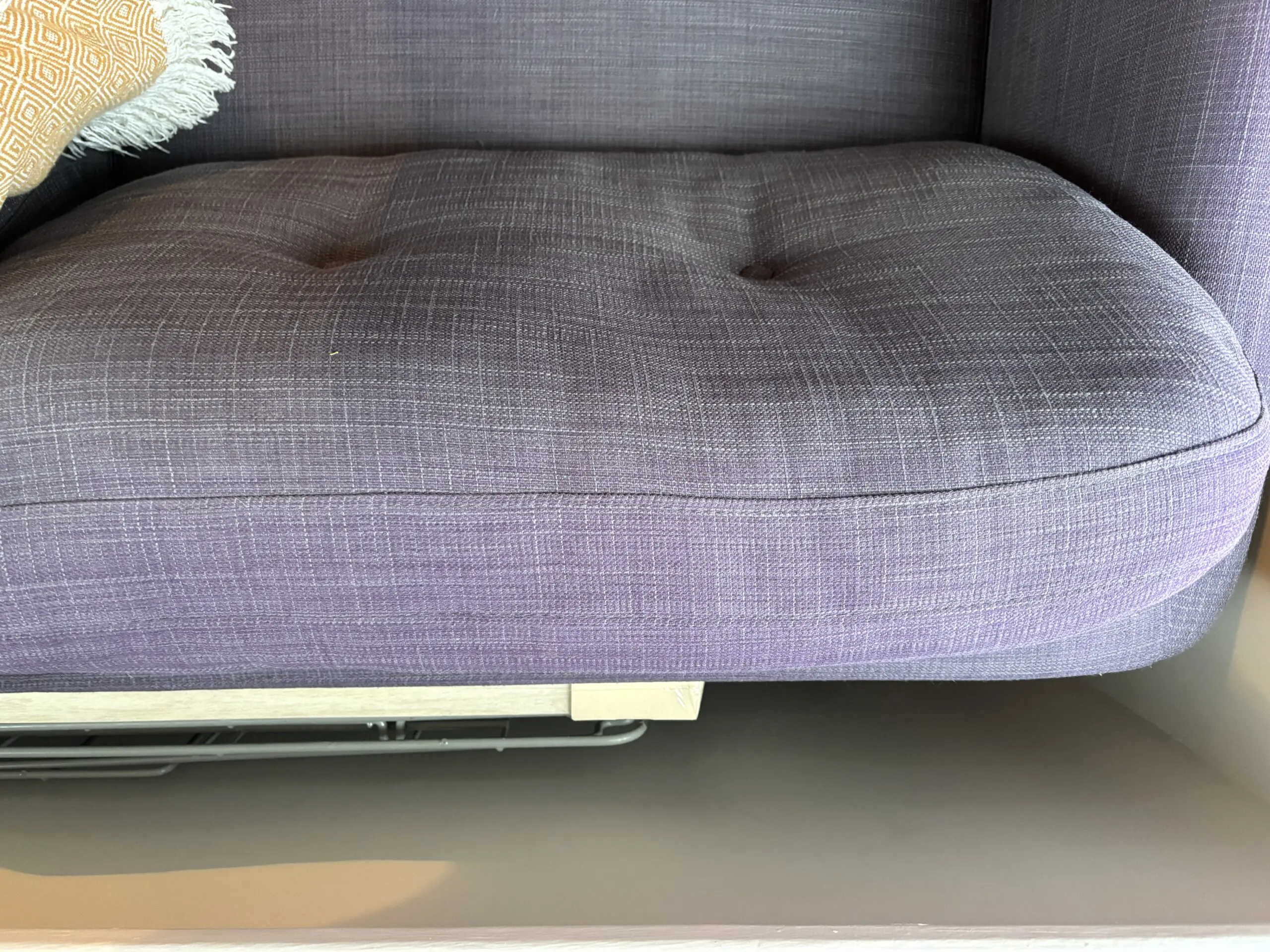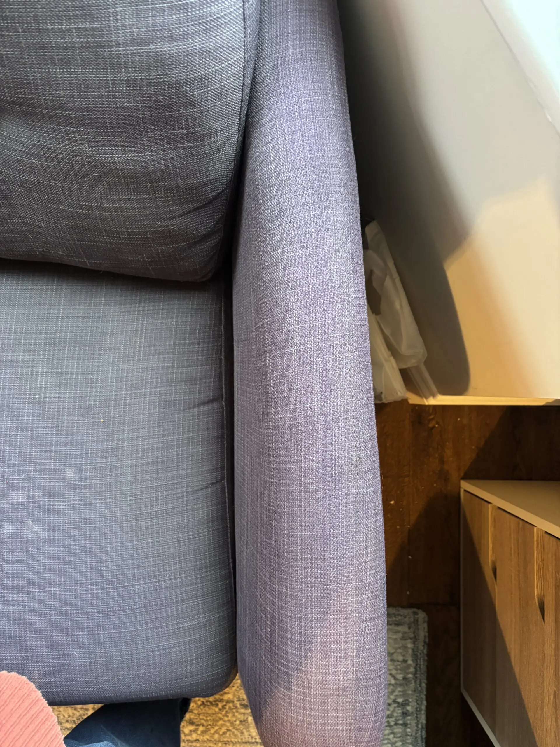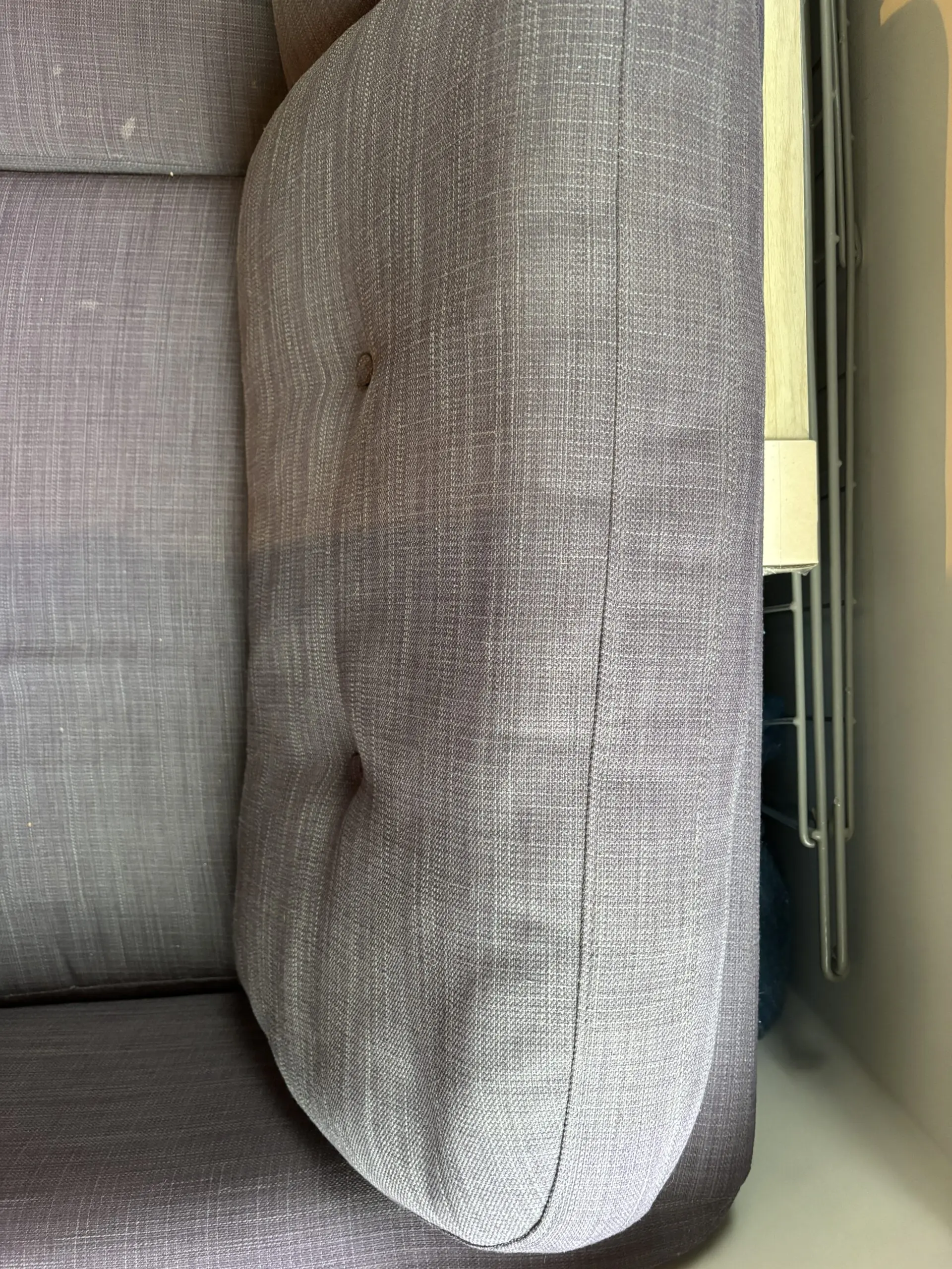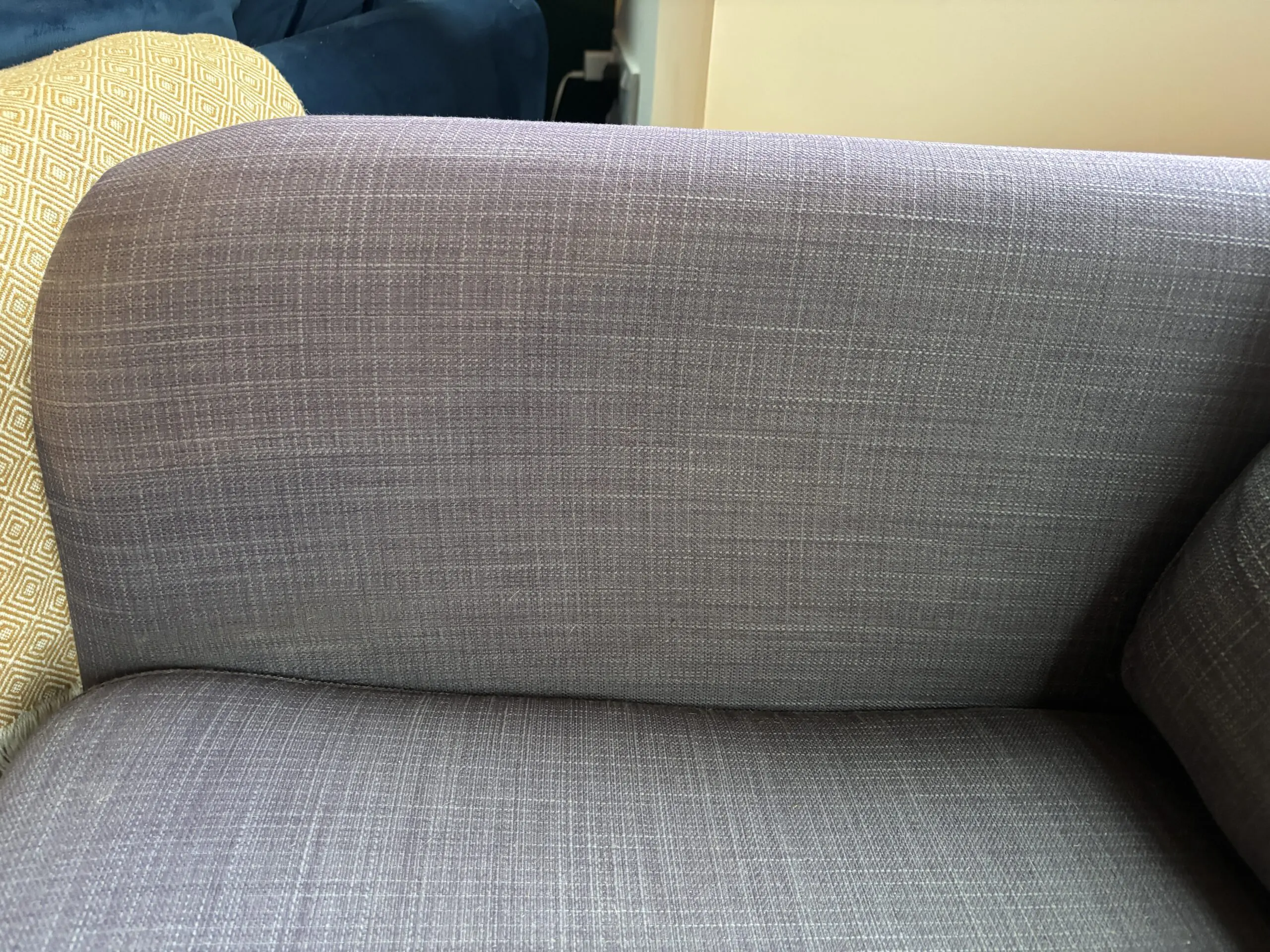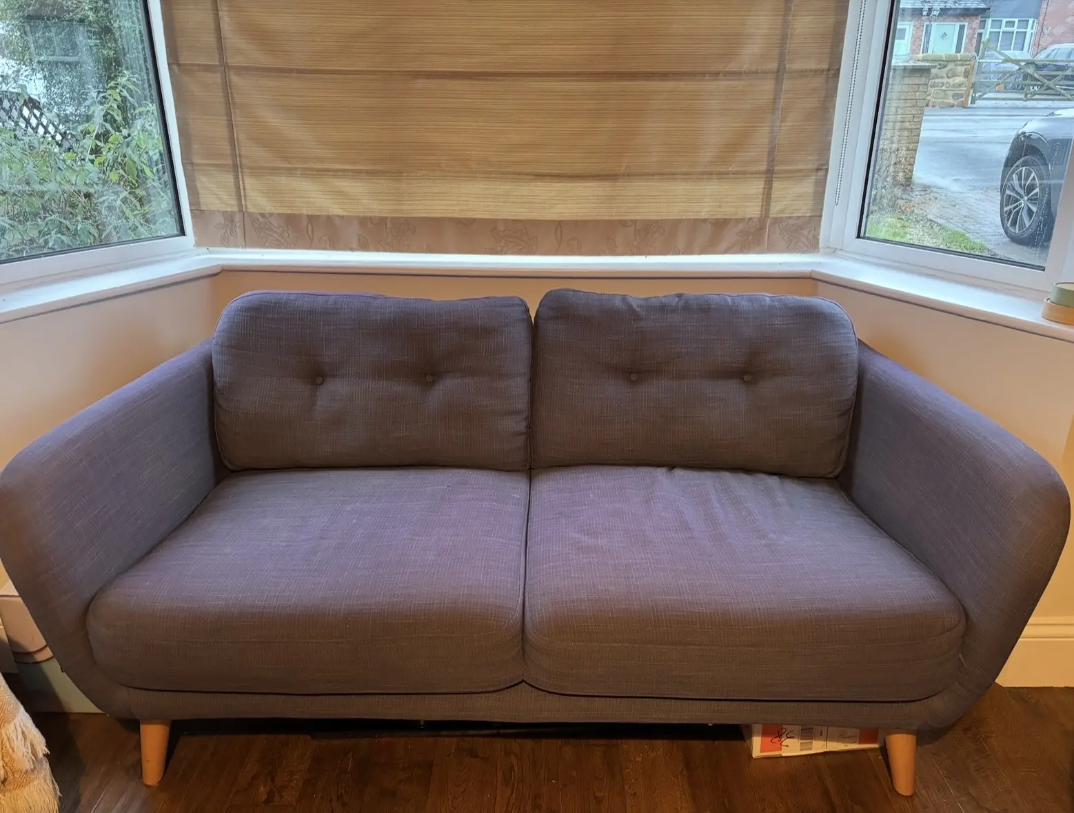 Modern scandi style sofa, wooden legs, hard wearing material. Sunndamage on arms but otherwise perfect functional and comfortable