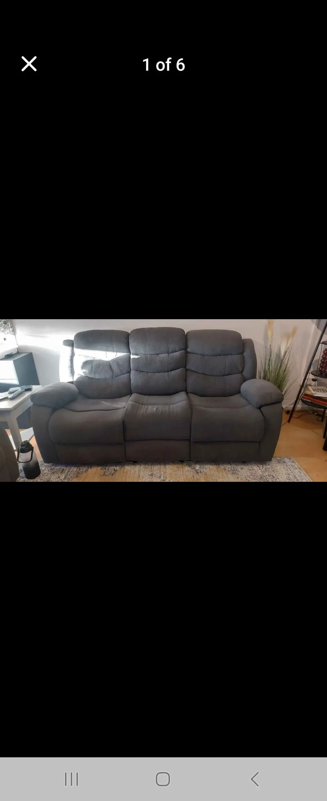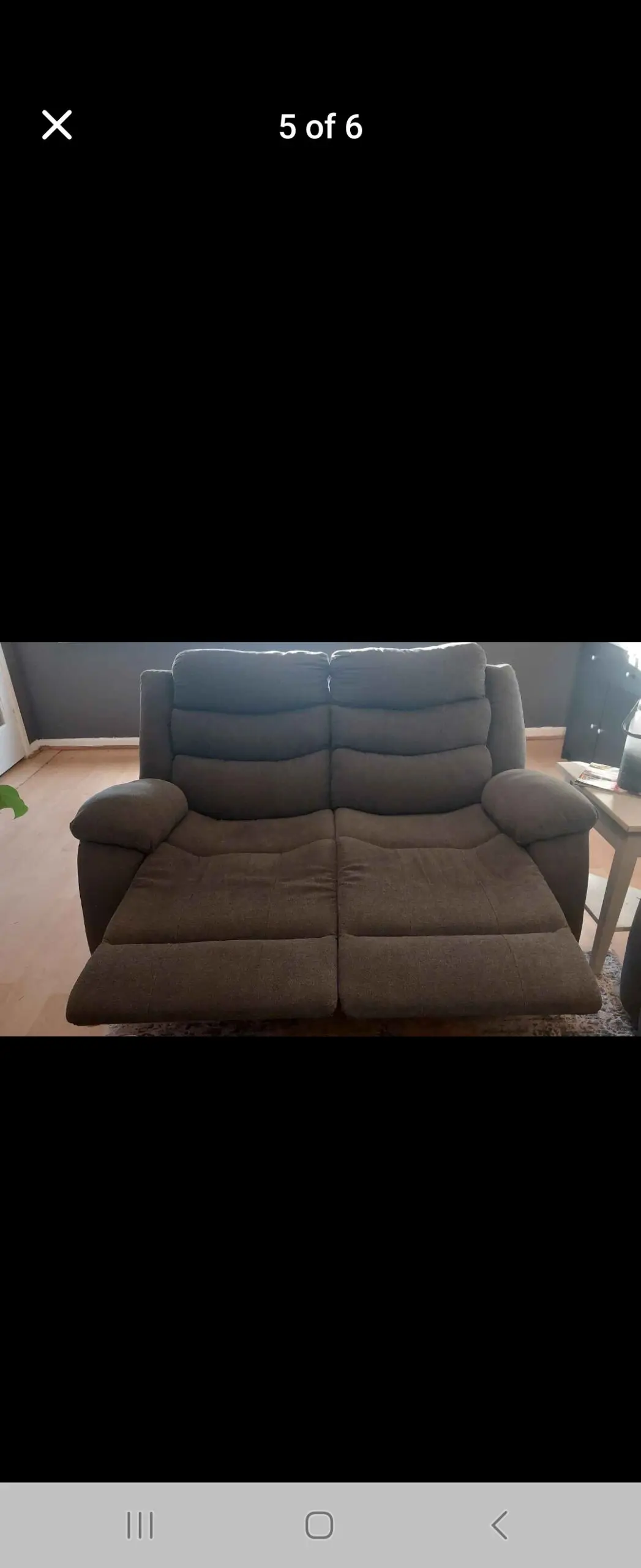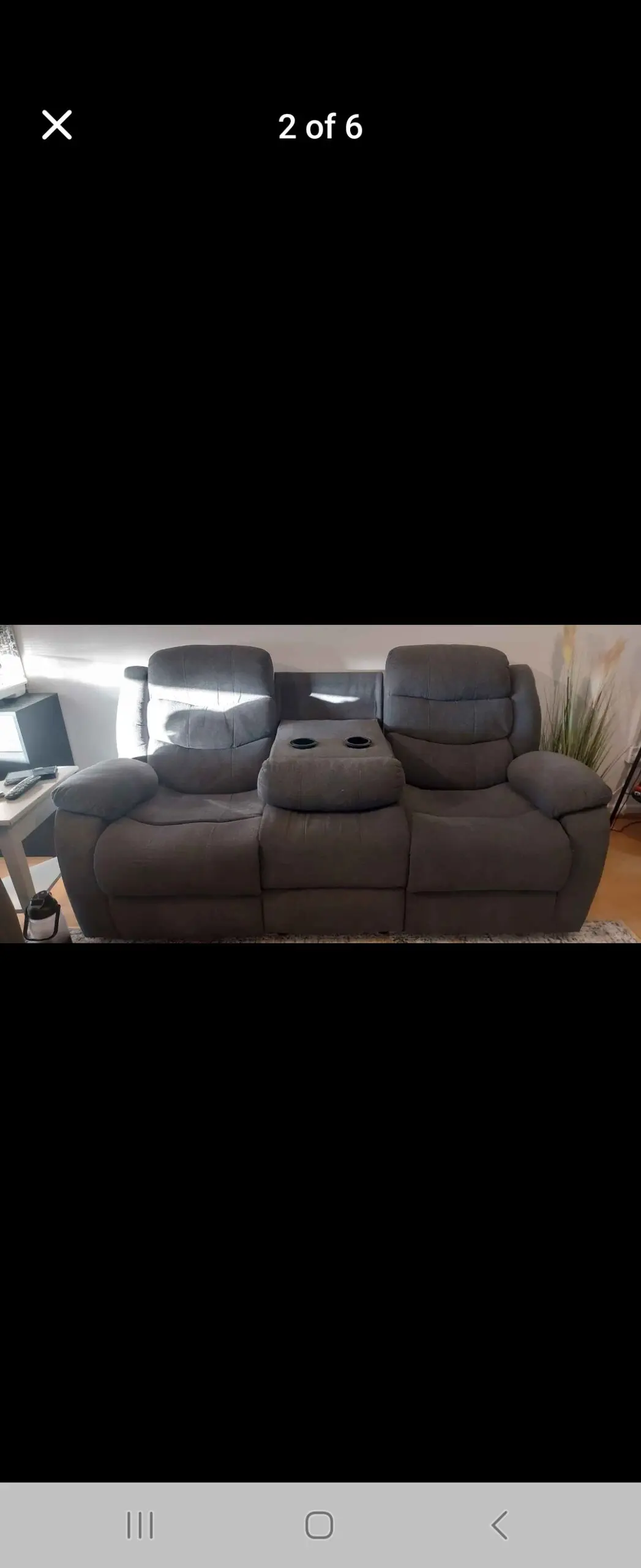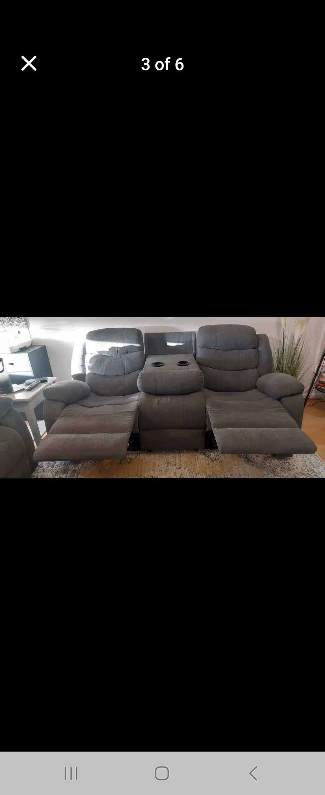 3 seater reclining sofa. Both ends recline with pull down in middle containing cup holders.