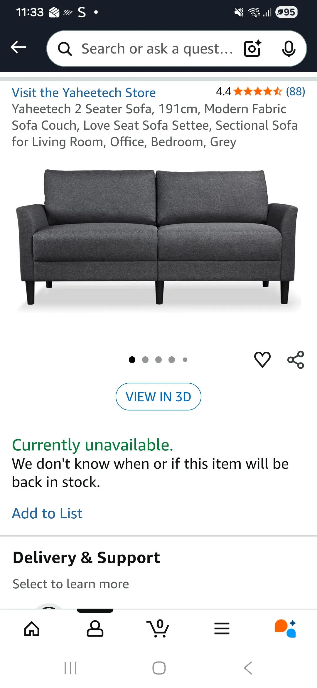 From start to finish this company was amazing. We were unsure about choosing online without trying first so took a chance. We are thrilled with our choice . Delivery was great was in touch with sofalistic all the way. They were fabulous thank you