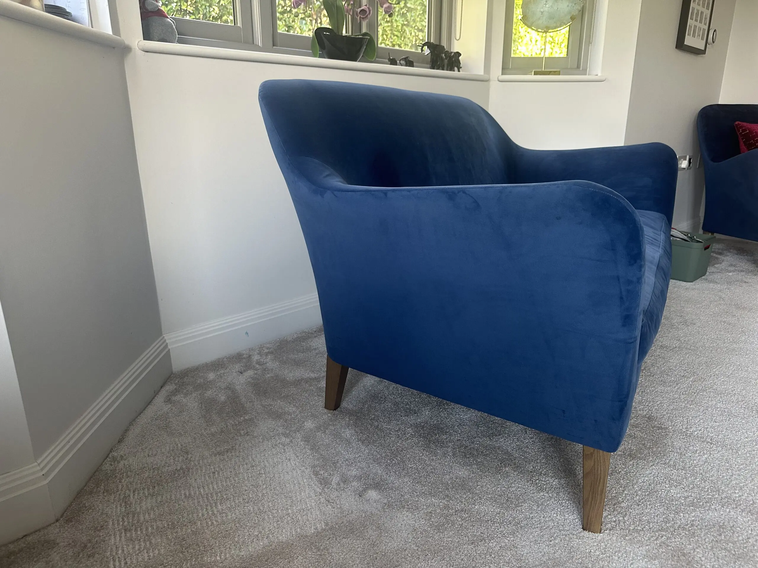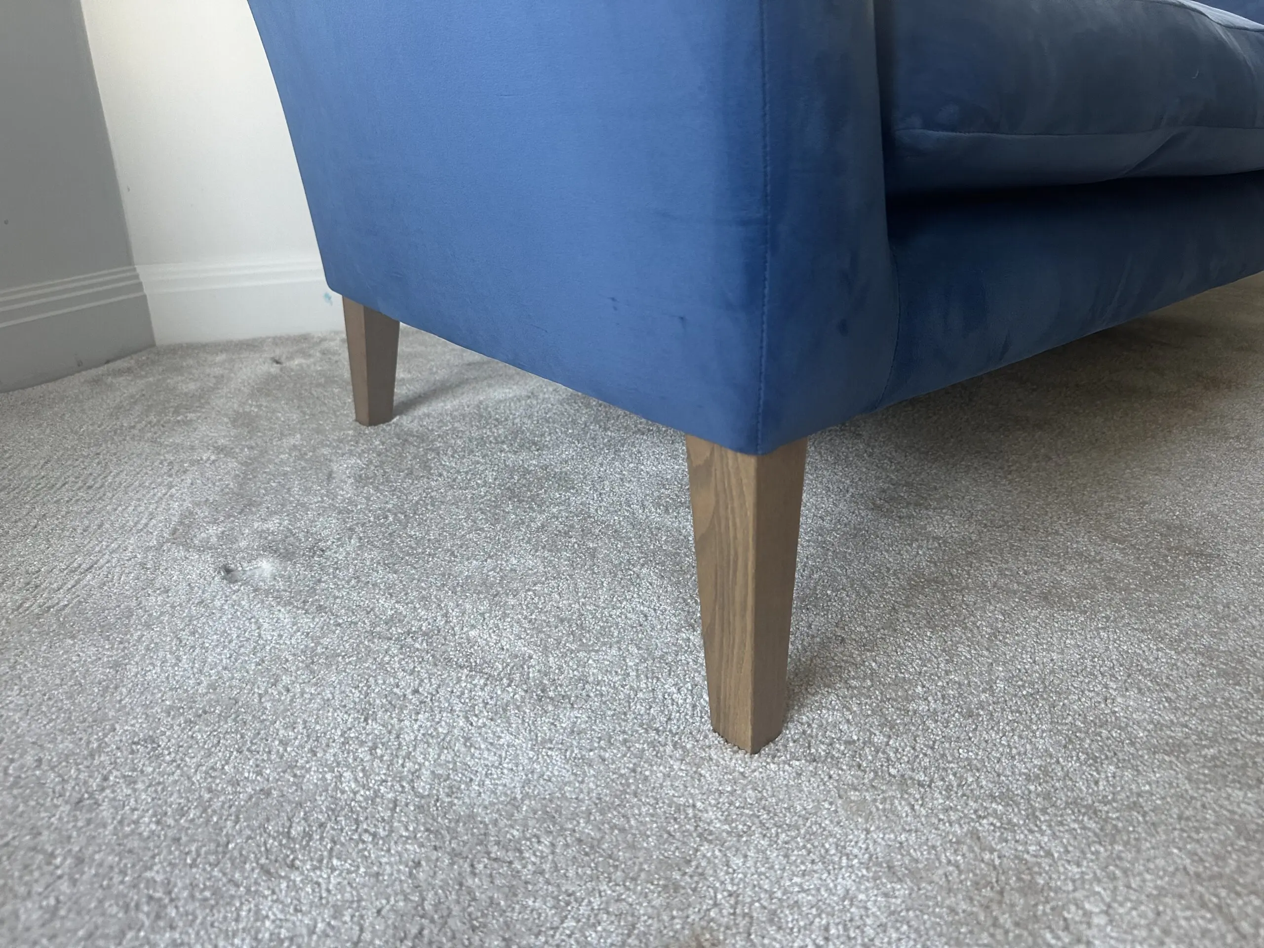Upholstered in stain resistant βSmart Velvetβ. Rarely used in great condition.