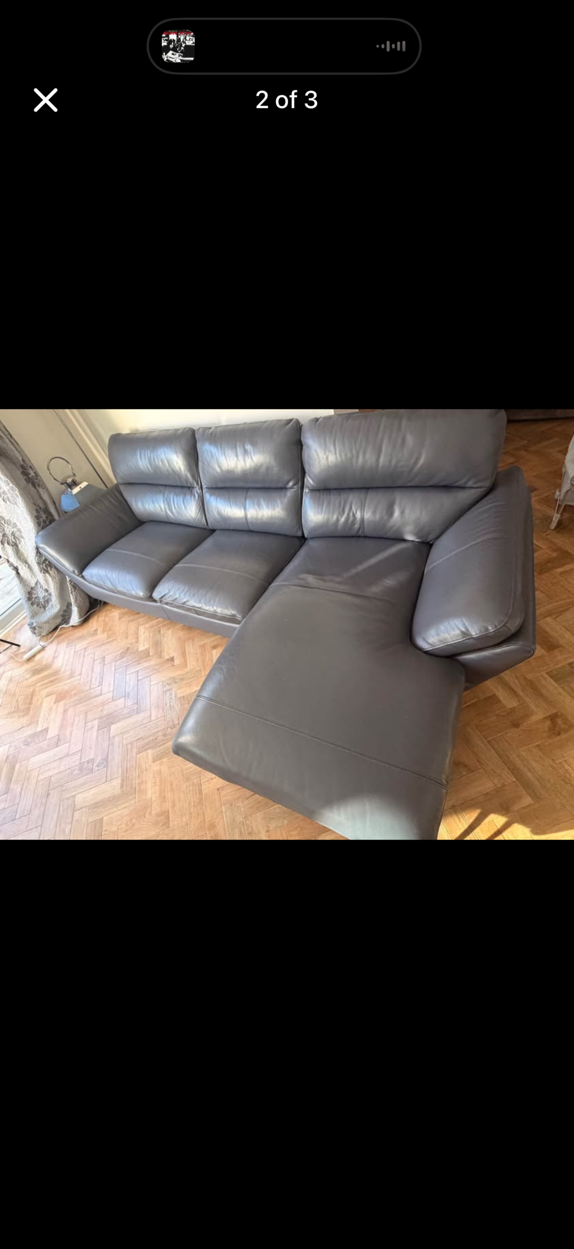Furniture Village Leather Chaise Longue sofa (left side). Immaculate condition. Silver colour feet. Heather colour (blue/grey) . Original price £2,800. Looks brand new. Reason for sale: redecorated lounge to different colour.