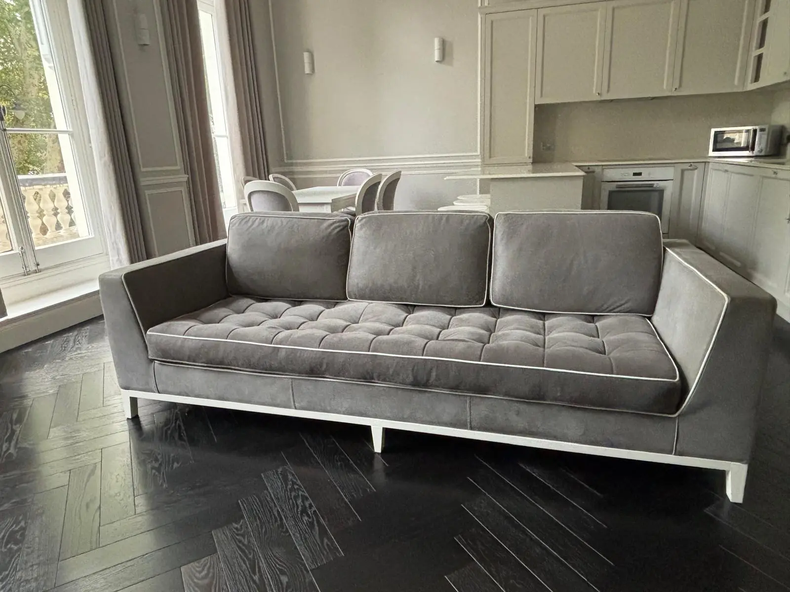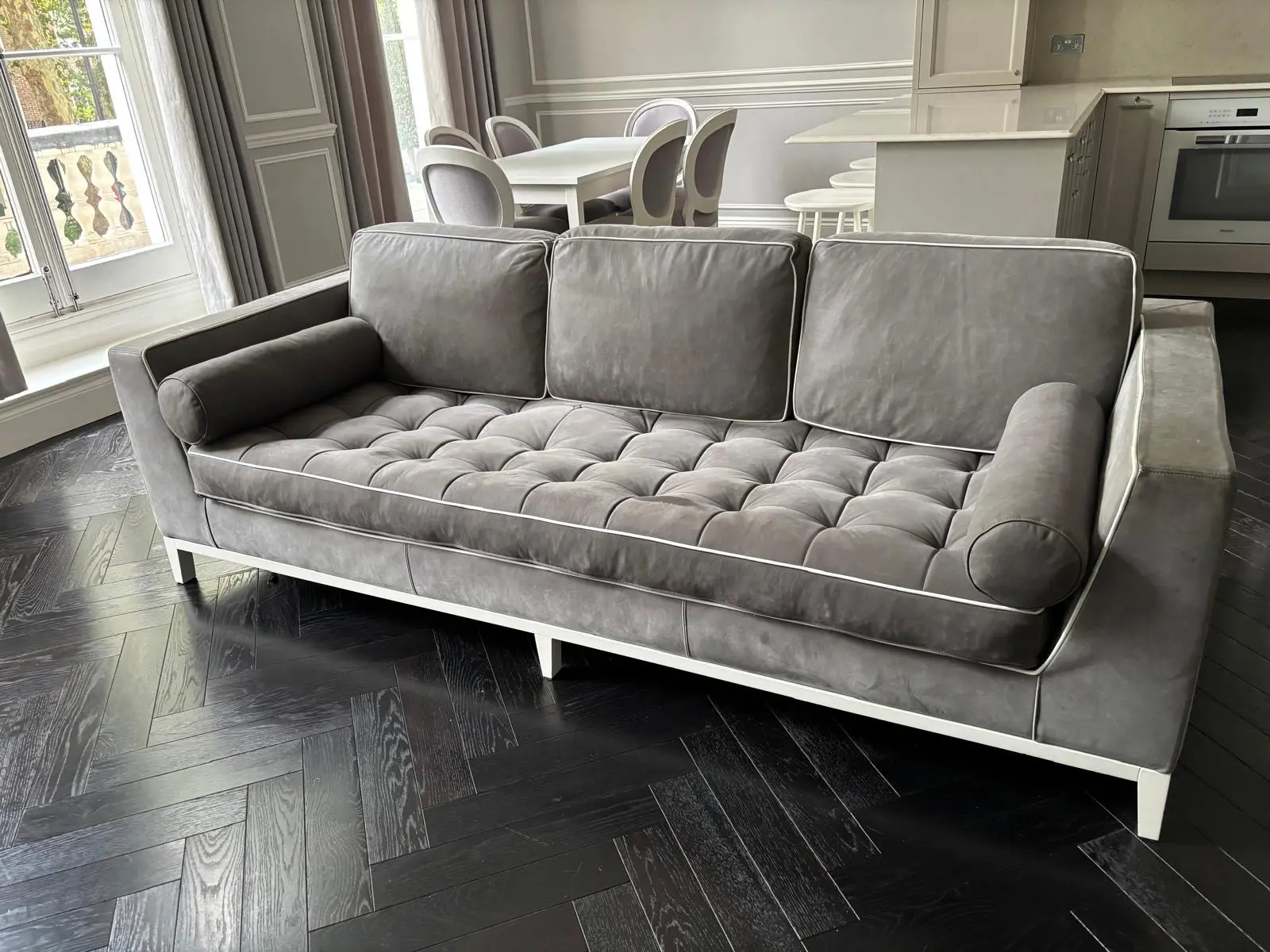 UPHOLSTERY: full grain leather in Elephant grey + piping in full grain leather white 4300