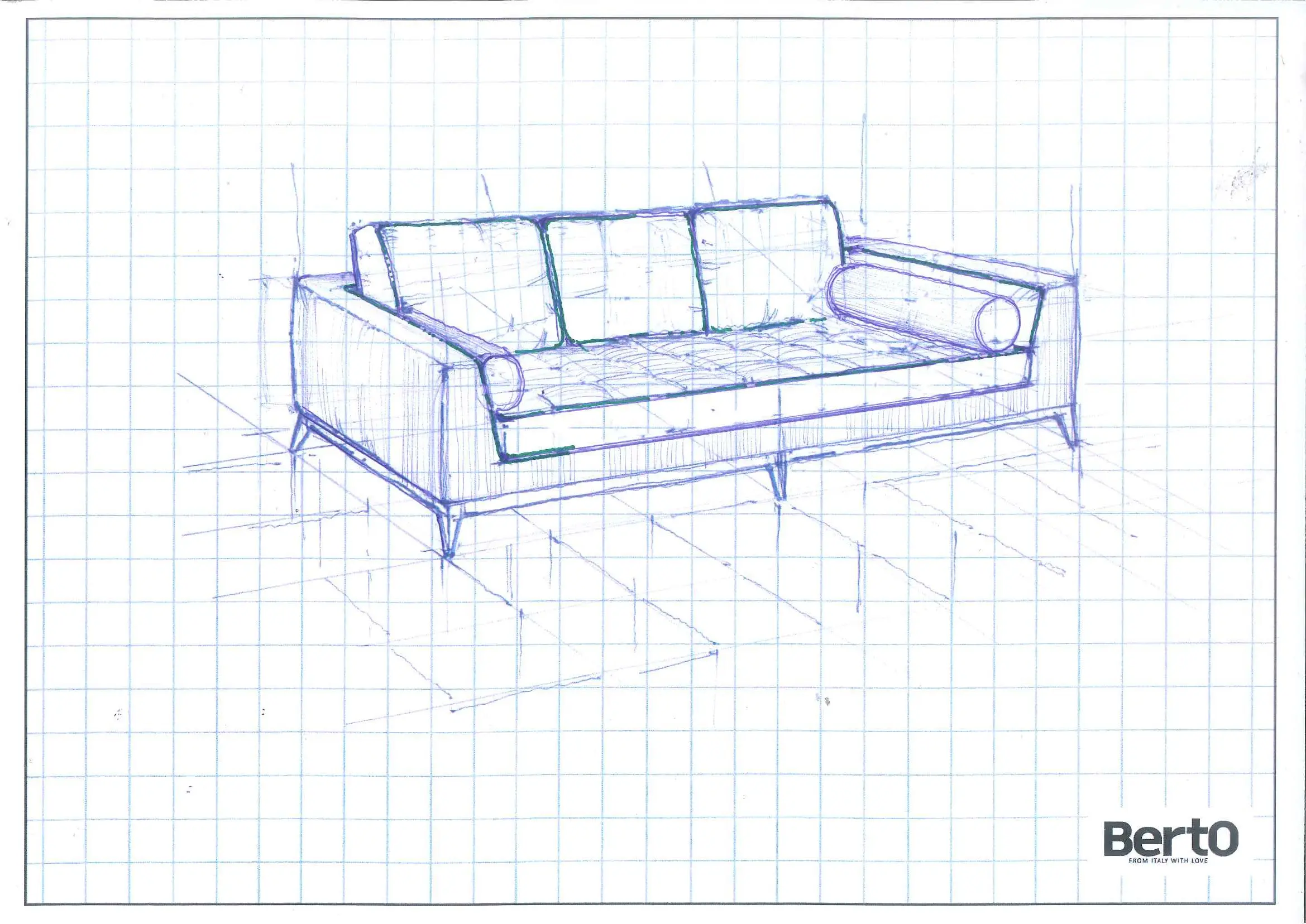 A high quality bespoke sofa made in Italy by Berto Salotti, modelled off a B&B Italia sofa (similar to the current Charles sofa).