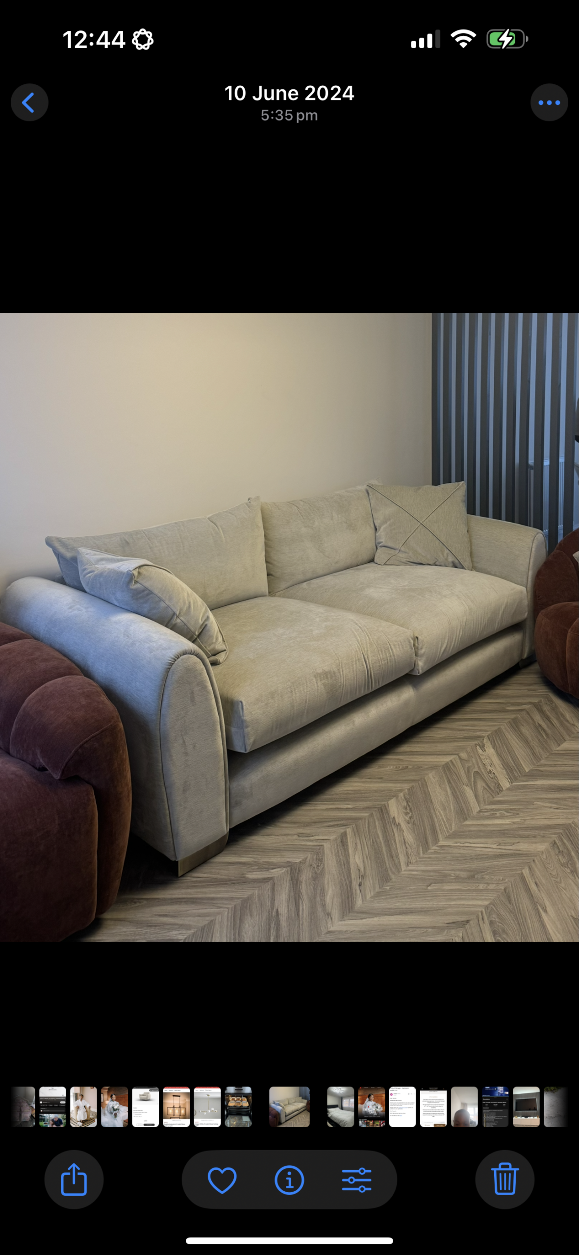 The sofa is very high quality and we are selling it because it doesn’t fit our living room space. It comes with 4 cushion pillows same color as the sofa.