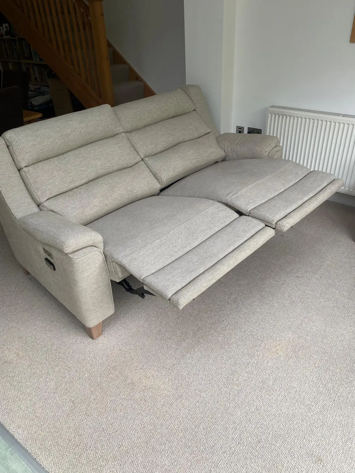 The sofa comes from a smoke and pet free home and has had little use due to a relative moving to care. The sofa is less than year old and is in as new condition.
