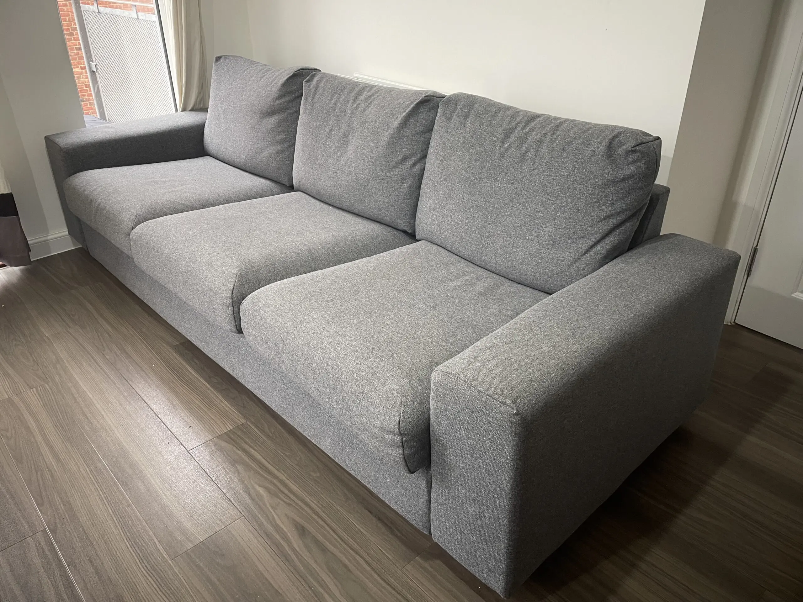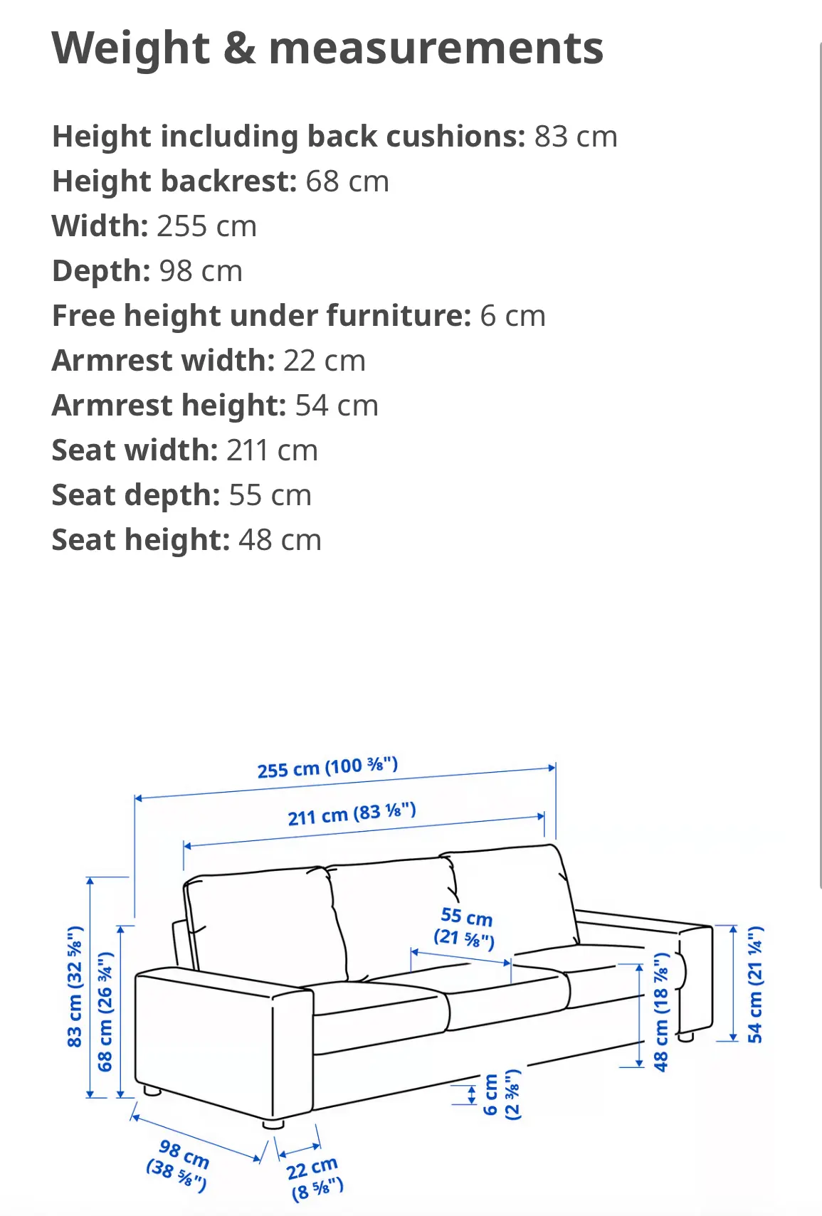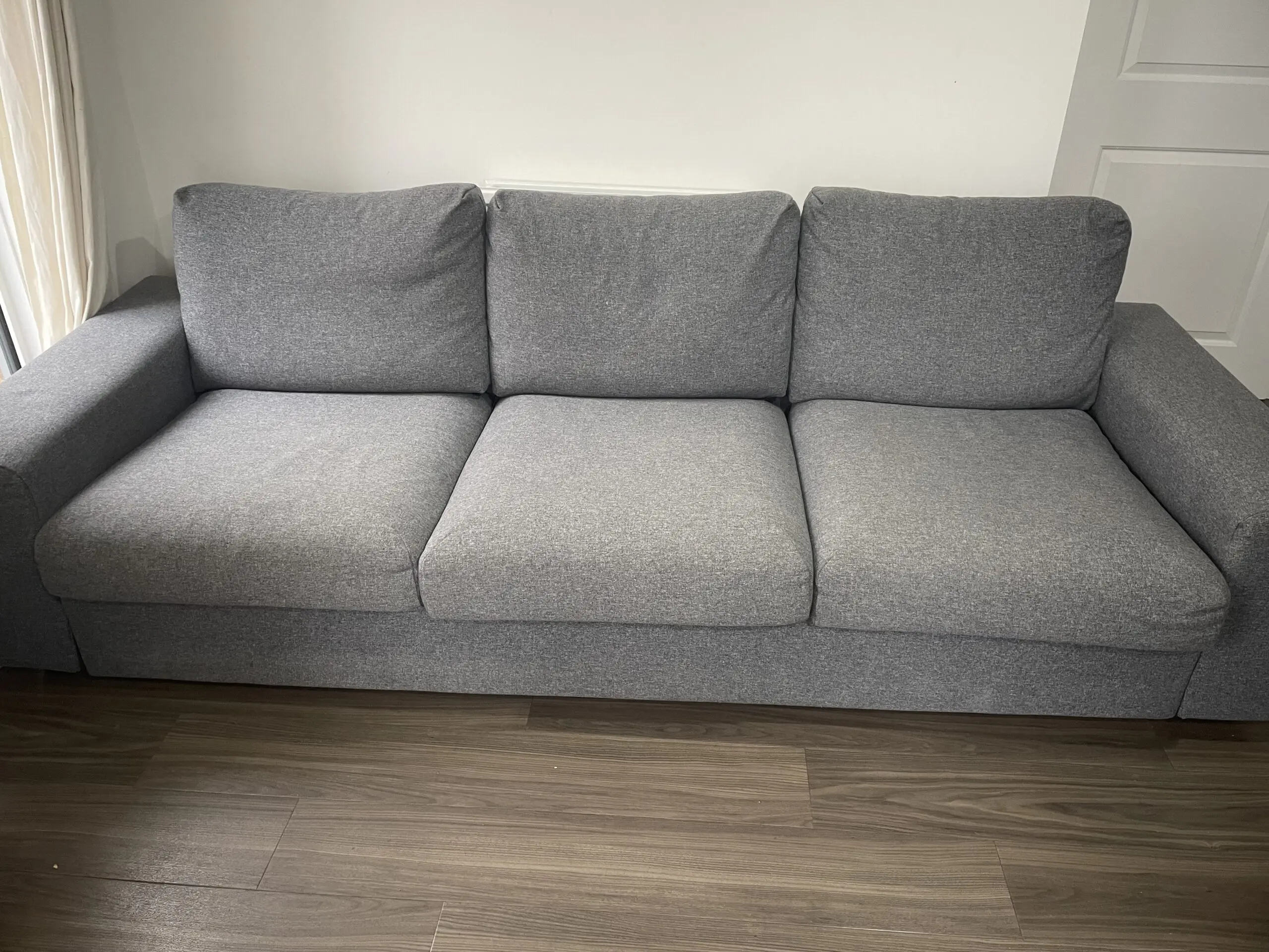 Ikea VIMLE 3-seater sofa in Grey color with wide arm rest. Really comfortable and spacious. Washable covers. Dimensions in the photo.