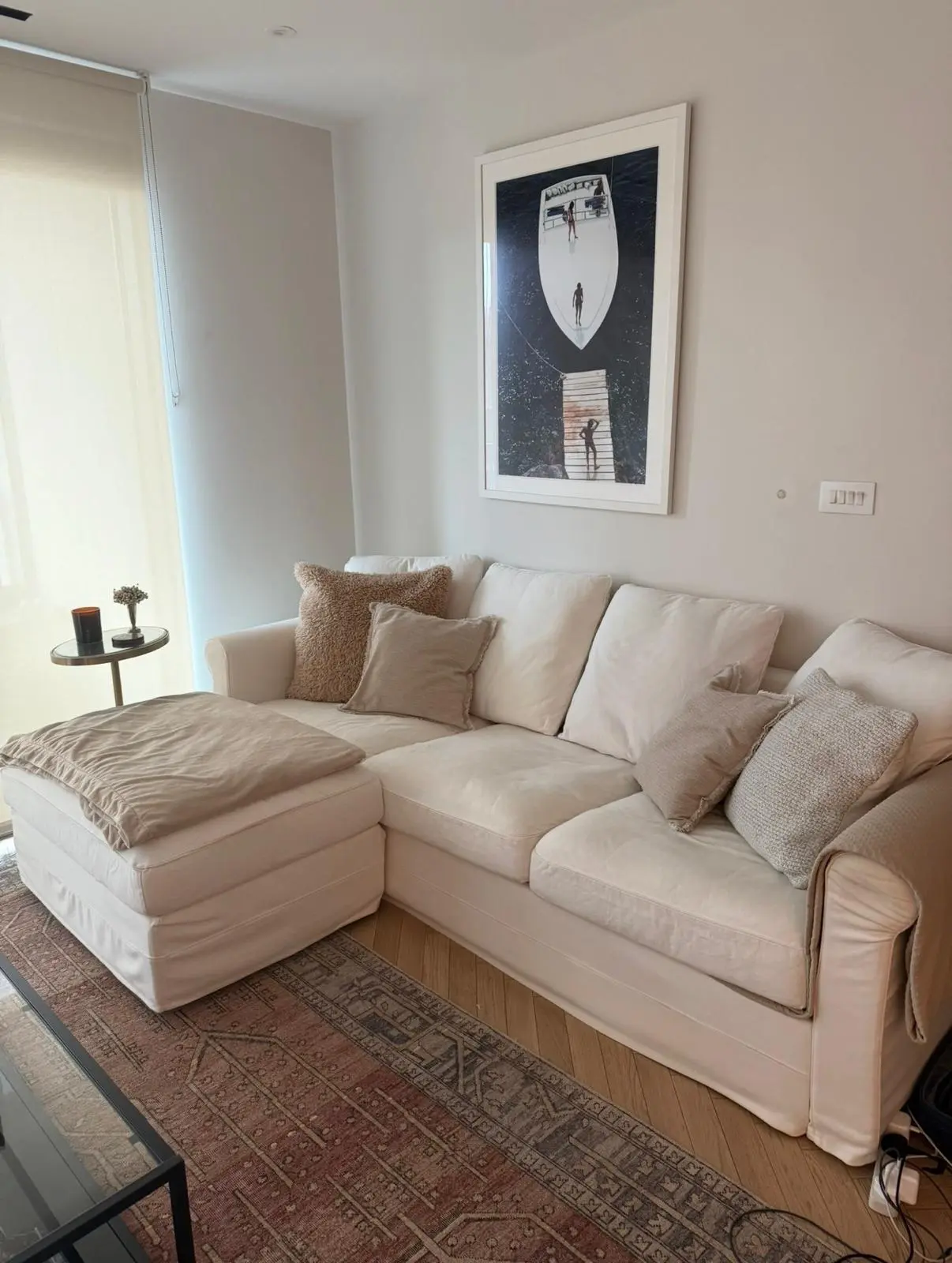 Popular and stylish IKEA which they no longer sell and in demand. Also comes with ottoman pouffe which means you can have the flexibility of turning it into a chaise long