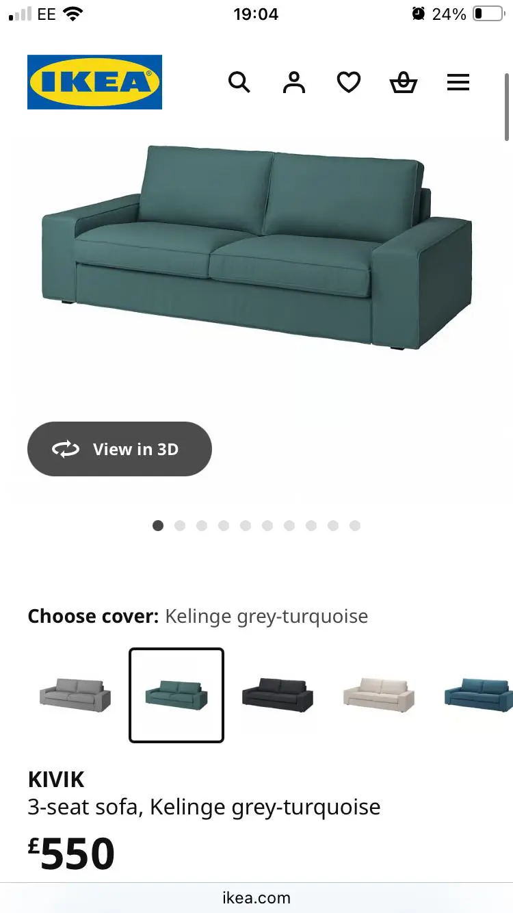 Ikea Kelinge Grey Turquoise 3 Seater Sofa