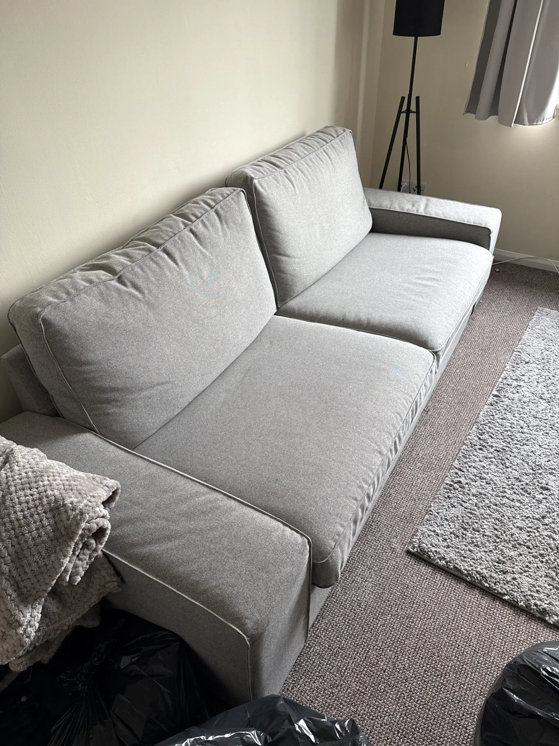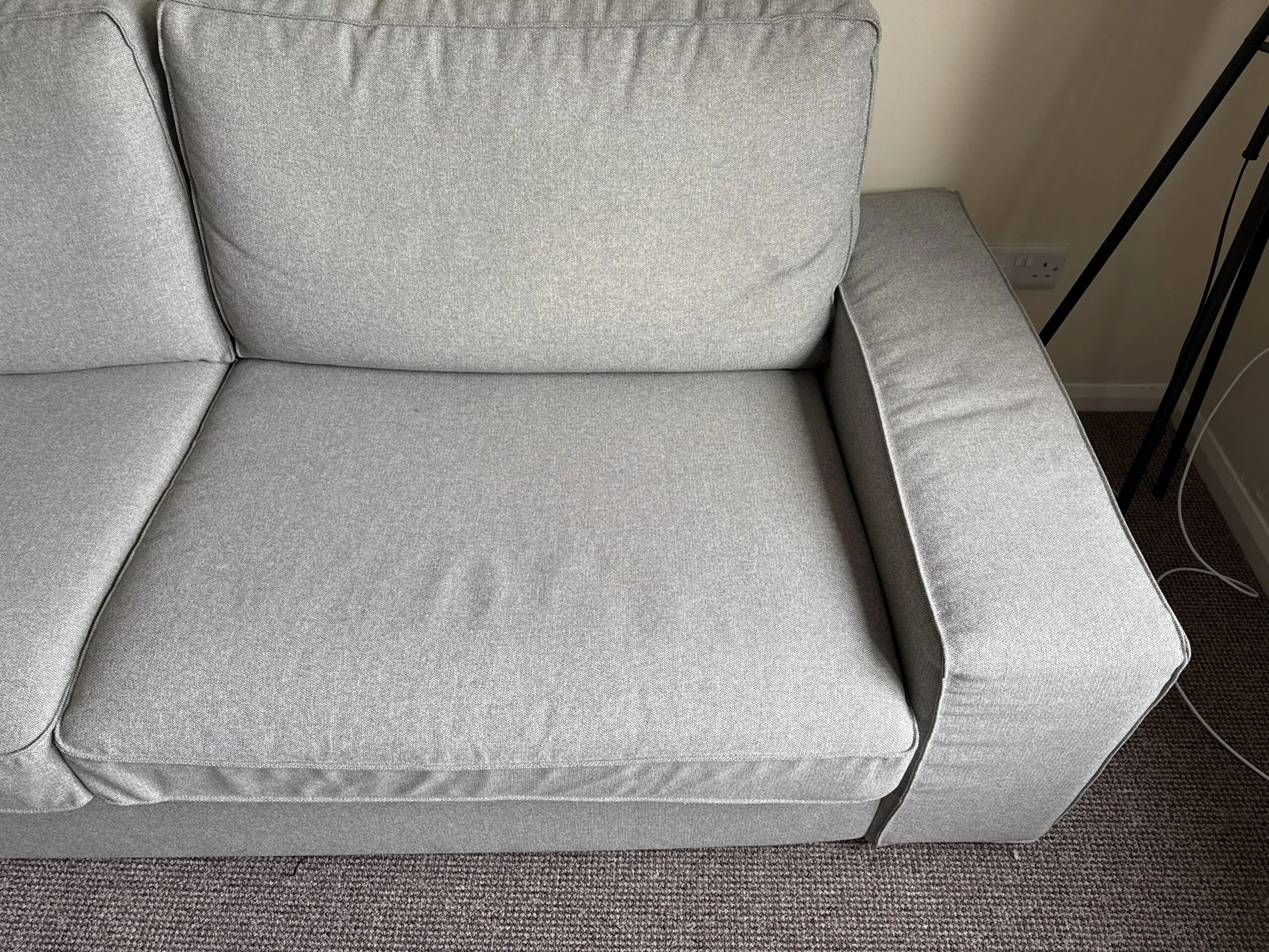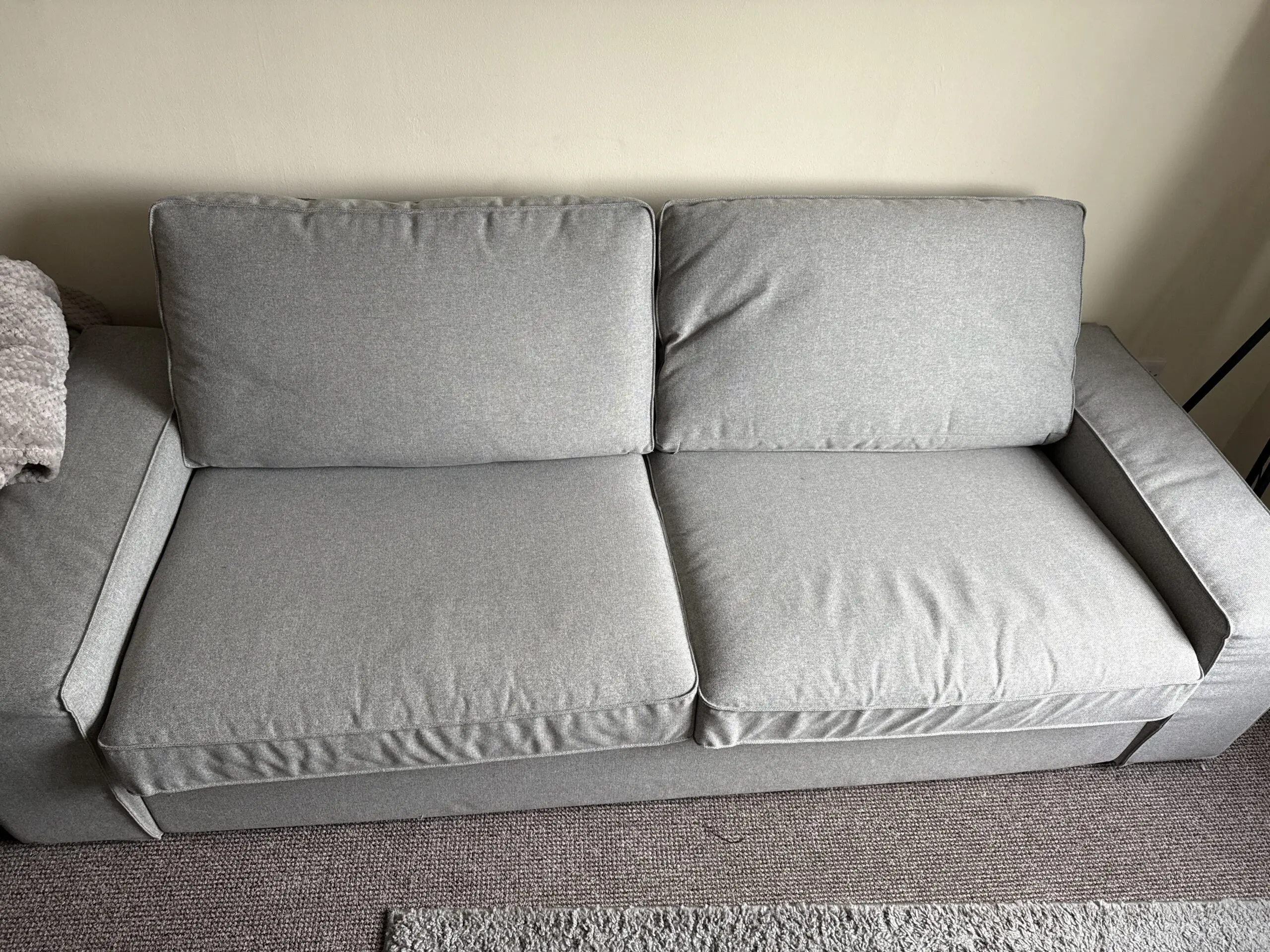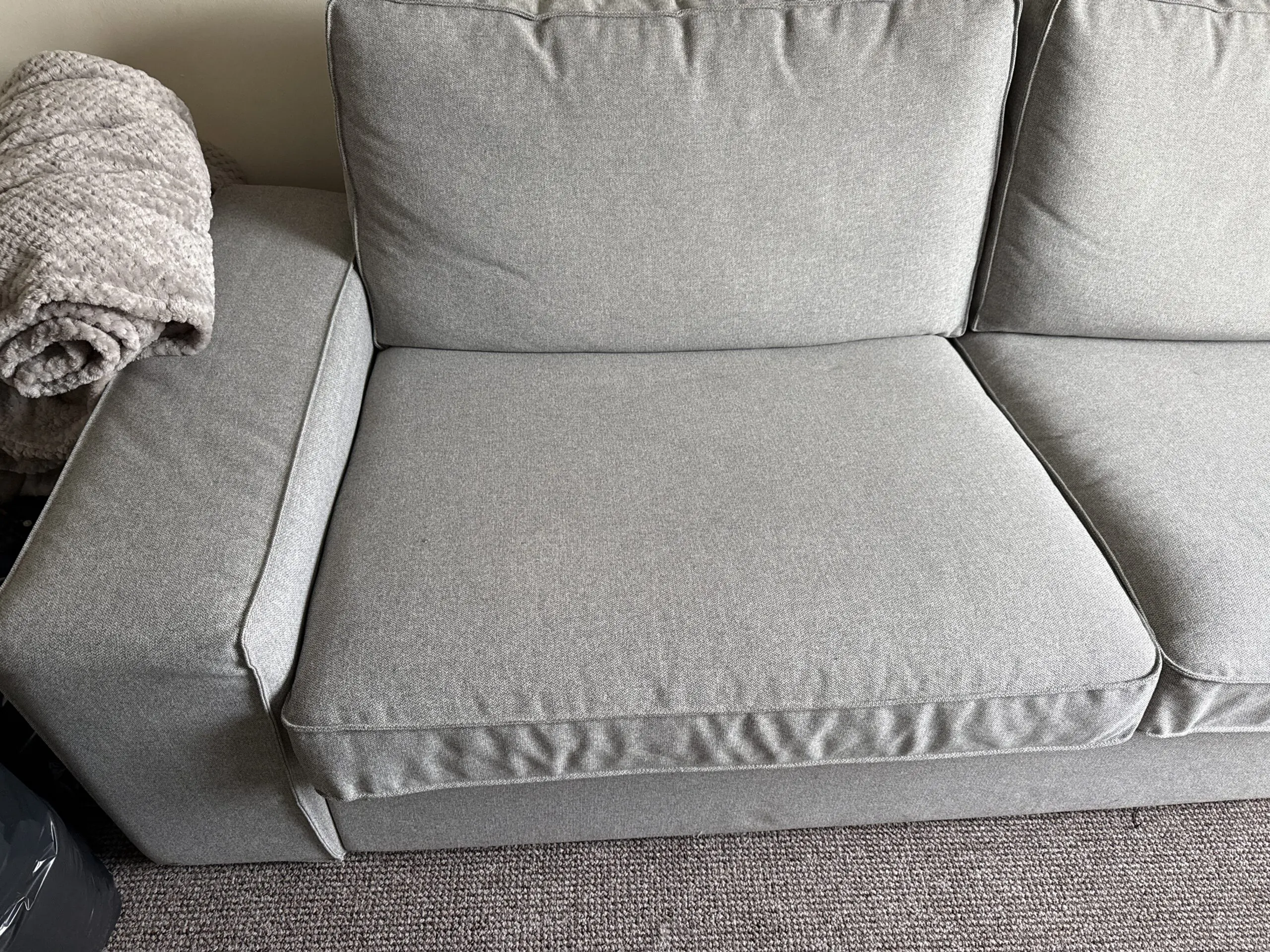 This sofa from IKEA is in really good condition and is a very comfy sofa. The covers come off easily for washing. There are other colour covers available from IKEA should you want to change the colour.