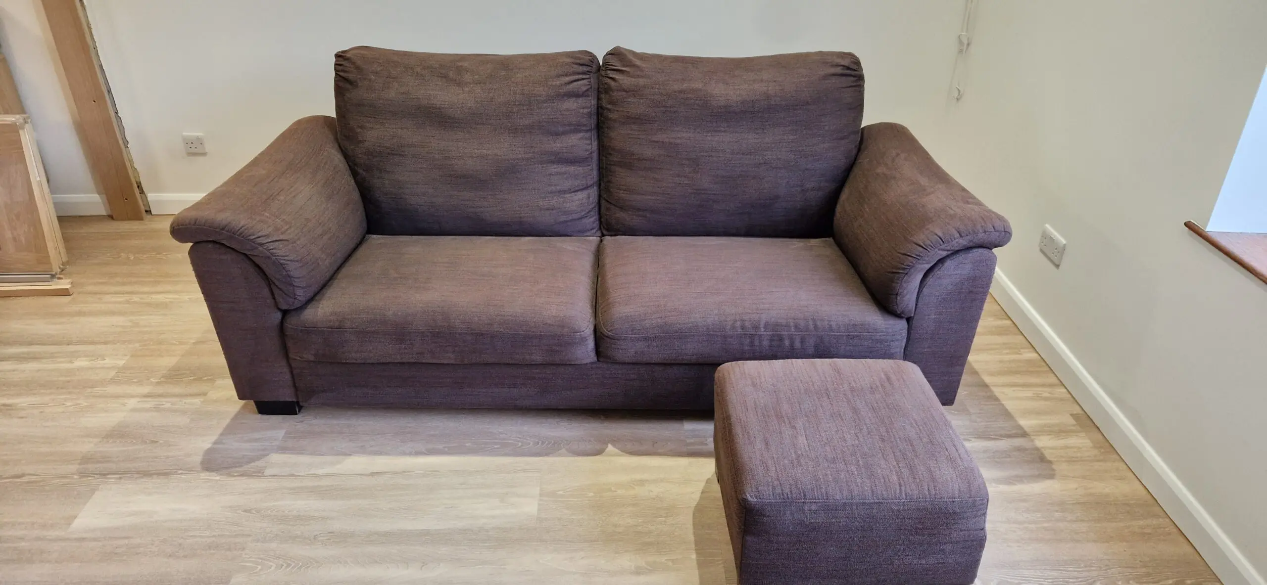 Brown 3 seater Ikea sofa with footstool. Great condition, professionally cleaned.