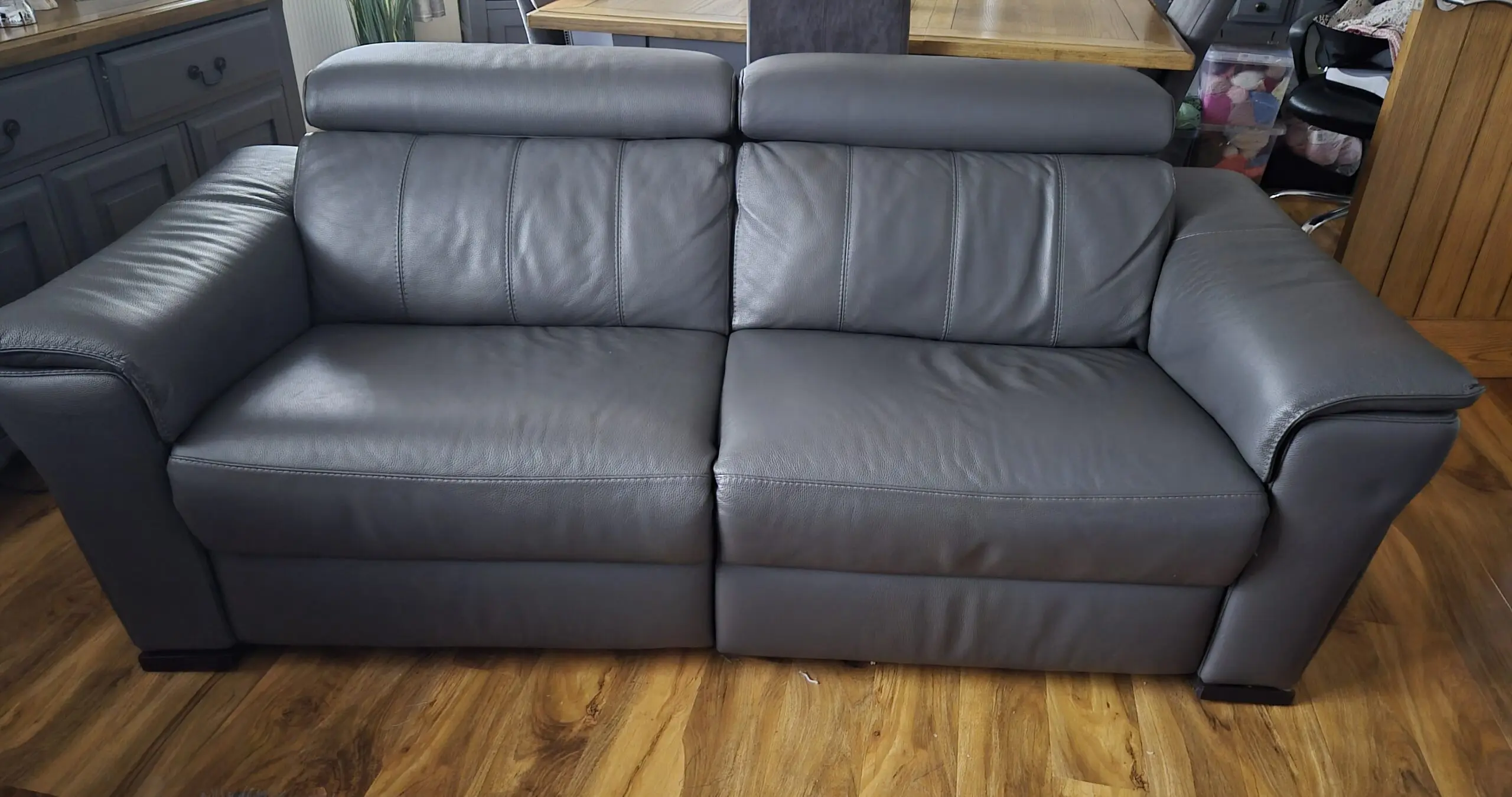 Hand stiched, italian leather sofas, fully electric recliners with adjustable headrests.