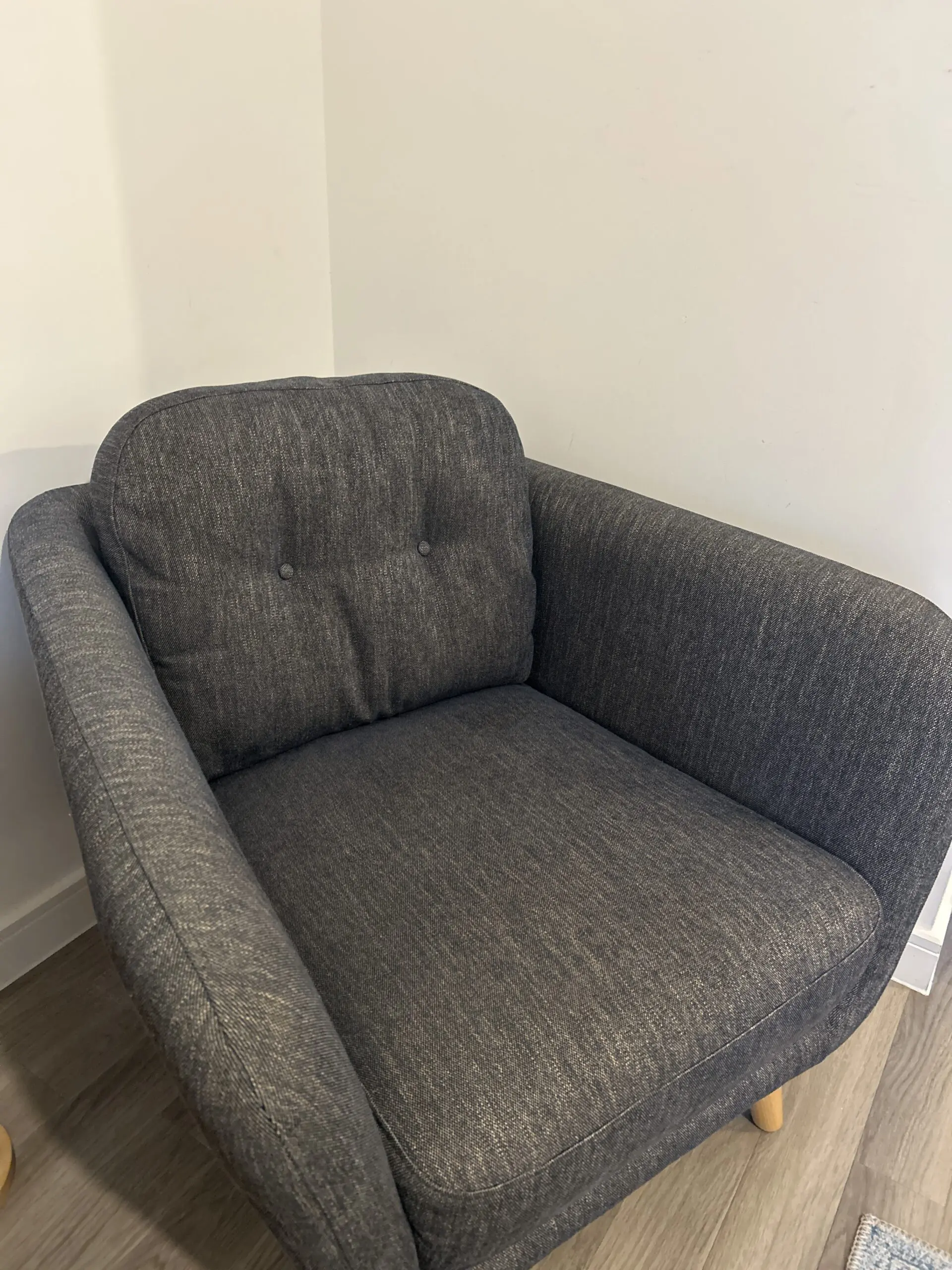 Selling my 4-year-old John Lewis sofa in dark navy (Erin Midnight) with matching chair