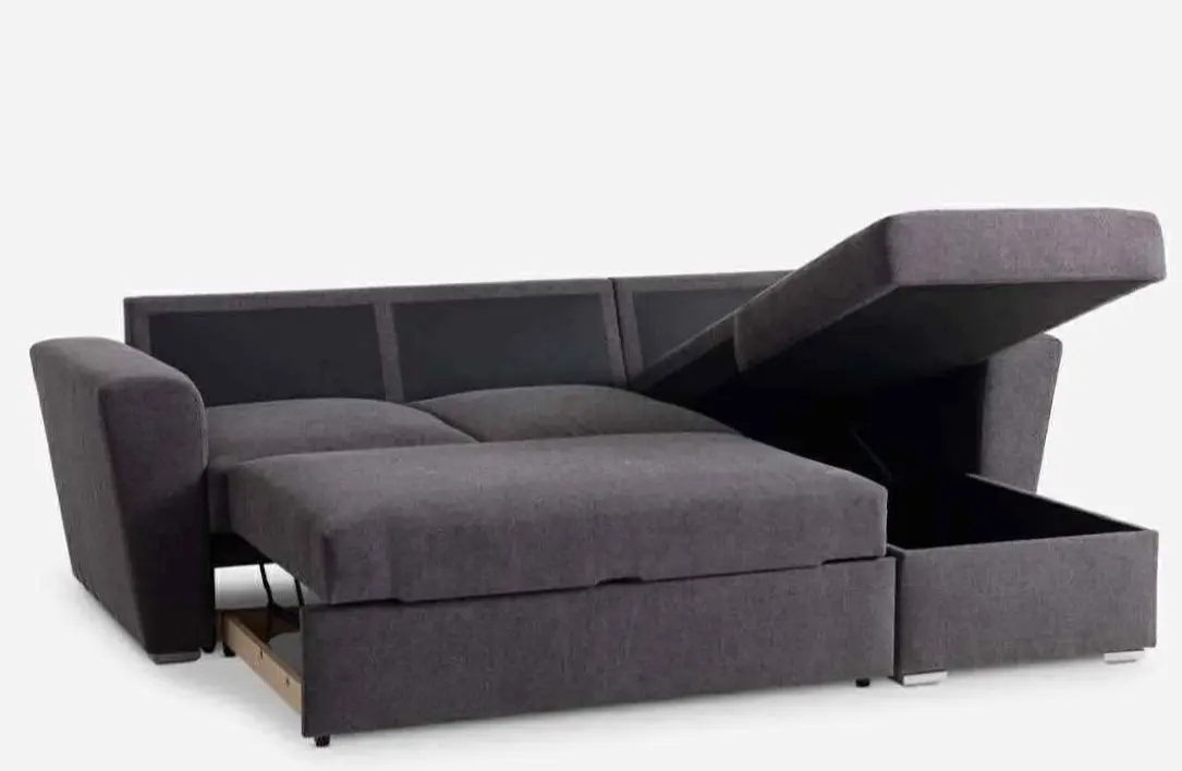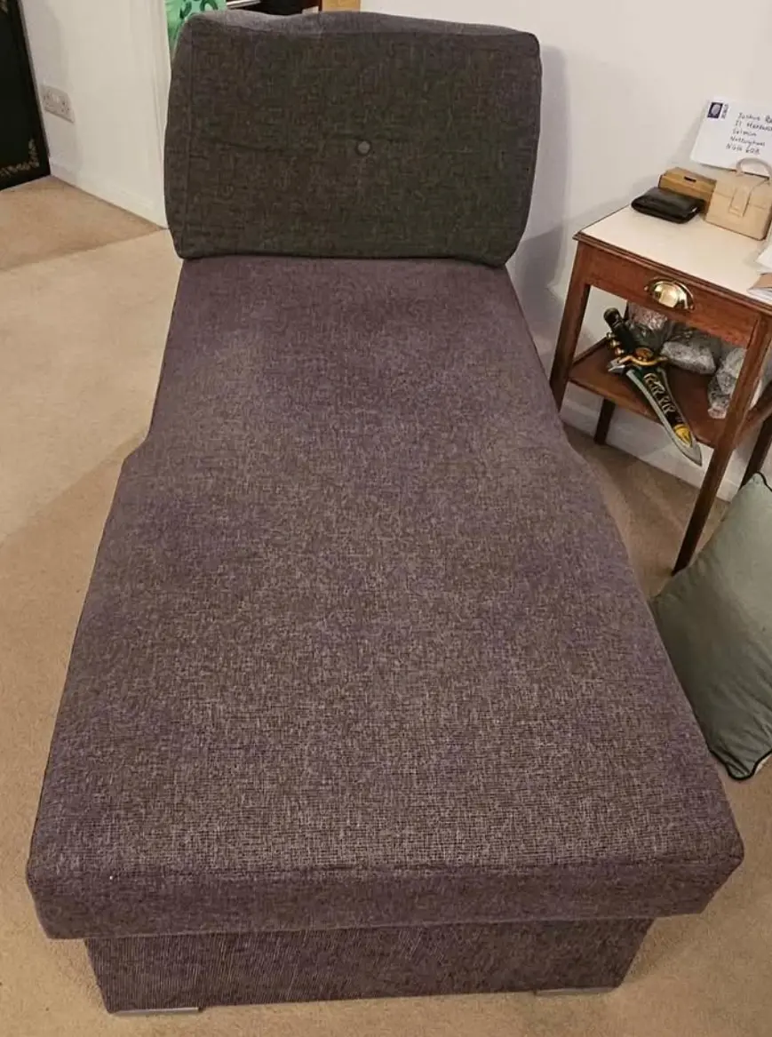 The chaise lounge is currently not attached to the sofa, under the chaise lounge is decent sized storage area