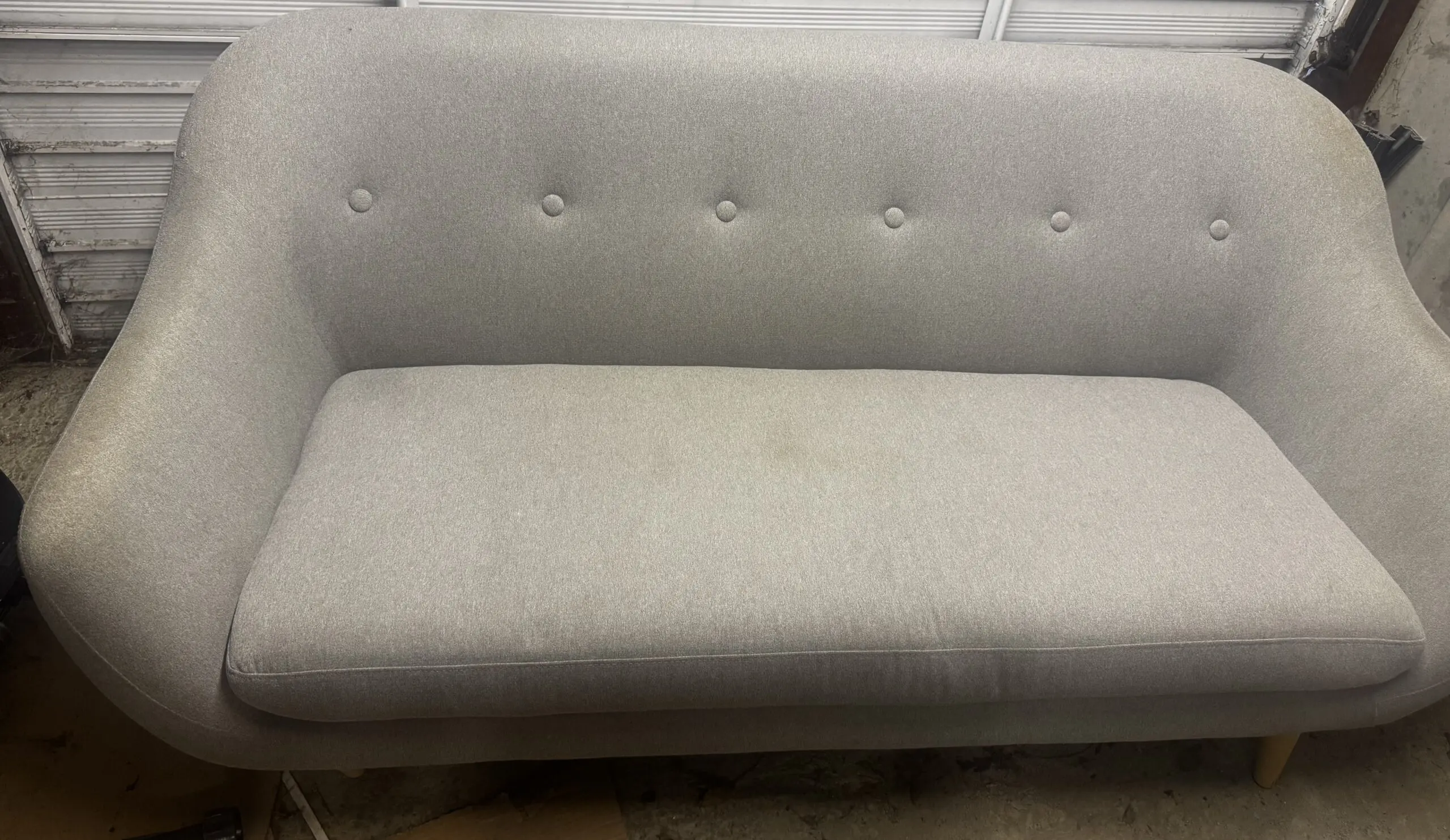 Seat and back cushions in foam. Legs in solid wood. W170 x H82 x D81 cm