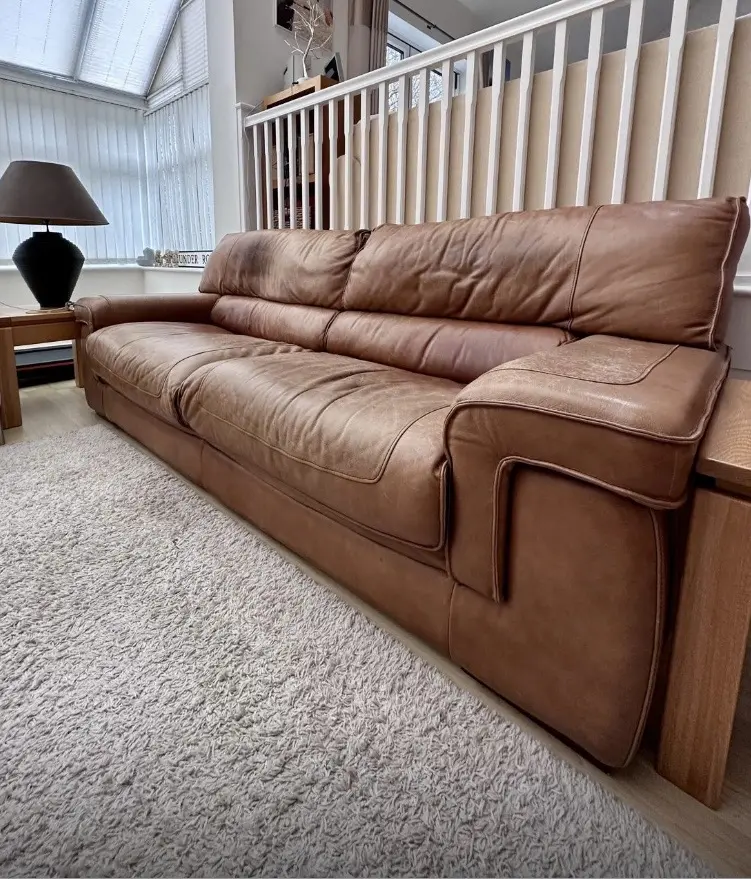 (Please also see my listing for 2 seater). This sofa is well used and loved but still in serviceable good condition. Perfect for living room, den or man cave. High quality make which has stood the test of time.