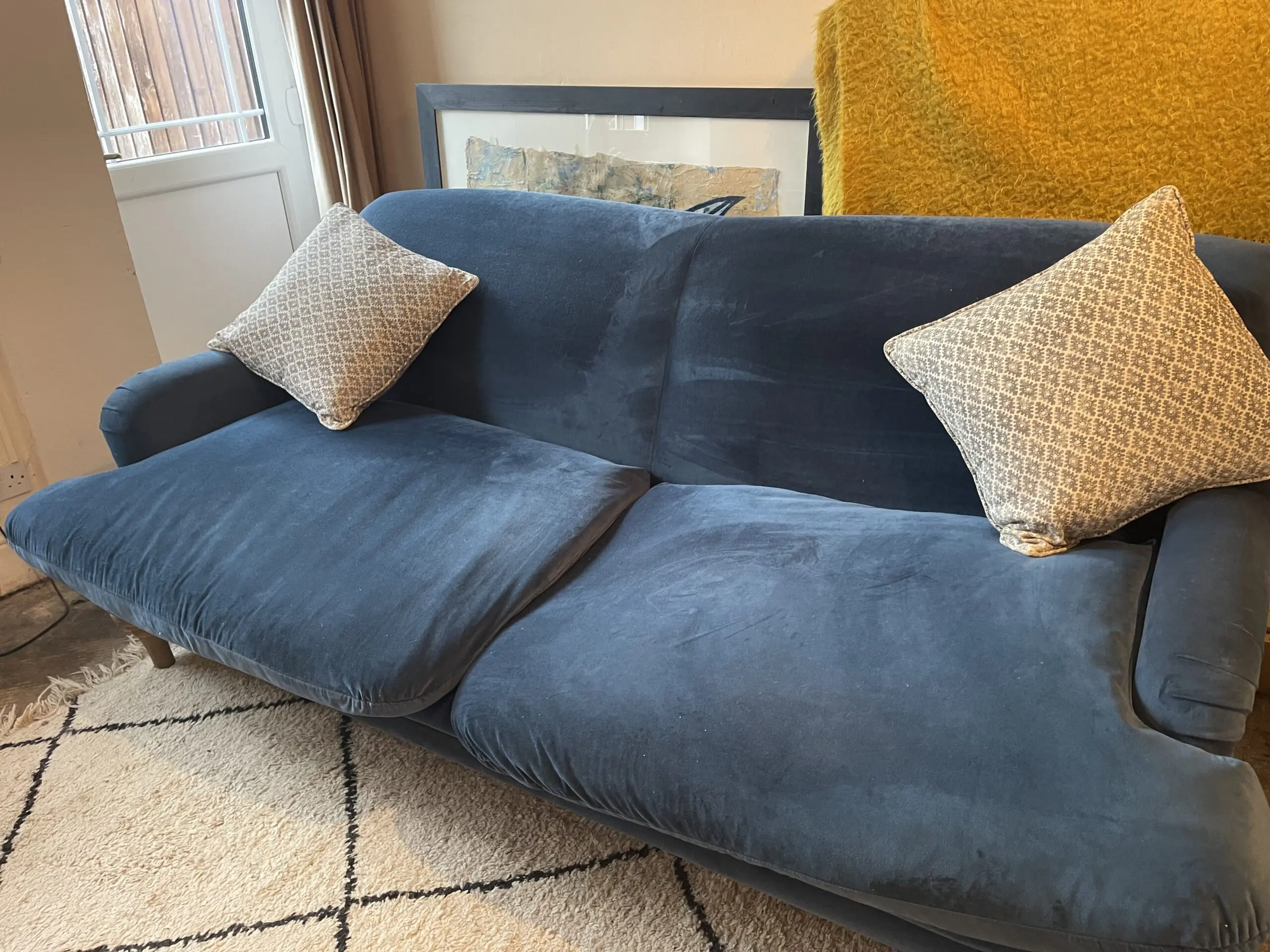 Elegant 3 seater sofa ,in excellent clever velvet .Although I have a small Cockerpoo she is not allowed on the sofa!