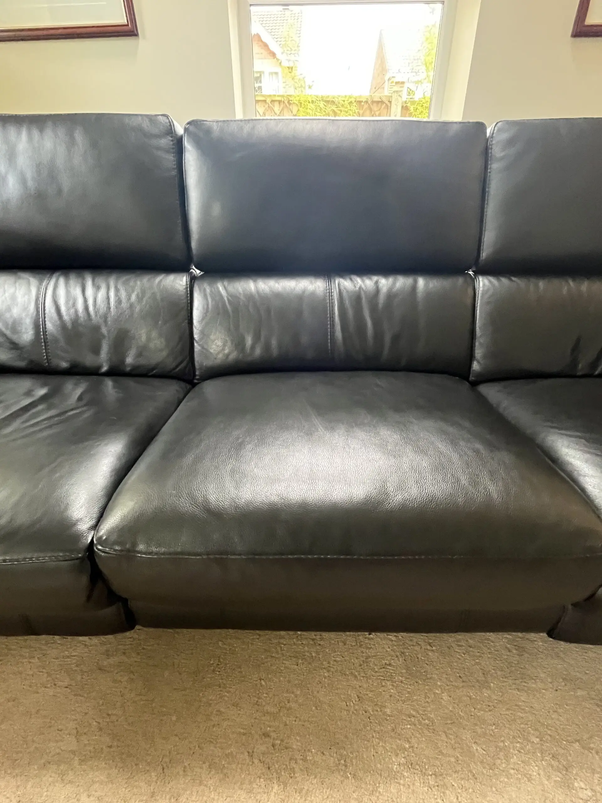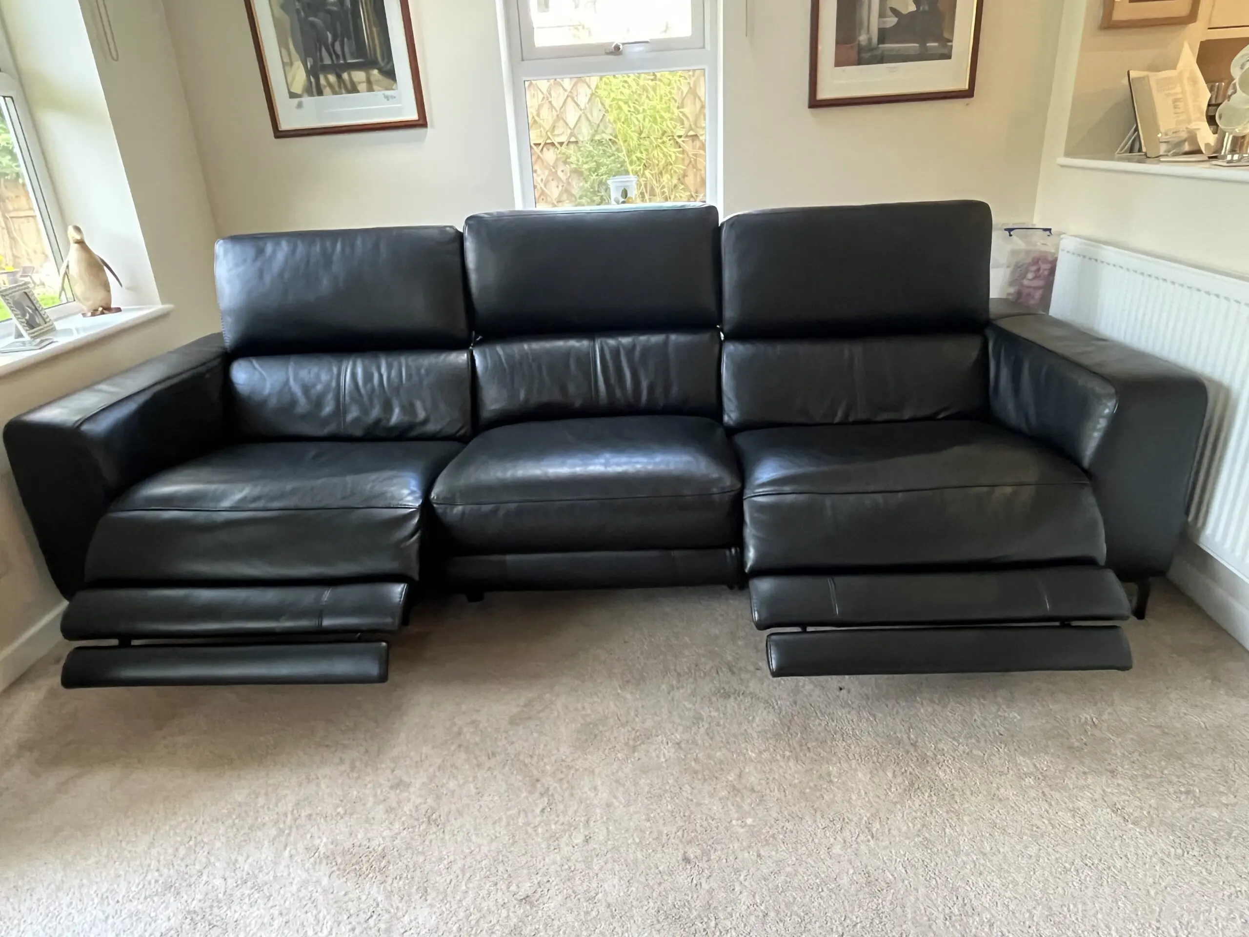 Purchased January 2023 costing £2400. Beautiful very large and comfortable 3/4 seater leather sofa. End seats recline with a touch of a button. Adjustable head rests across all the seats. Absolutely fantastic condition. Few very slight scratches. Original invoice to view if required.