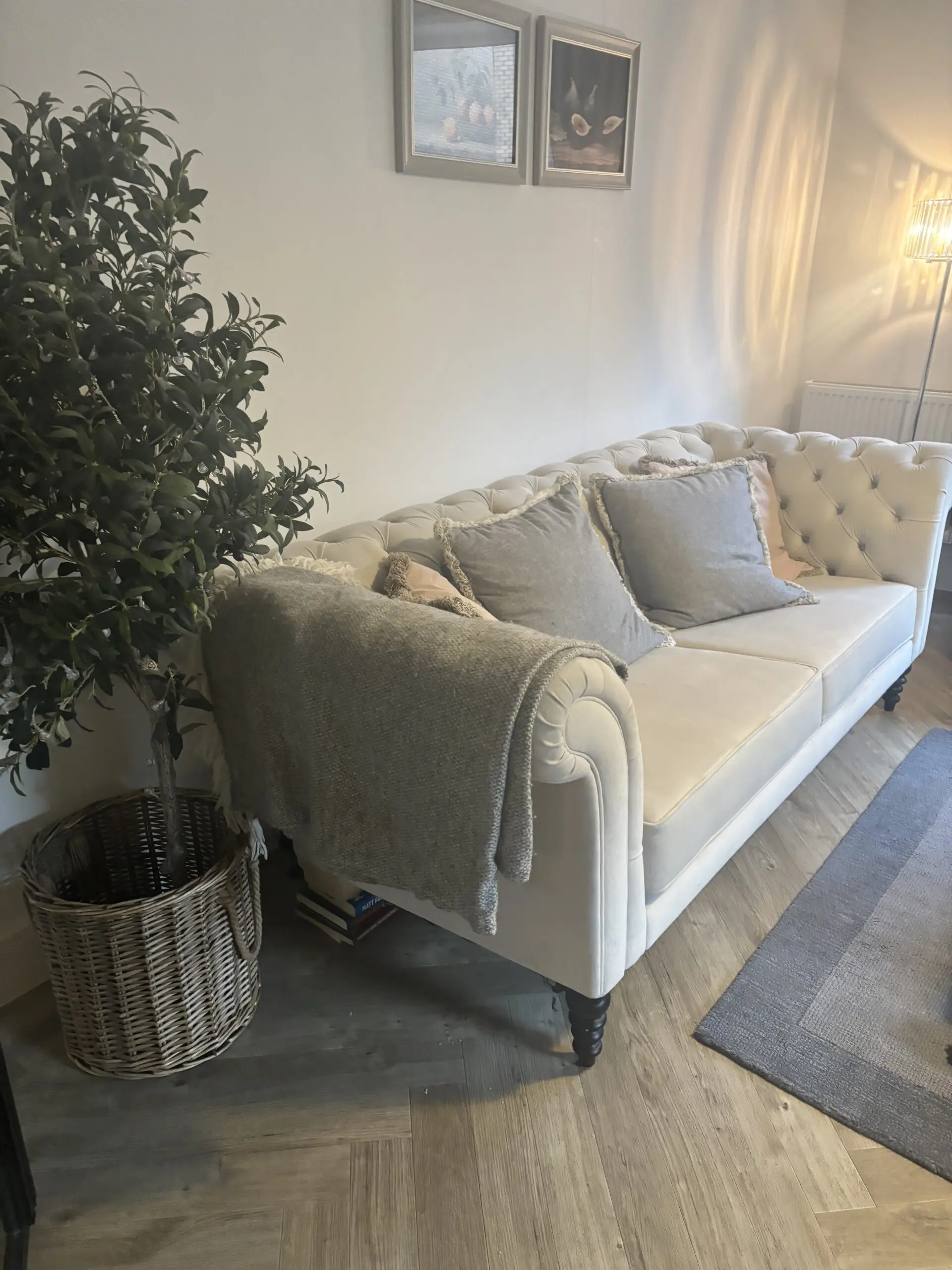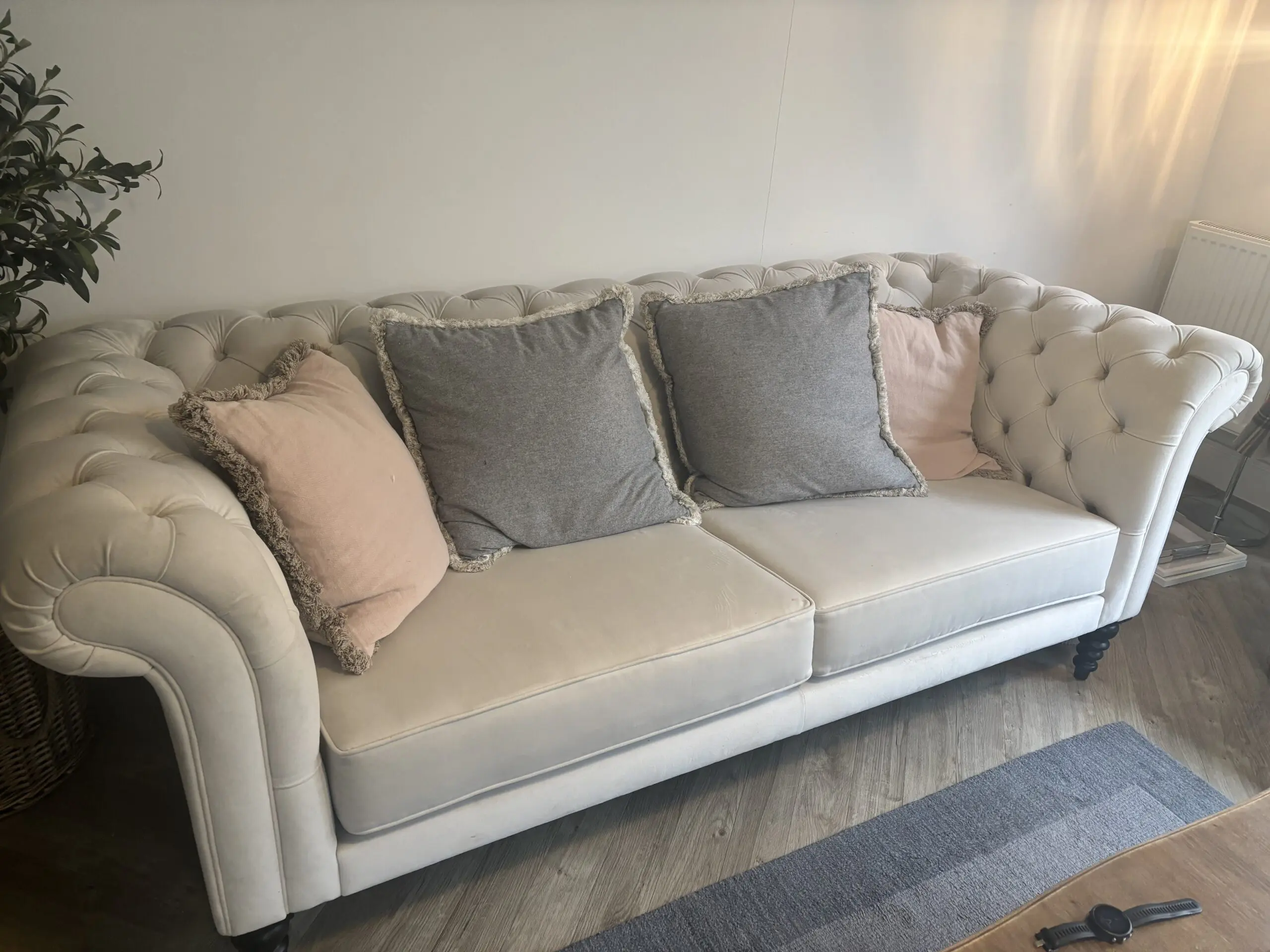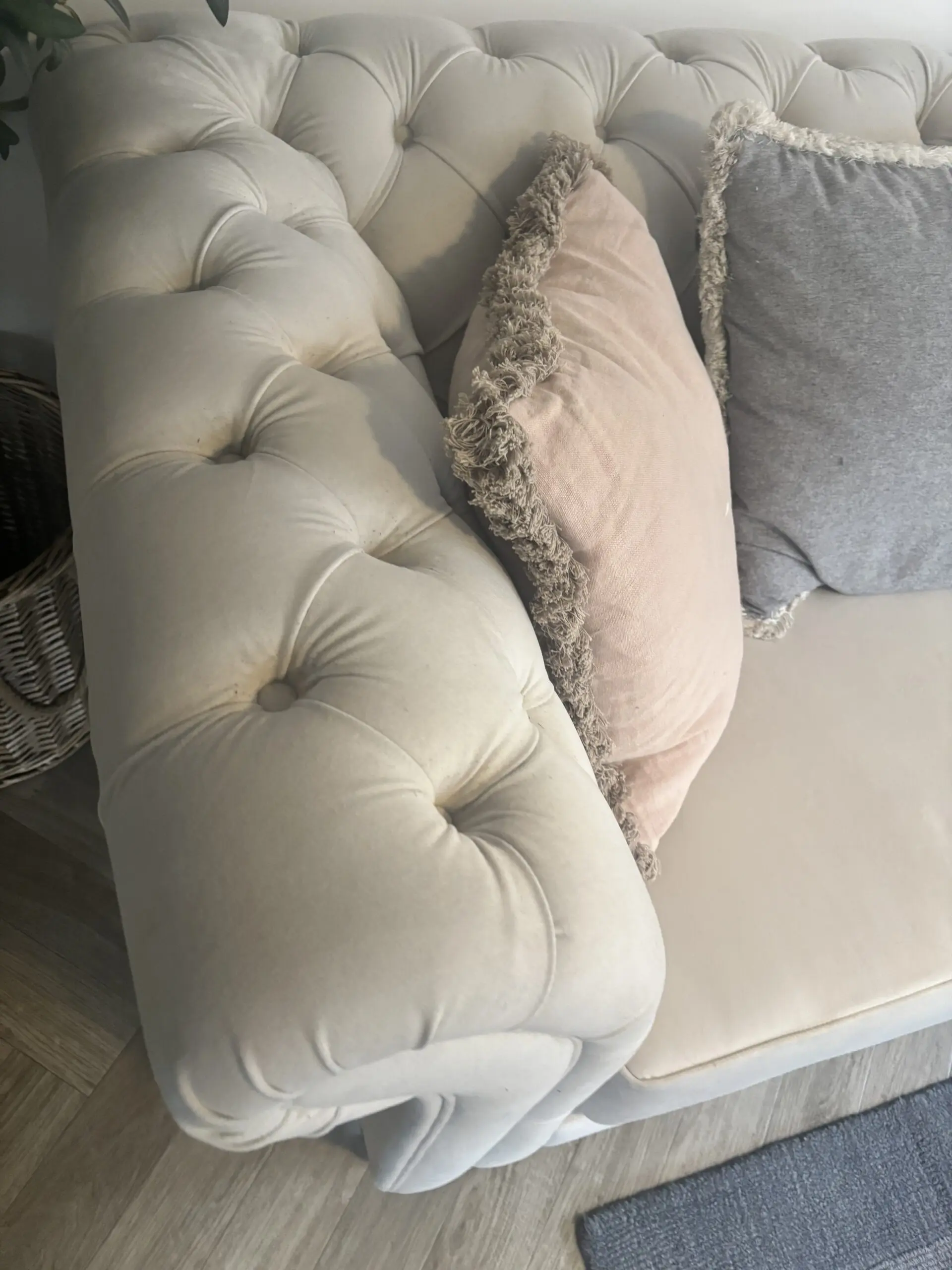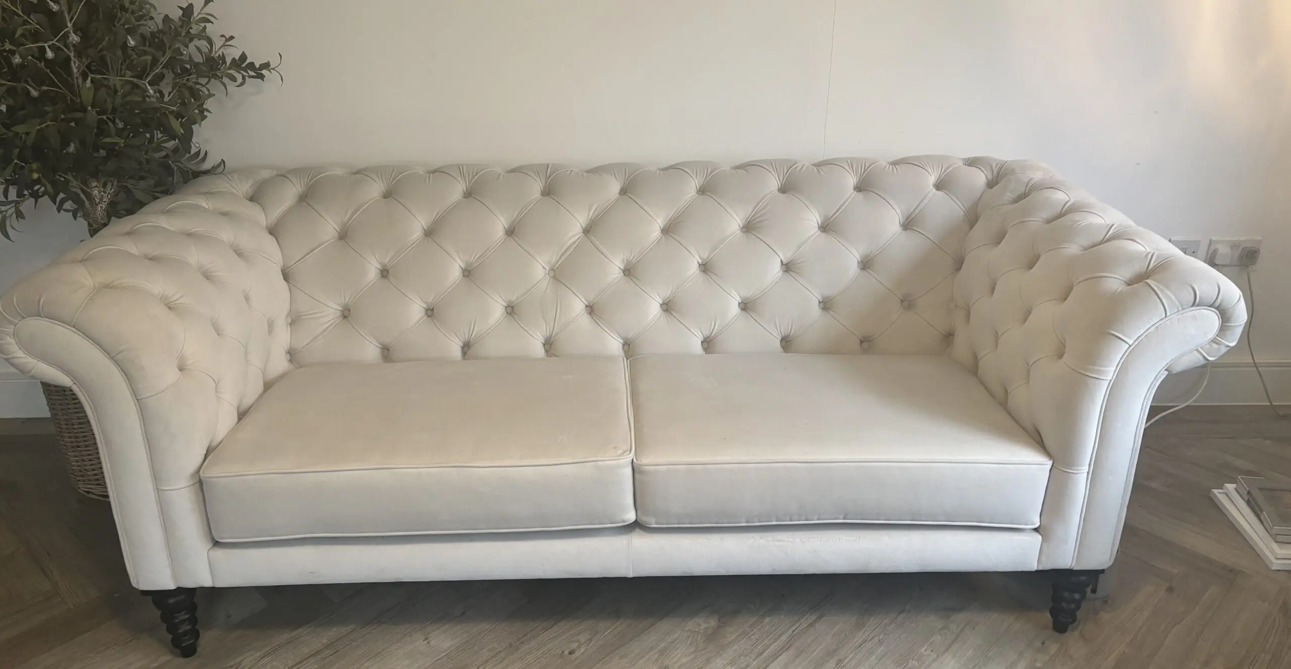 Large white velvet chesterfield sofa