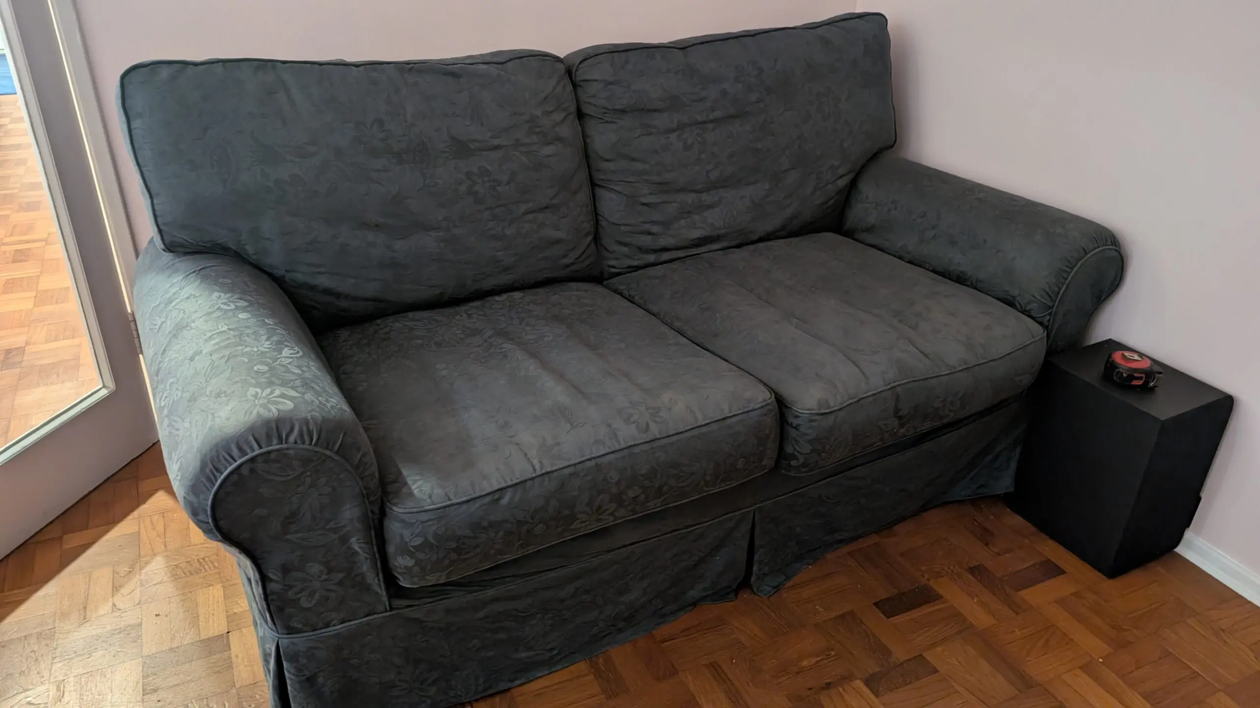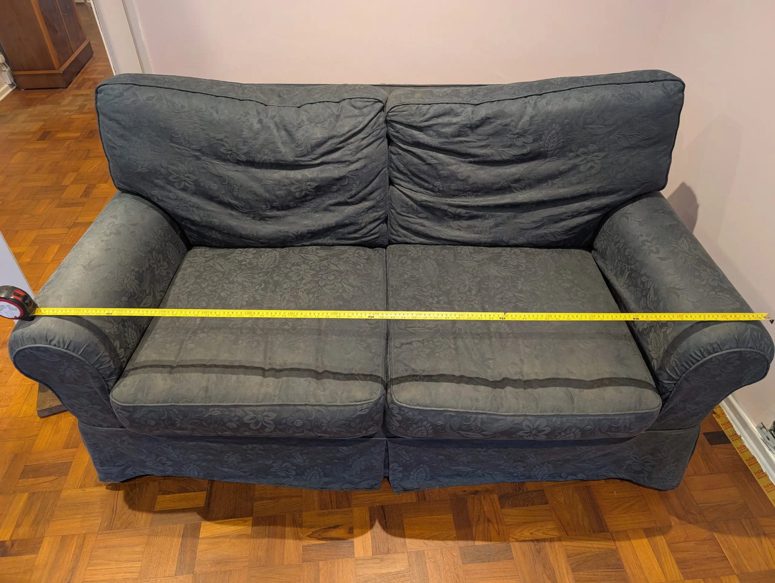 Lovely blue cotton original Laura Ashley sofa. Very comfortable can be laid out at full stretch for coach surffing sleeping if required