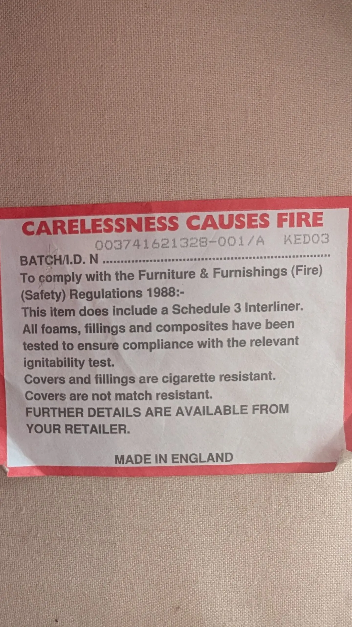 The sofa and chair I bought was as described by the seller - excellent condition. Delivery was quickly arranged and without any incidents. I was kept well informed of the delivery time on the day. Highly recommended.